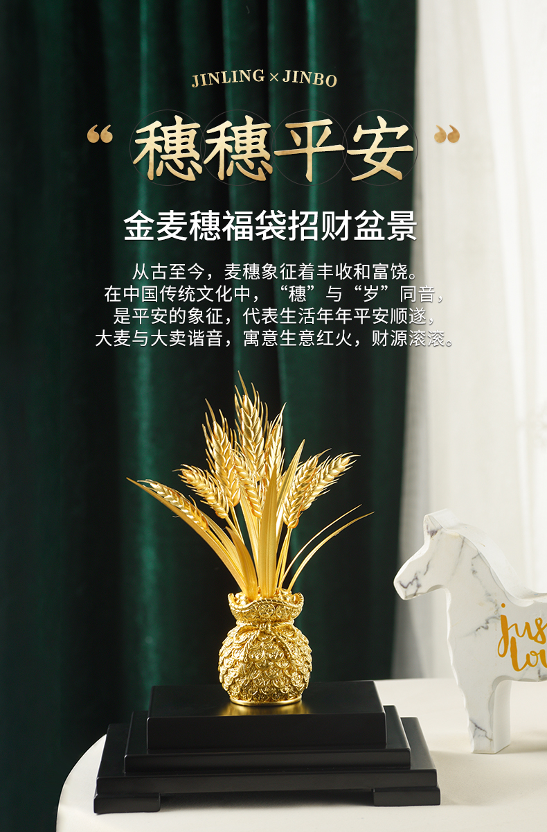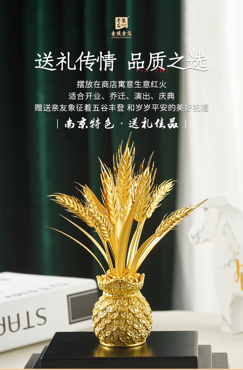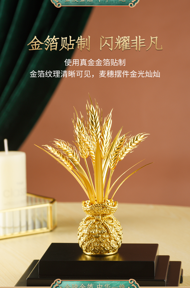 金陵金箔麦穗福袋办公桌摆件乔迁礼物开业贺礼办公室新居装饰