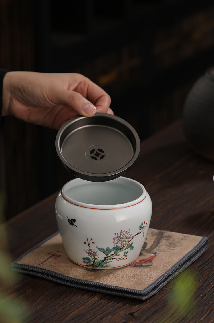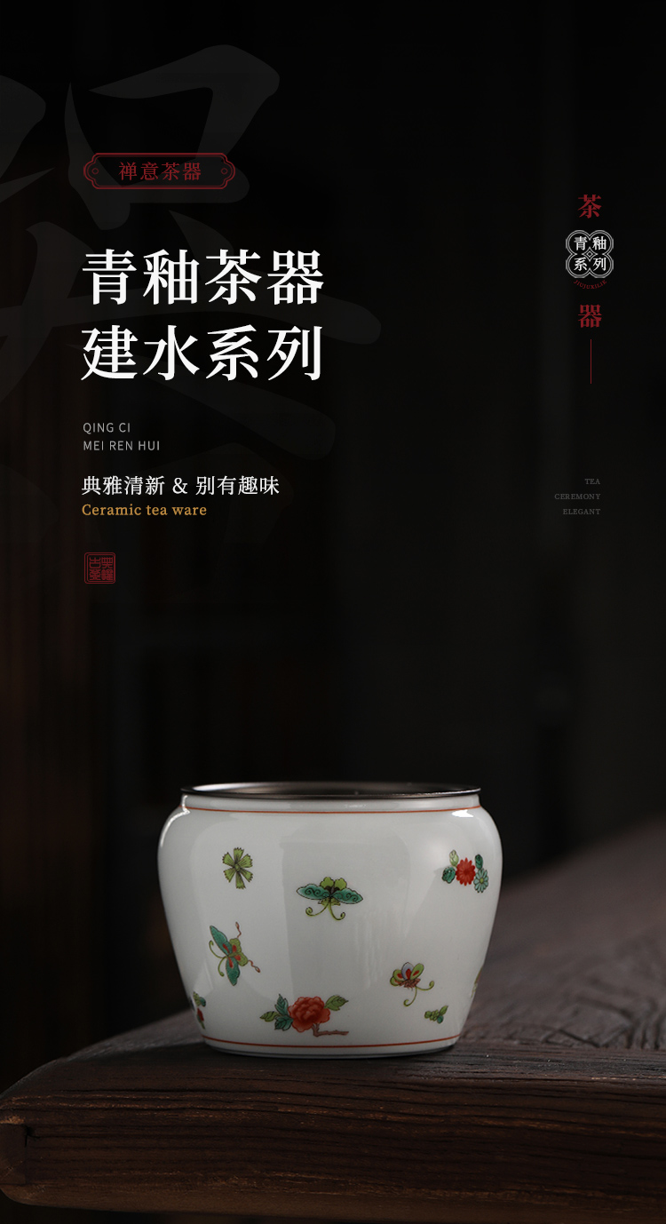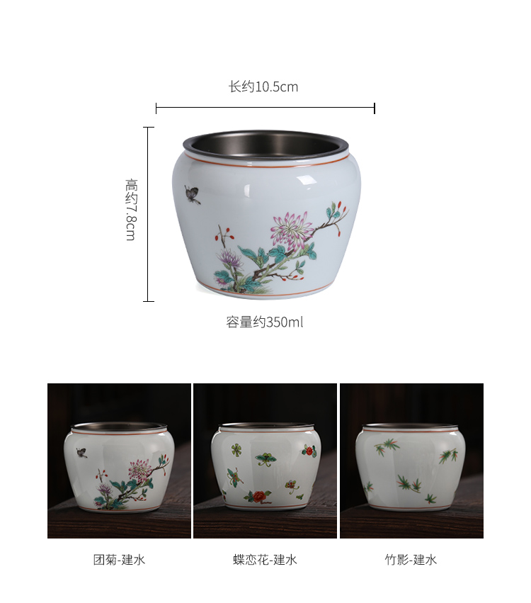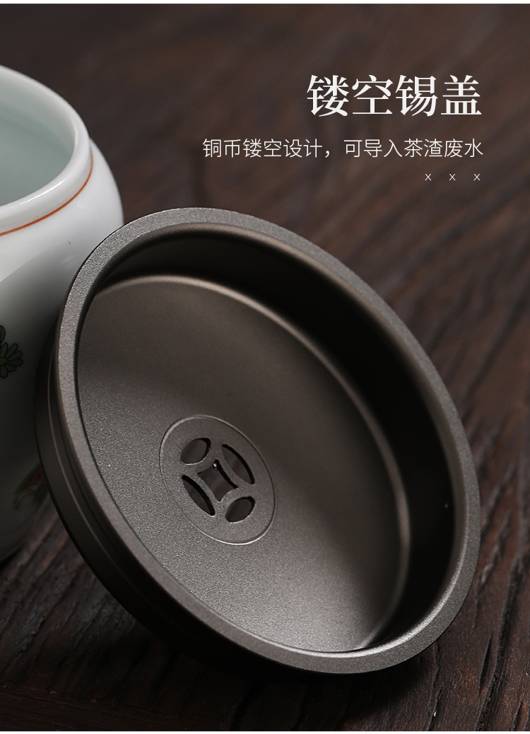 永利汇仿古建水陶瓷带盖水盂干泡茶席小茶洗茶渣斗功夫茶具配