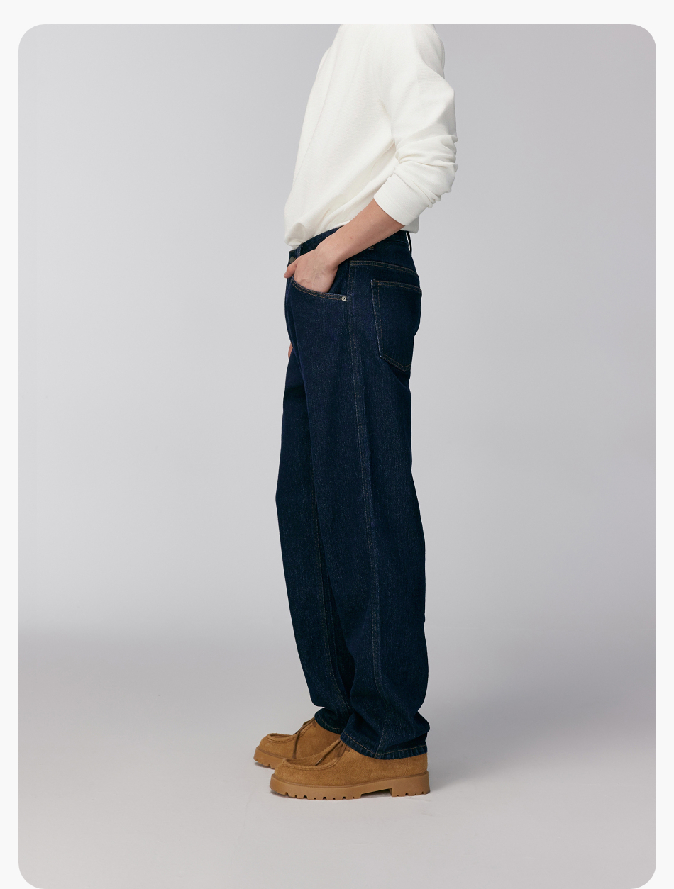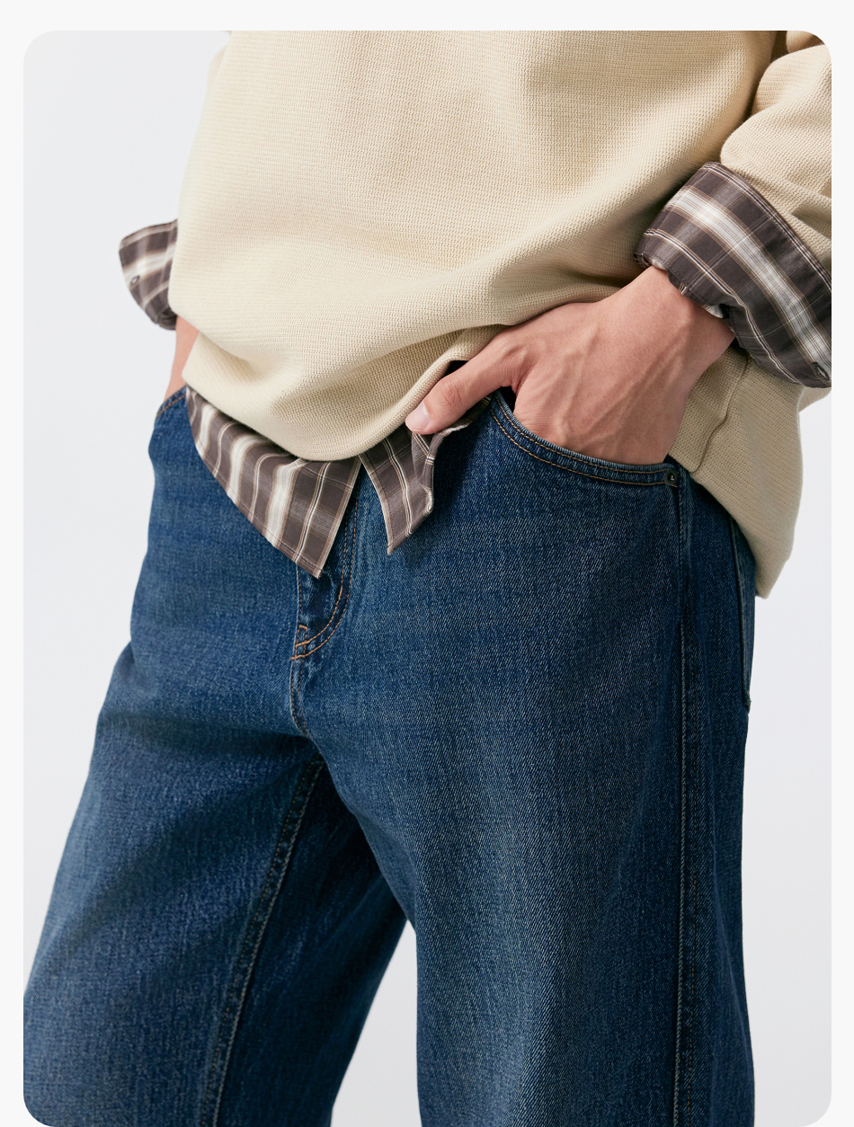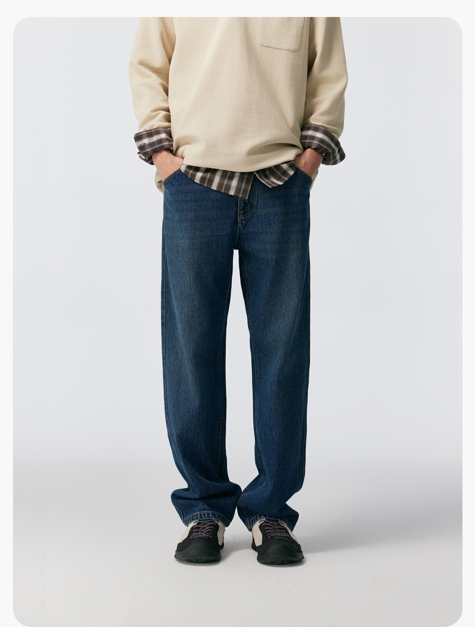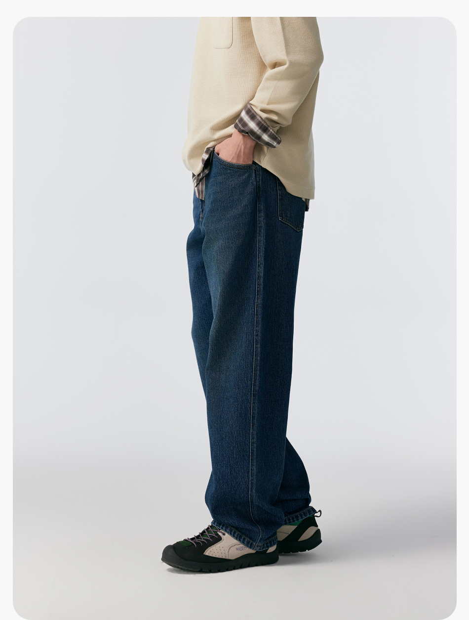 棉仓356819007-重磅棉弹宽松直筒水洗牛仔裤