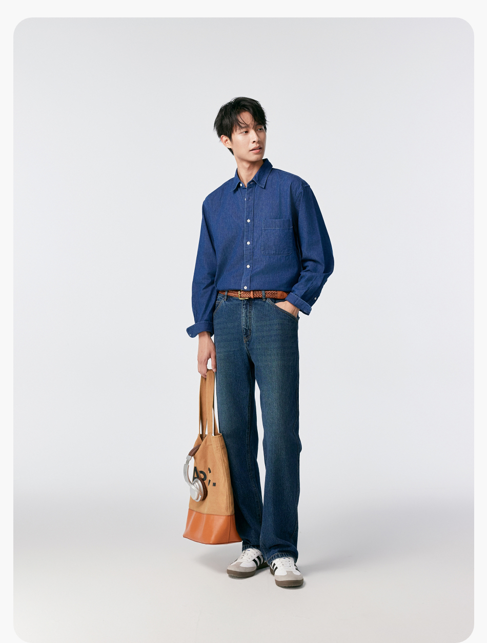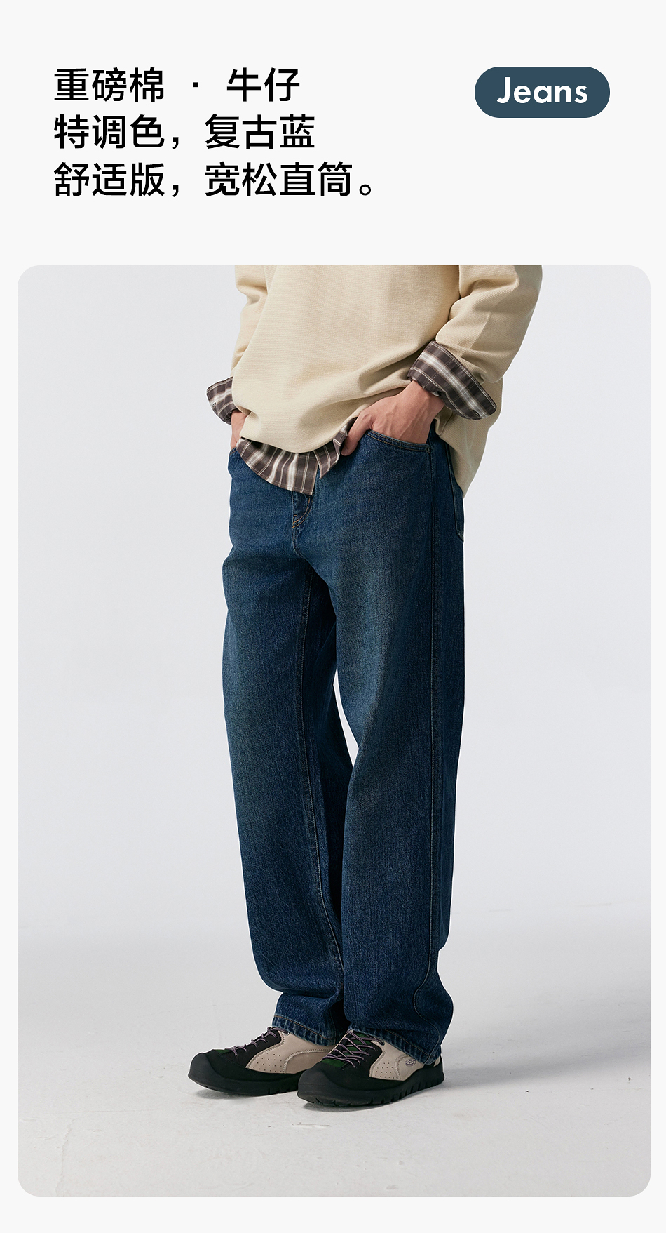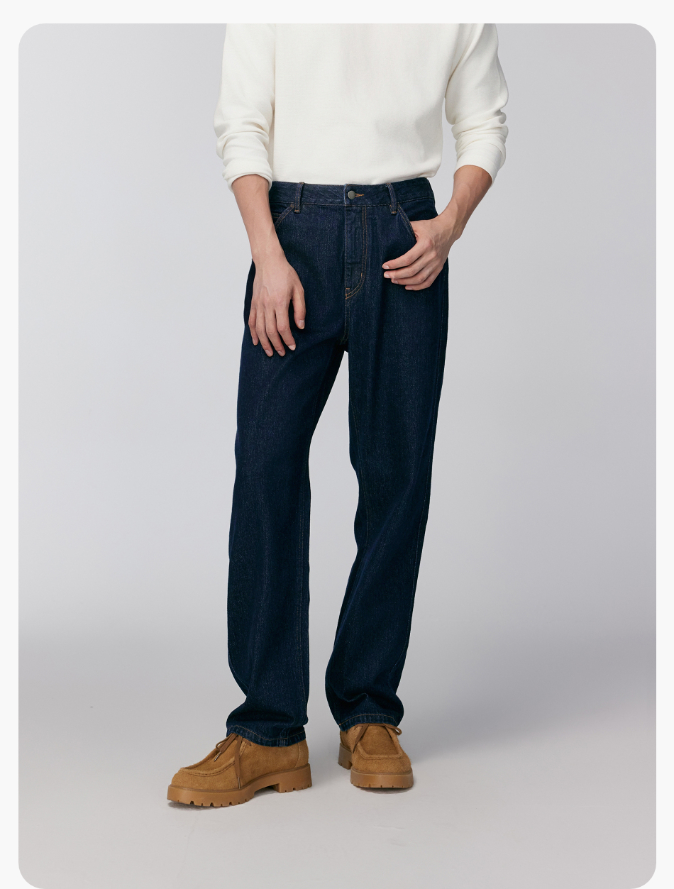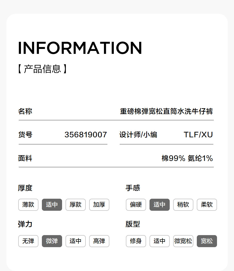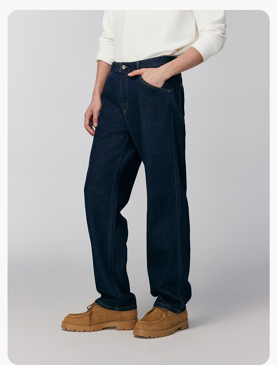 棉仓356819007-重磅棉弹宽松直筒水洗牛仔裤