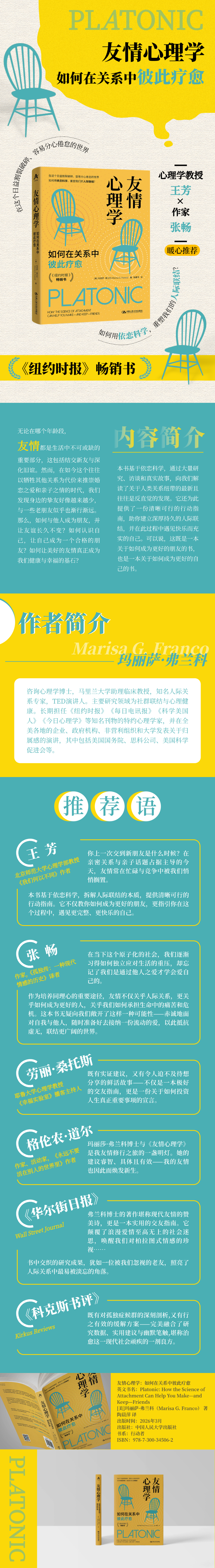 弗兰科博士的著作堪称现代友情的赞美诗,更是一本实用的交友指南。它颠覆了浪漫爱情至高无上的社会迷思,唤醒我们对柏拉图式情感的珍视……书中交织的研究成果,犹如一位被我们忽视的老友,照亮了人际关系中最易被淡忘的角落。