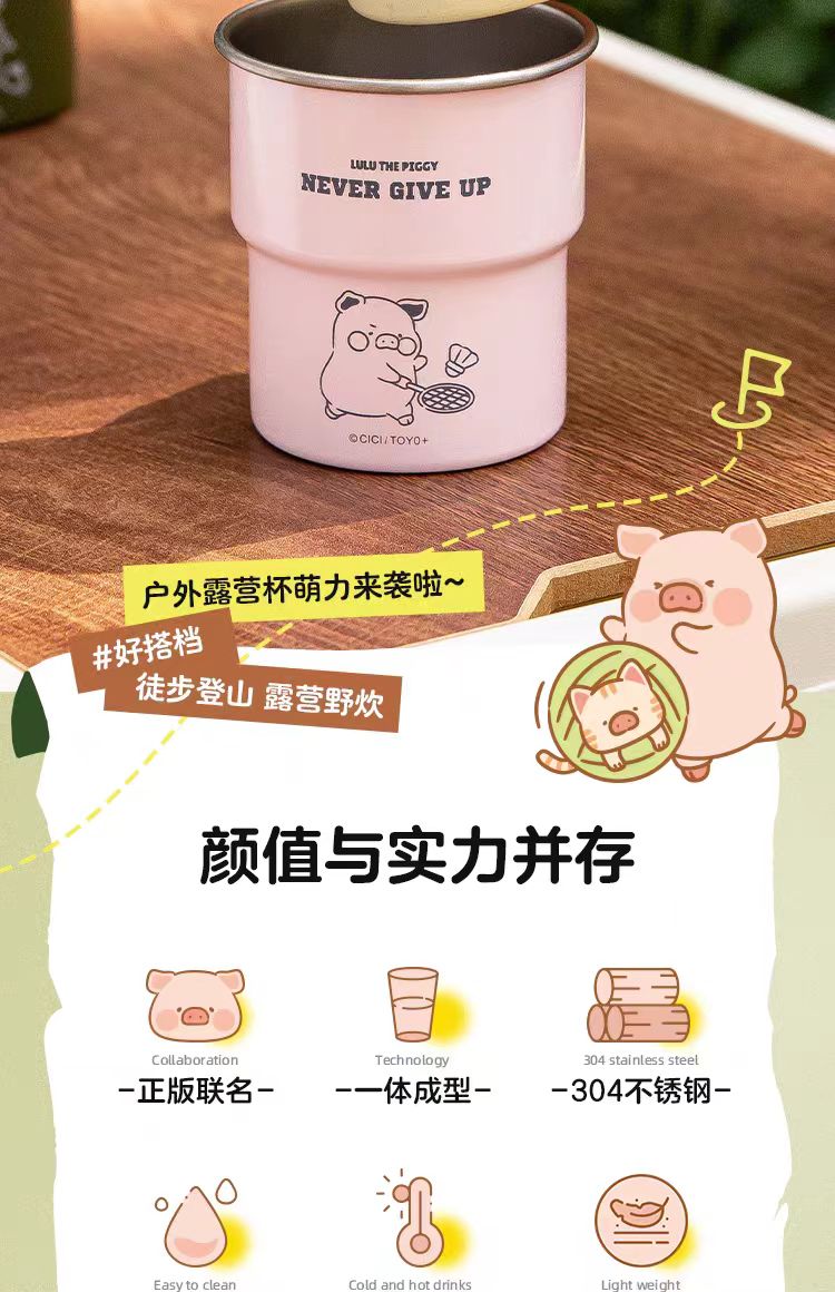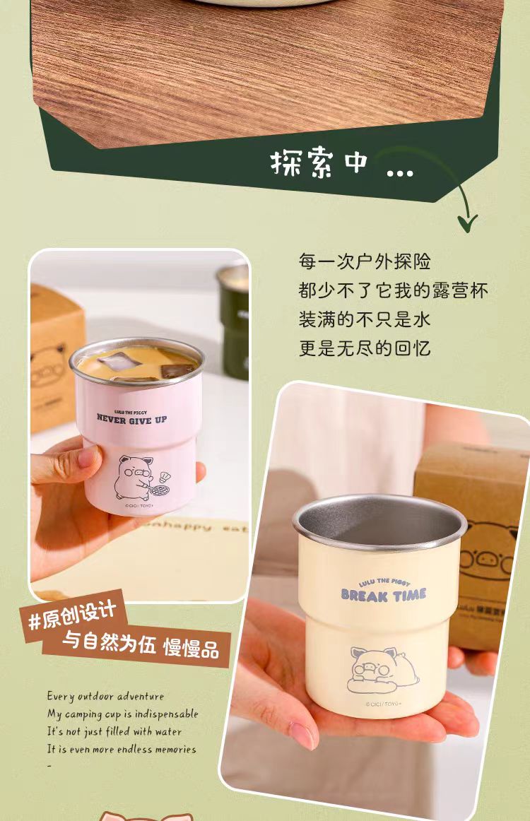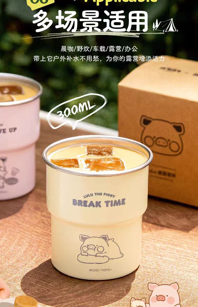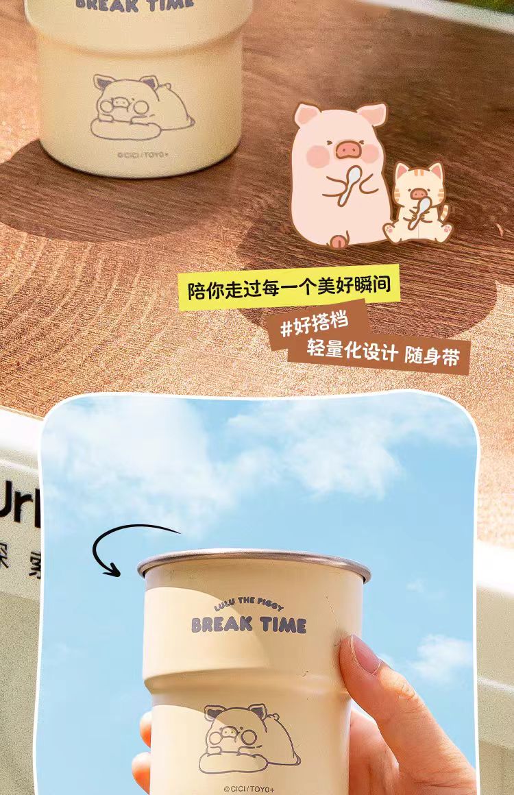 4楼Eubelle欧蓓 川岛屋&lulu猪联名 咖啡杯外出携带直饮杯300ml 不锈钢露营杯 活动价:18.8元