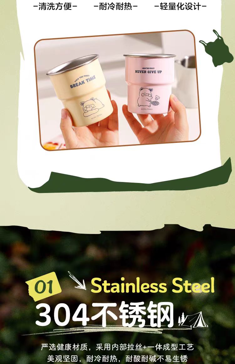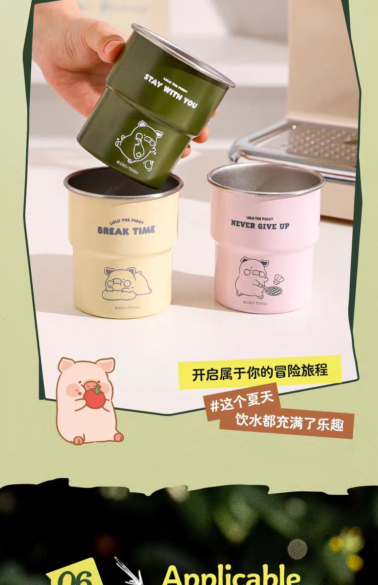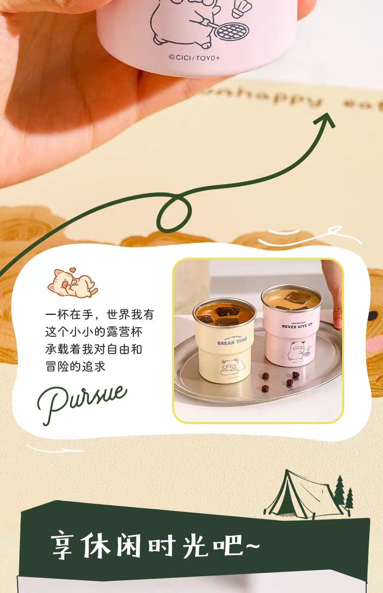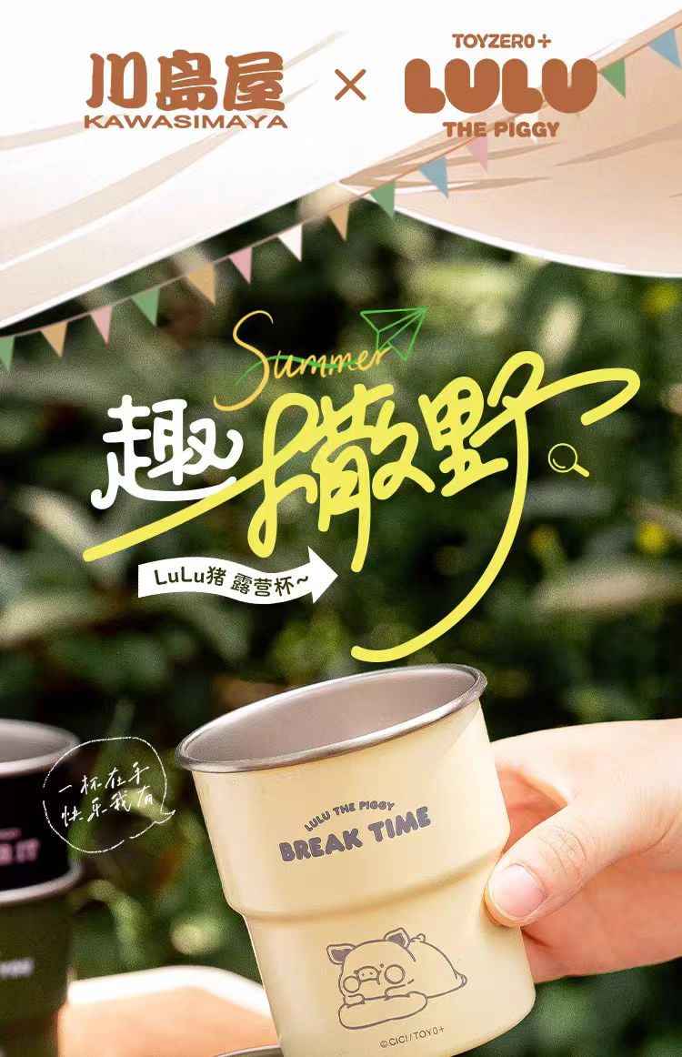 4楼Eubelle欧蓓 川岛屋&lulu猪联名 咖啡杯外出携带直饮杯300ml 不锈钢露营杯 活动价:18.8元