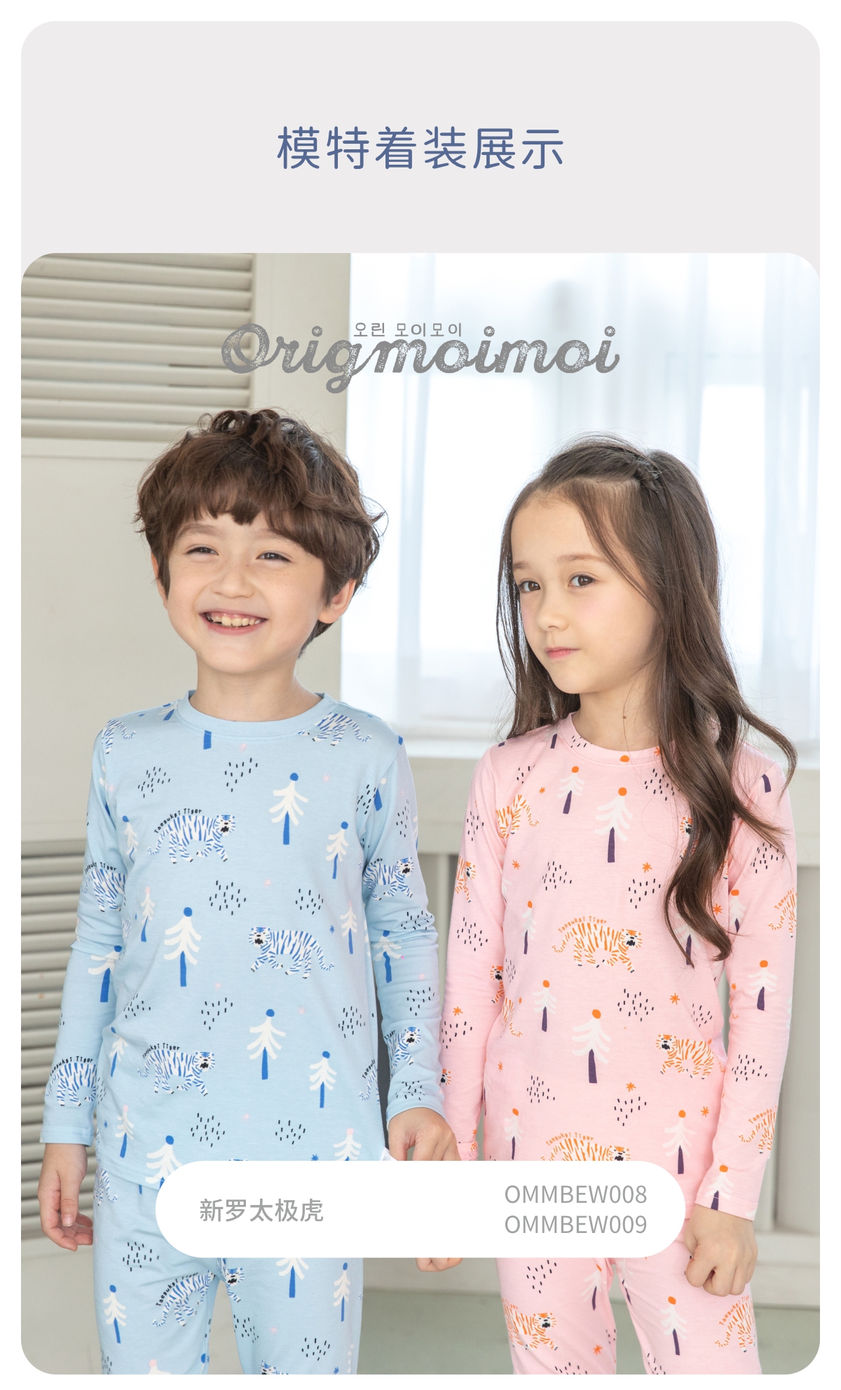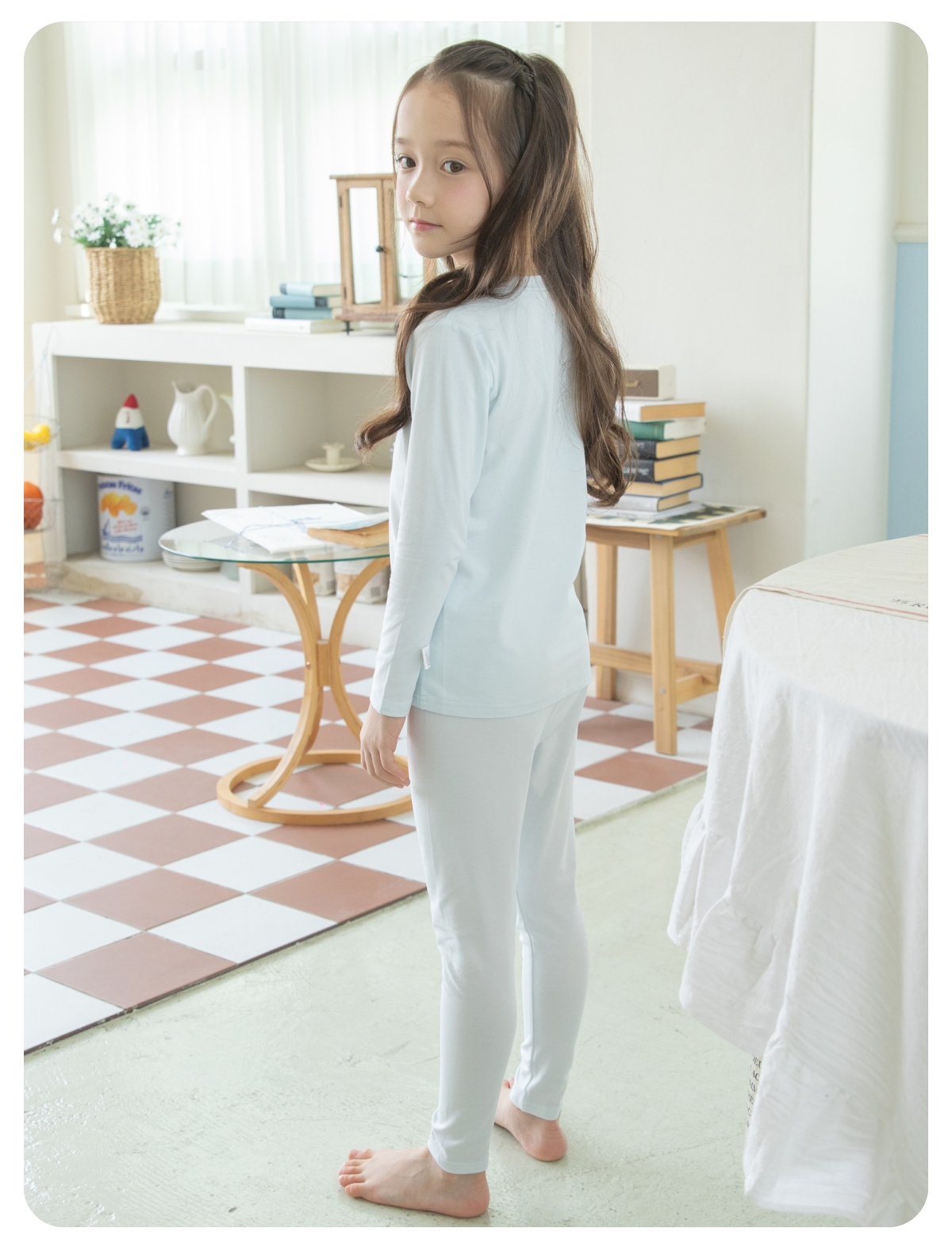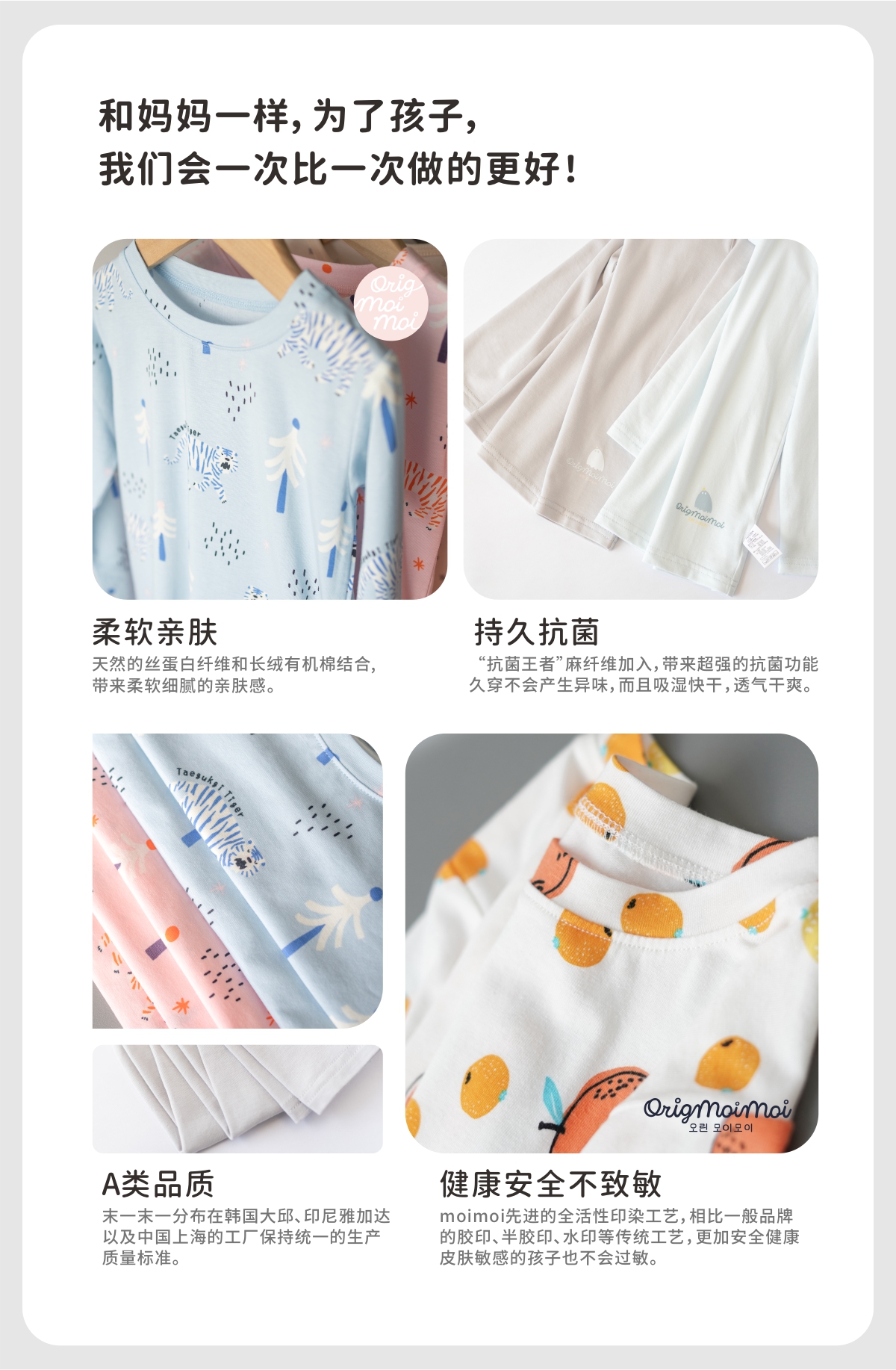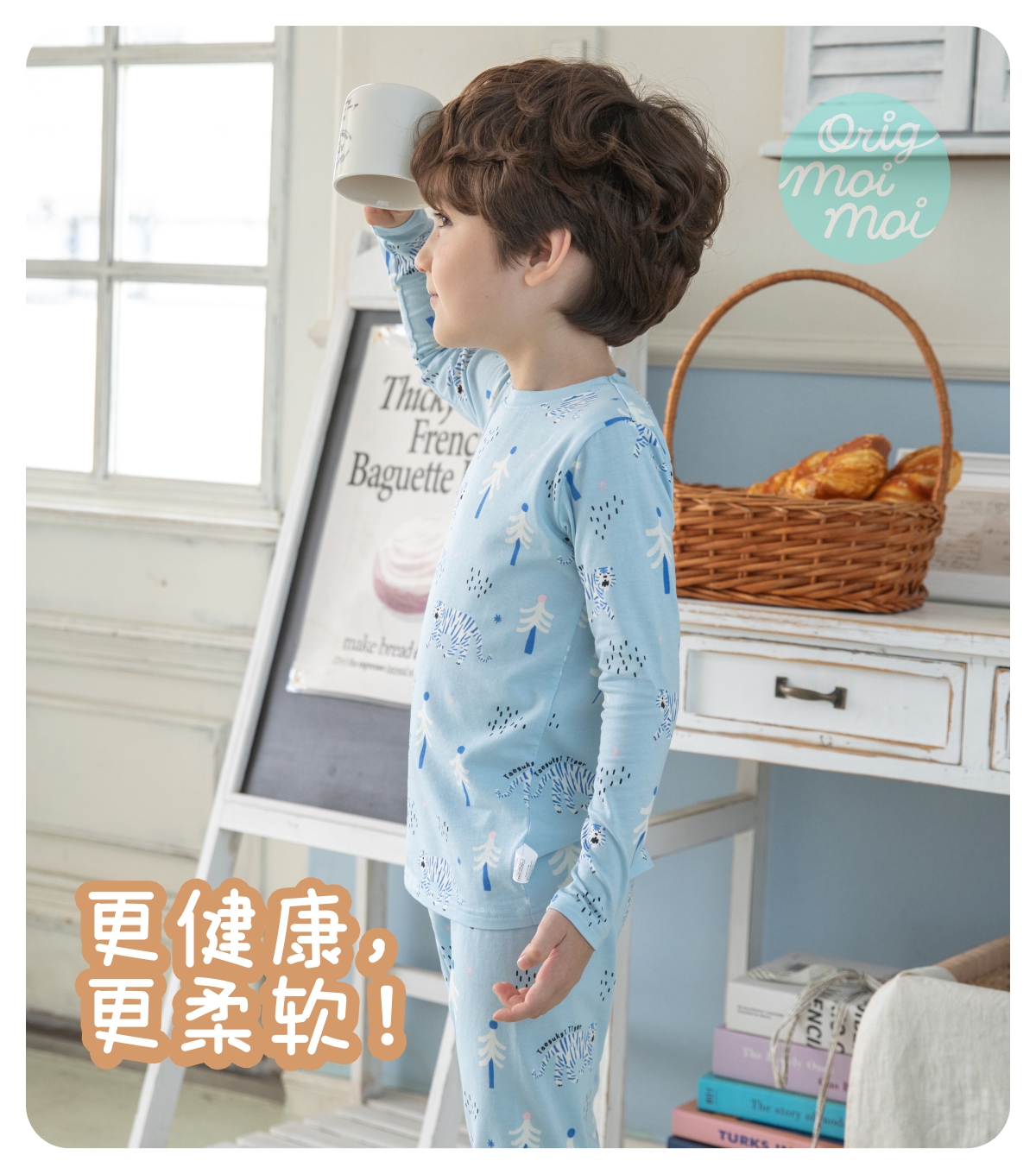 2套减10元❗️【170克丝麻棉超薄】韩国moimoi儿童长袖家居服套装儿童保暖内衣套(丝麻棉修身薄款) 亲肤K菌