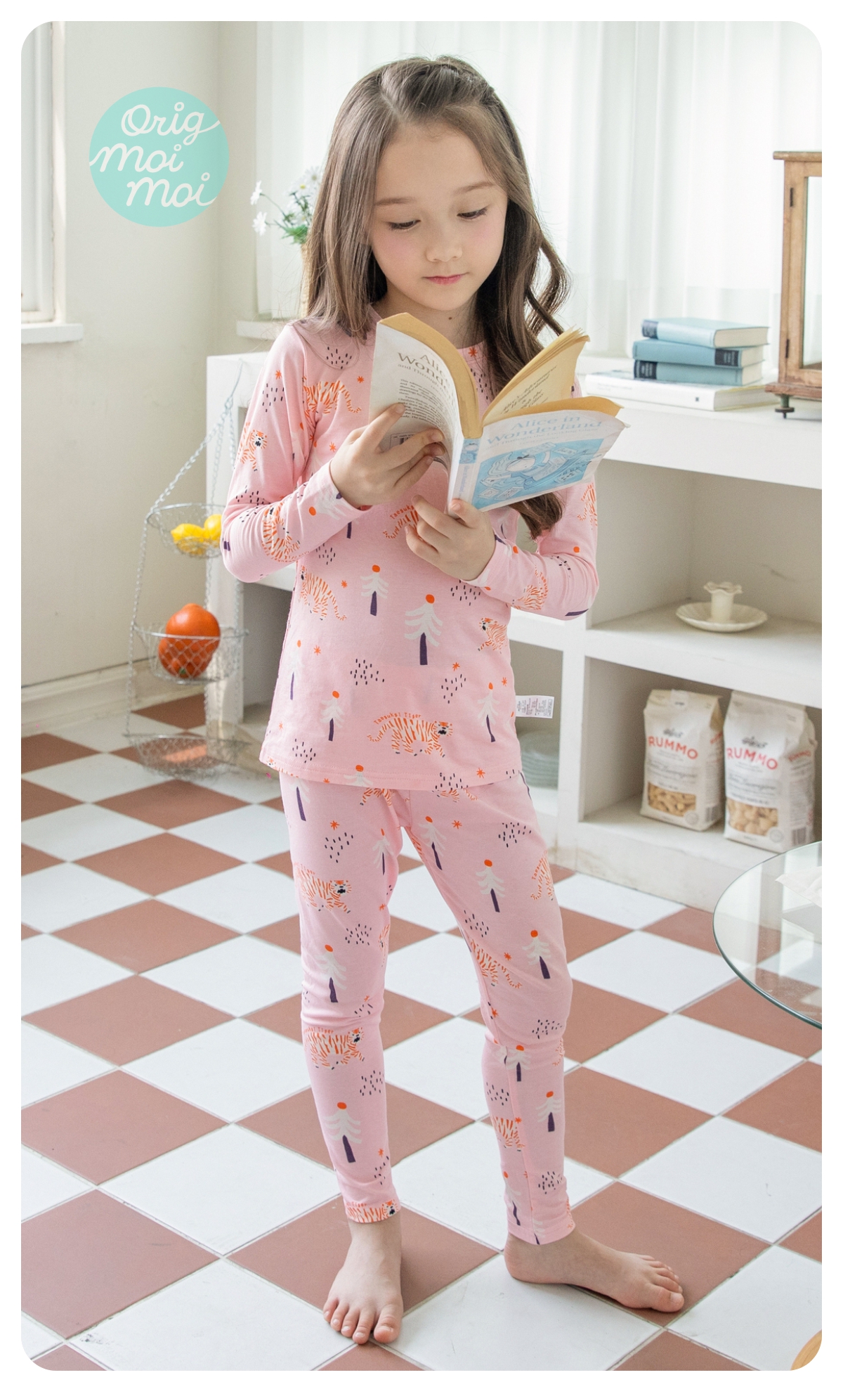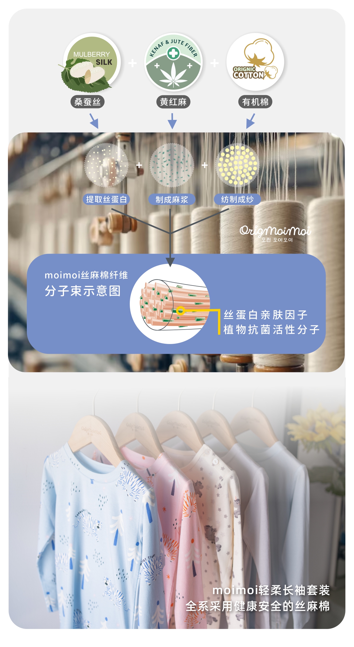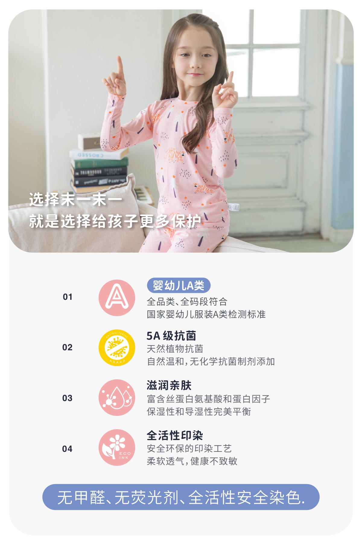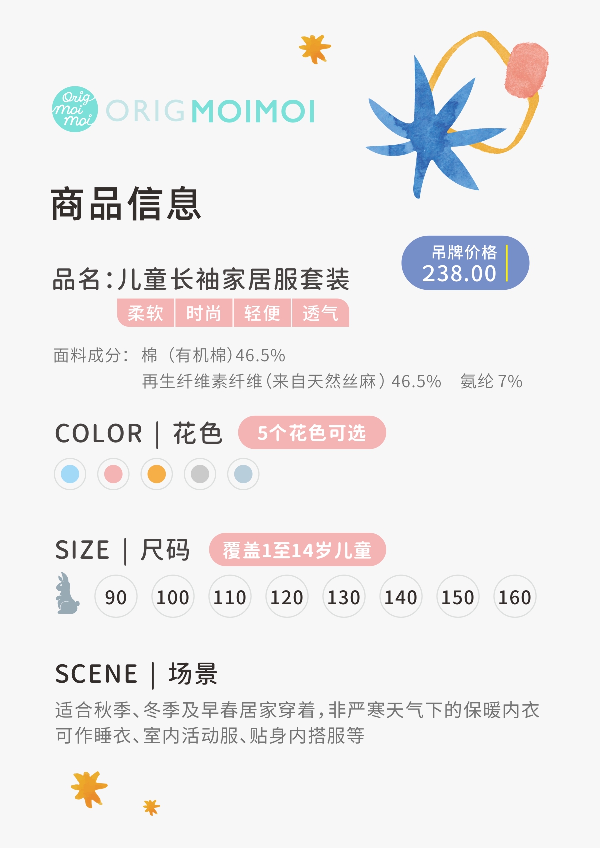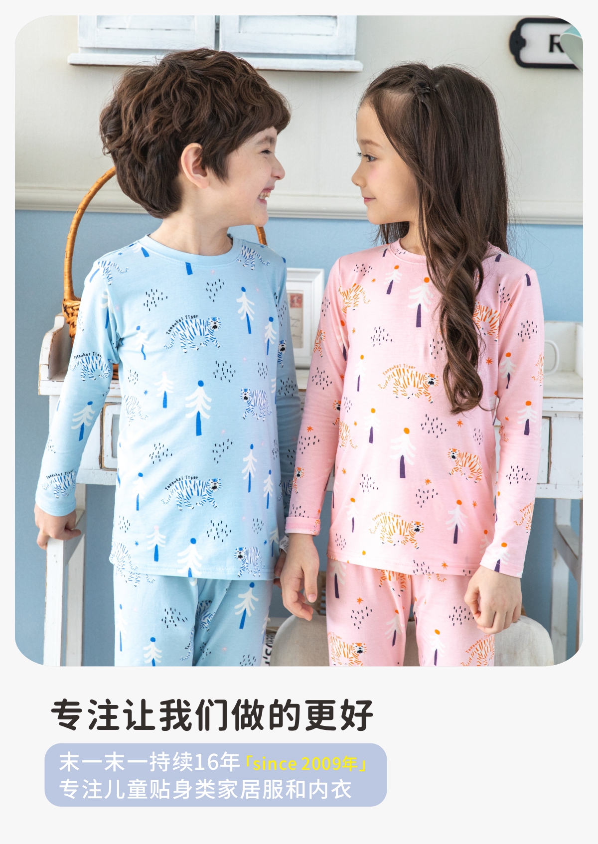 2套减10元❗️【170克丝麻棉超薄】韩国moimoi儿童长袖家居服套装儿童保暖内衣套(丝麻棉修身薄款) 亲肤K菌