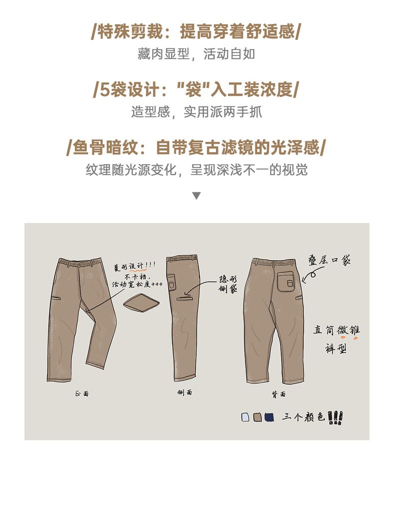工装优选 美式人字纹Easypants休闲裤cleanfit直筒锥形长裤子男秋