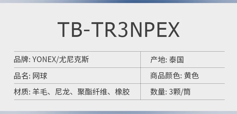 YONEX尤尼克斯网球胶罐装比赛用球训练球练习球3粒装TB-TR3