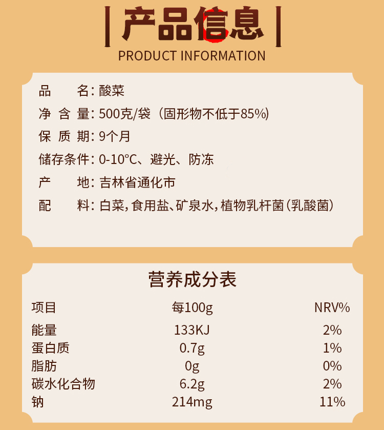 【产品名称】乳酸菌酸菜