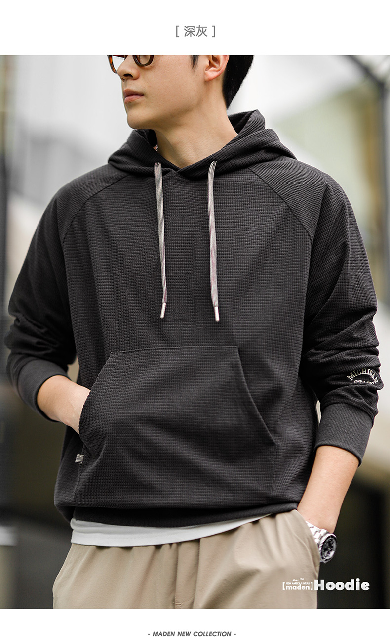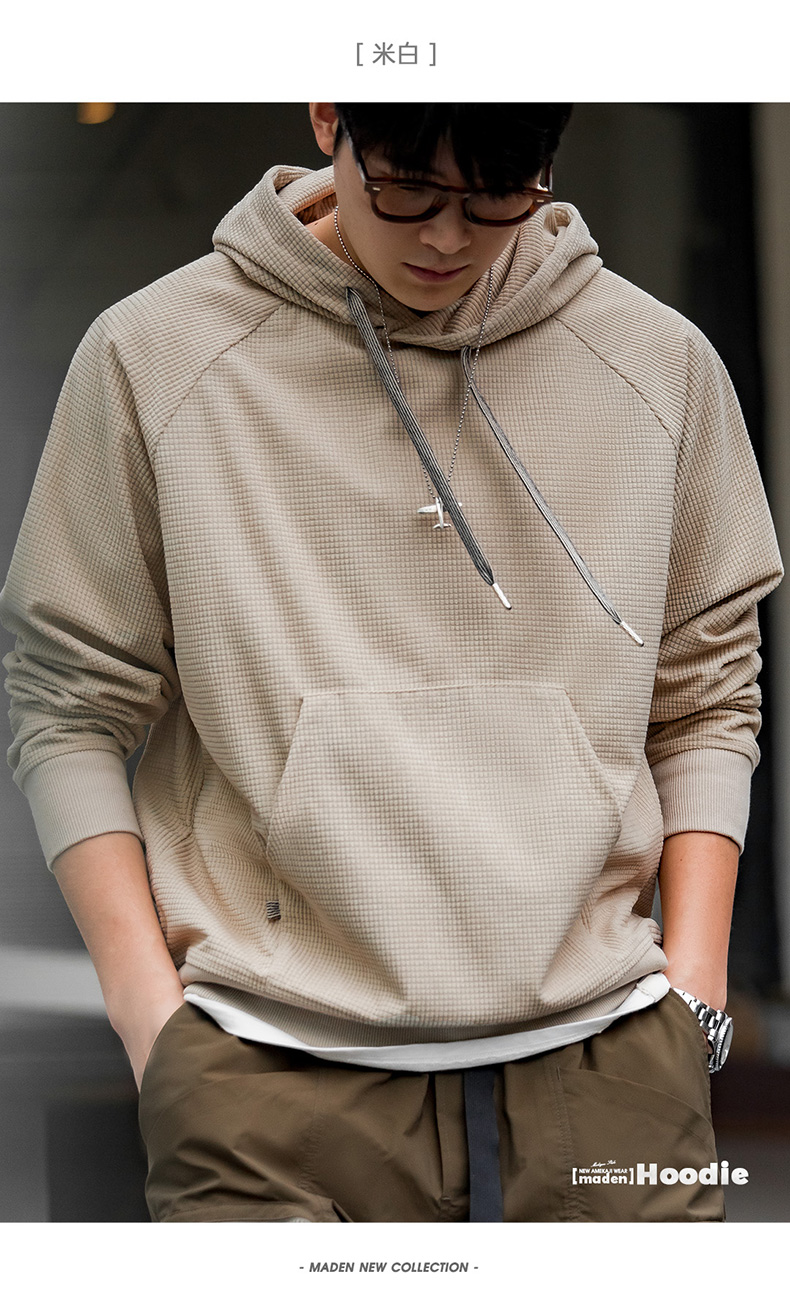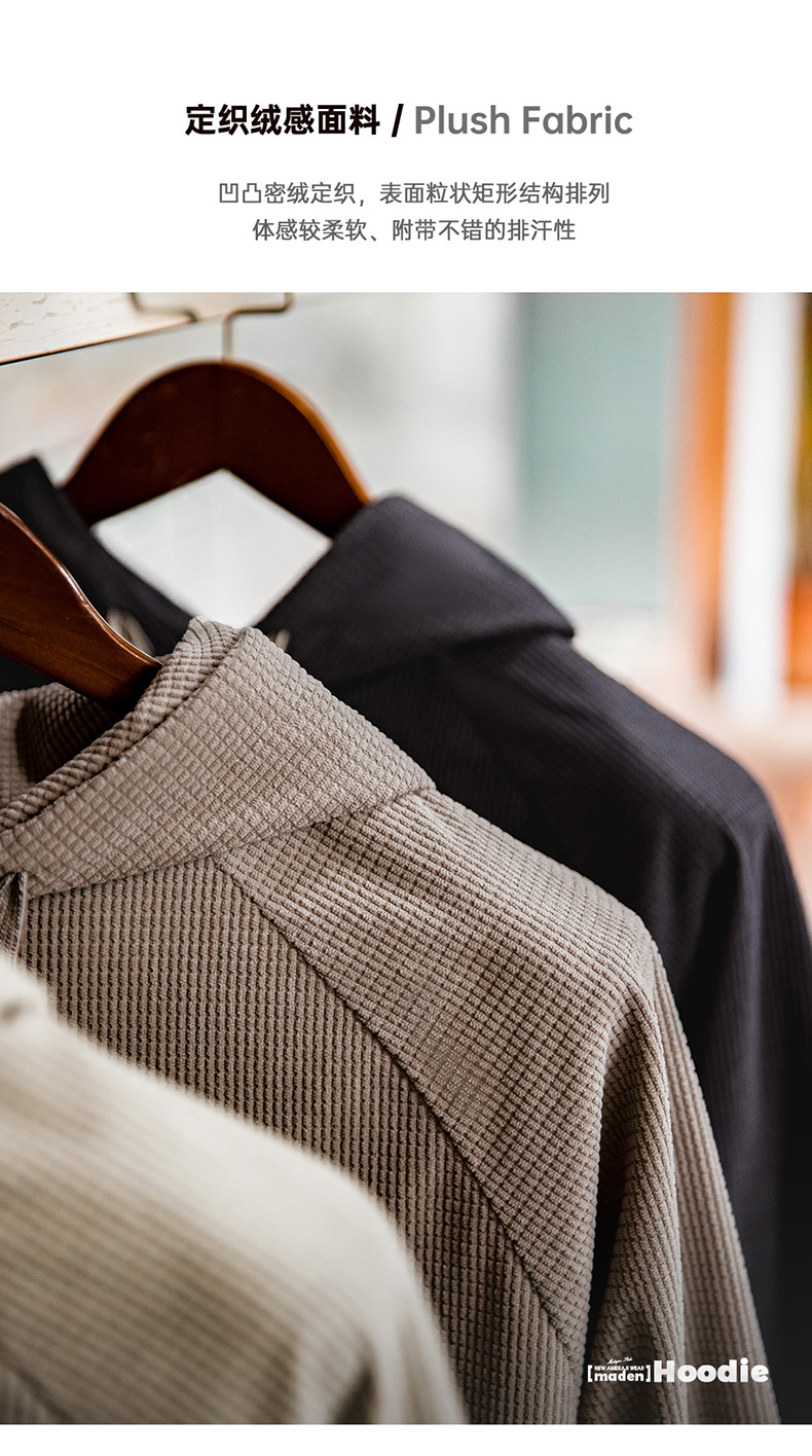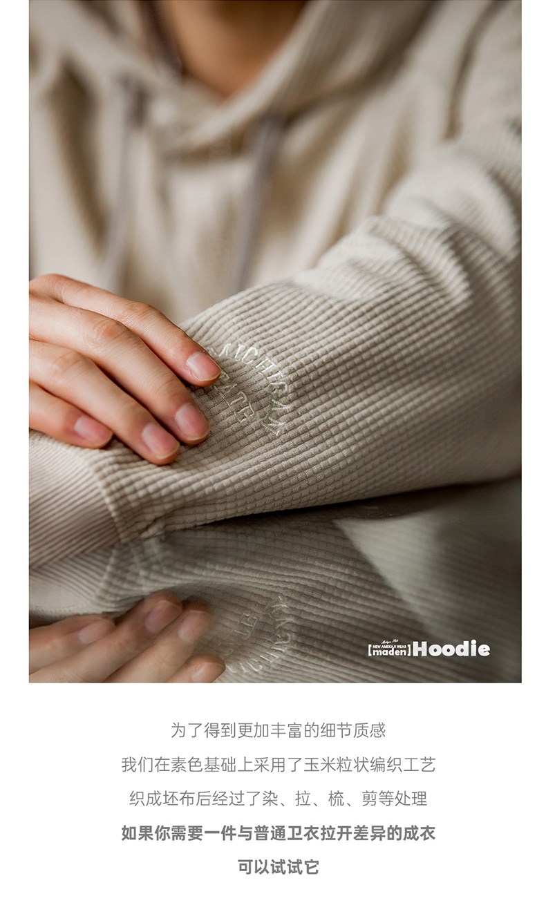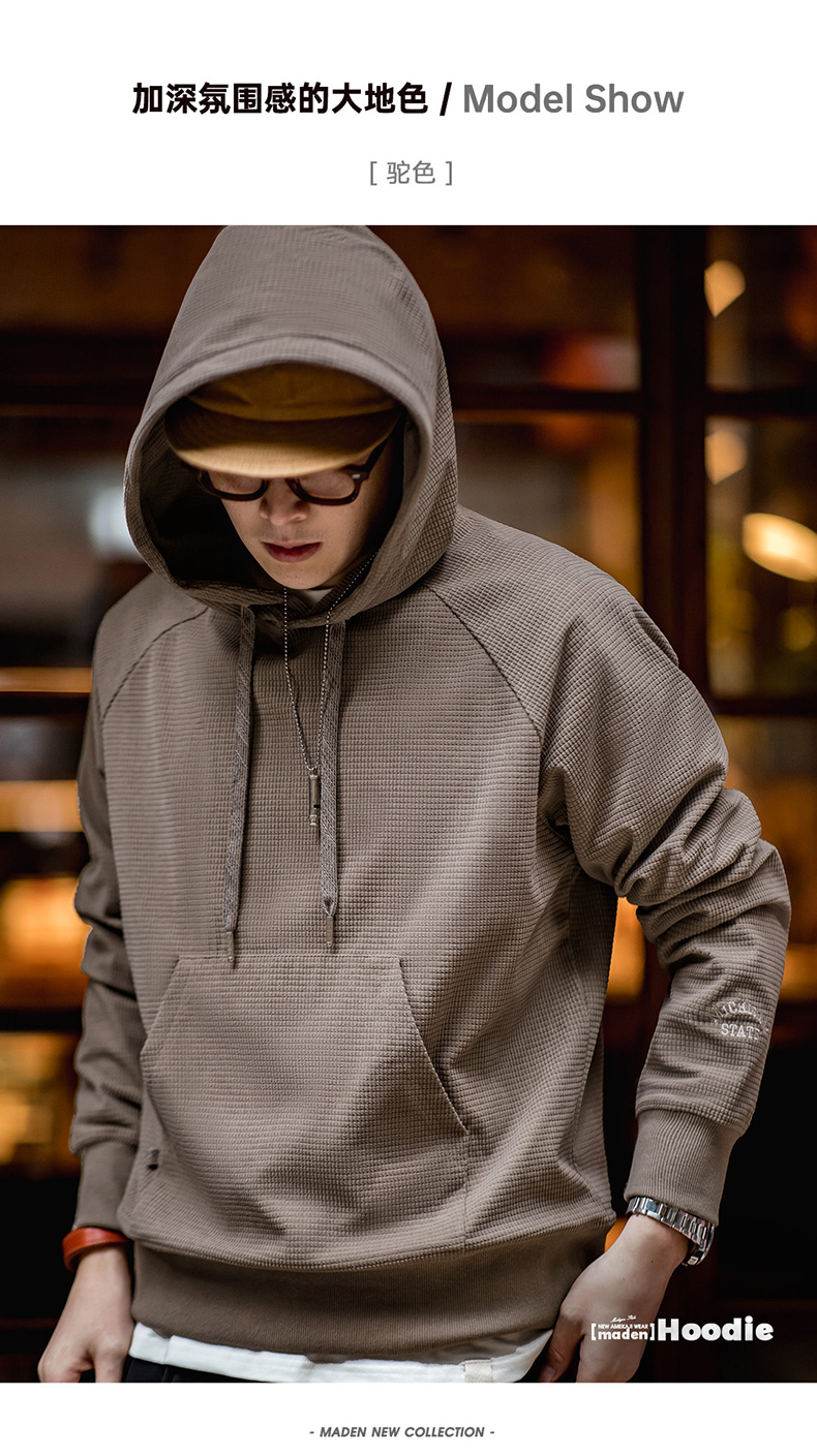 工装优选 美式复古玉米粒刺绣连帽卫衣绒感百搭纯色套头衫上衣男春