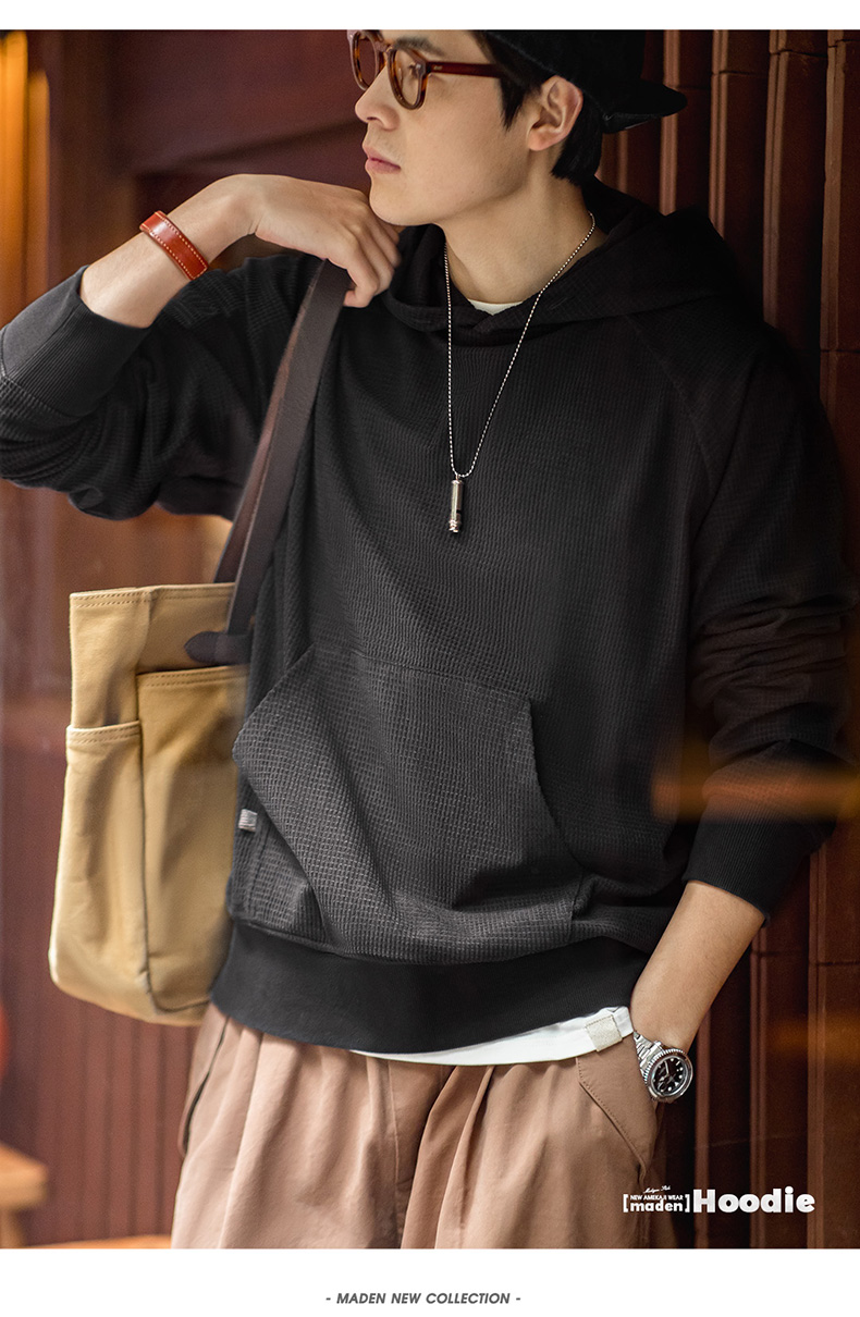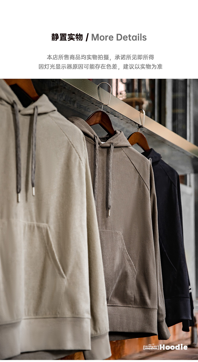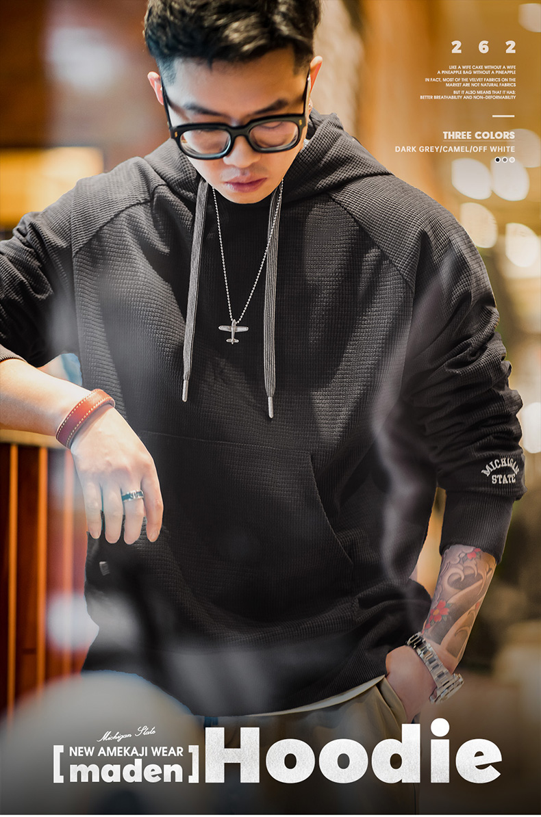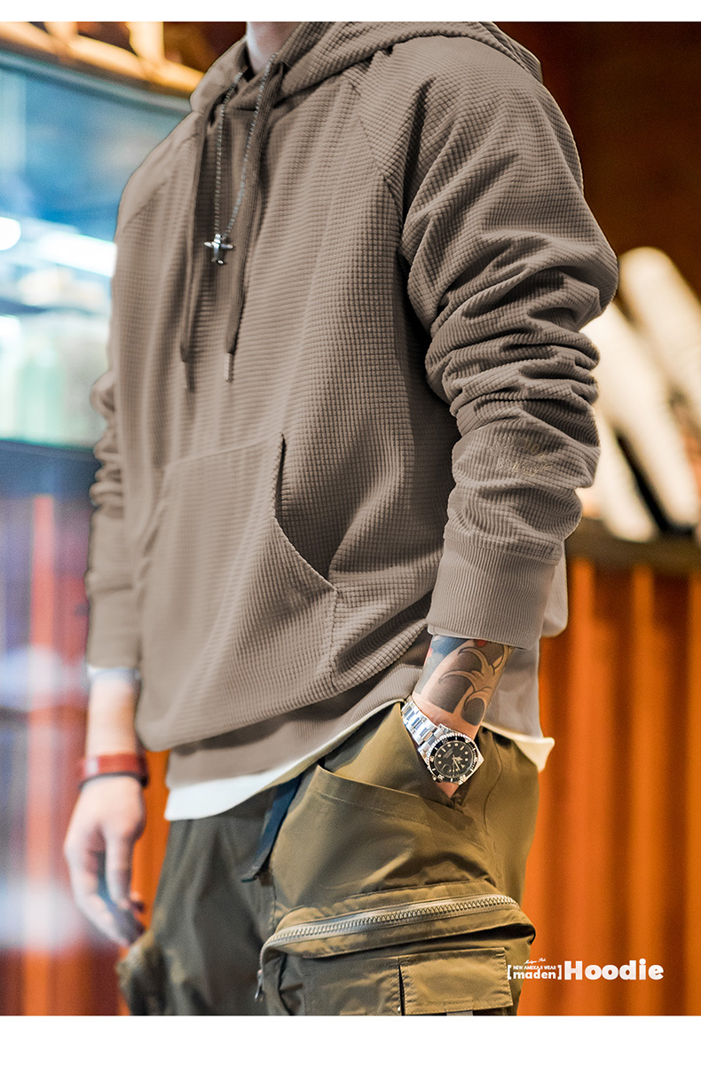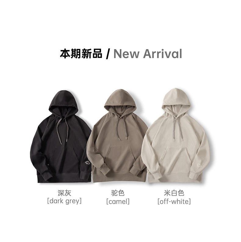 工装优选 美式复古玉米粒刺绣连帽卫衣绒感百搭纯色套头衫上衣男春