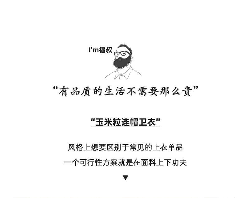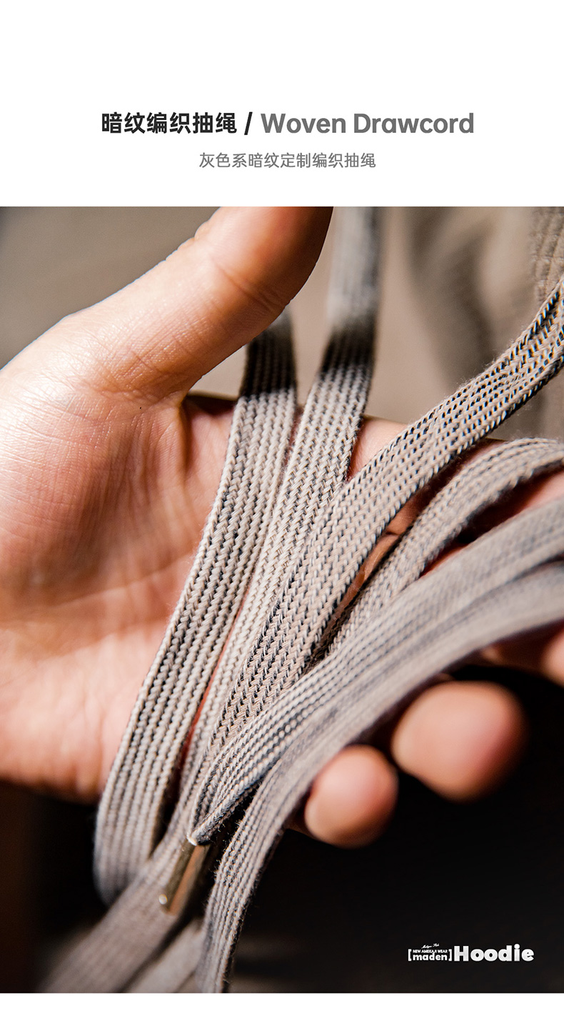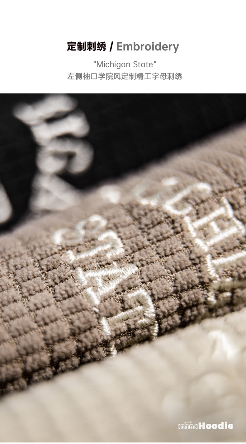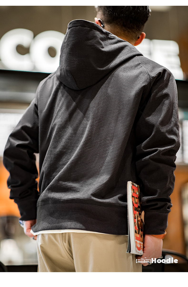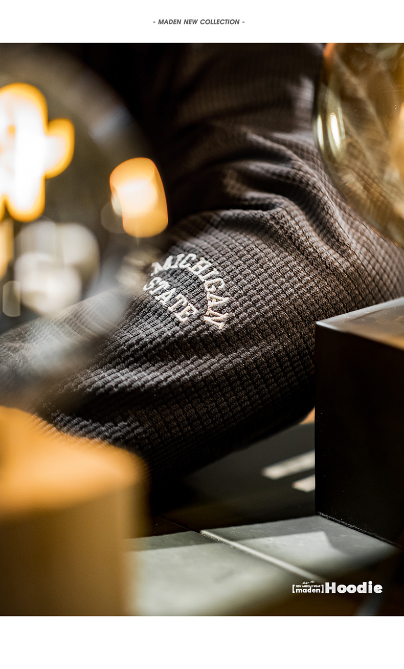 工装优选 美式复古玉米粒刺绣连帽卫衣绒感百搭纯色套头衫上衣男春