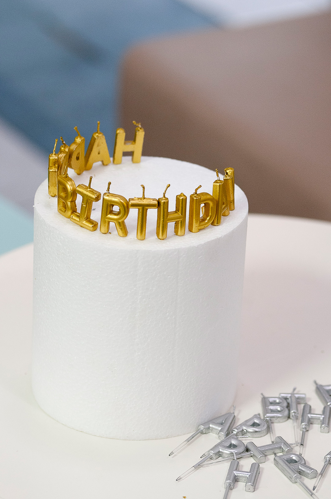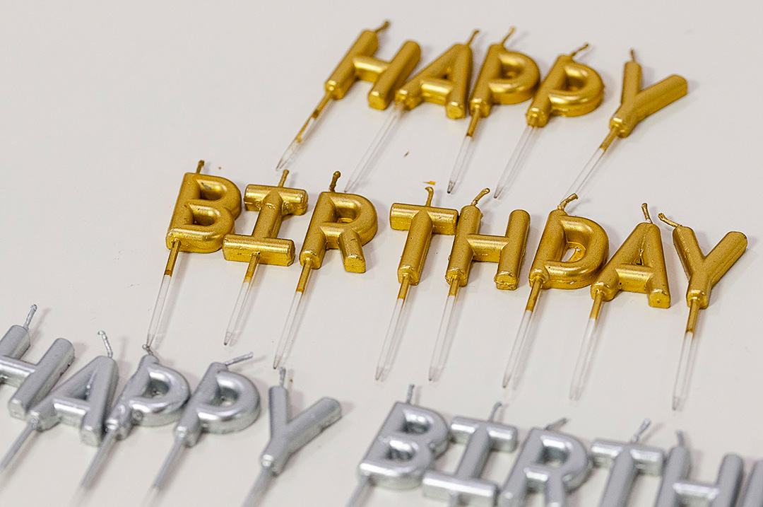 英文生日快乐蜡烛5元/套,有金色和银色2种。