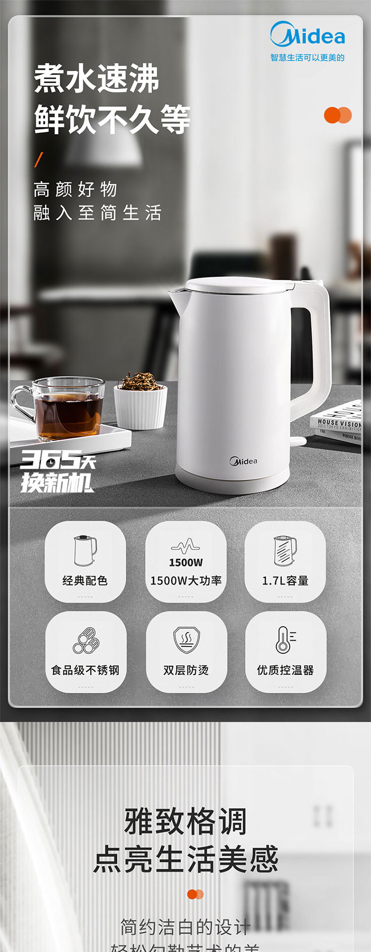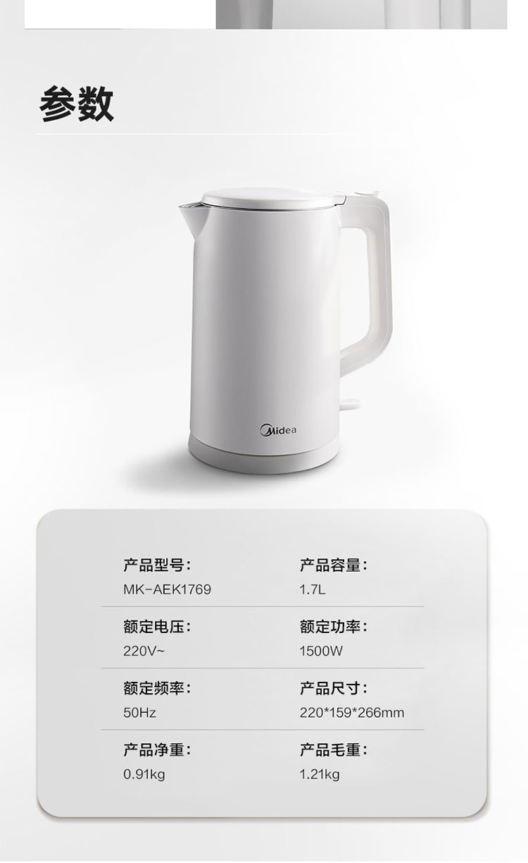 美的电水壶1.7L AEK1769