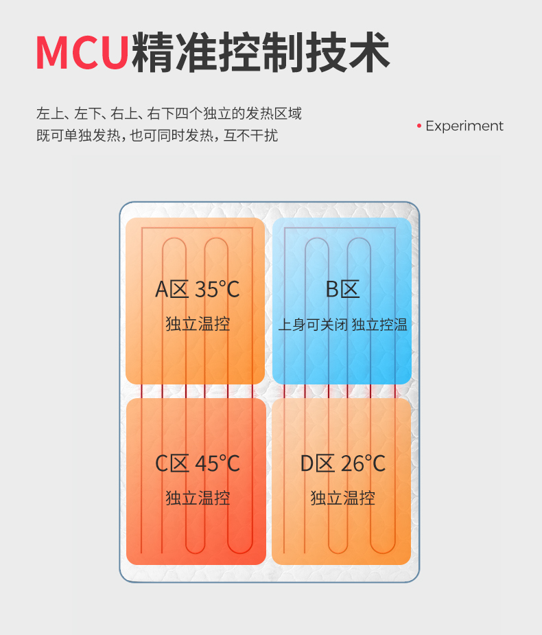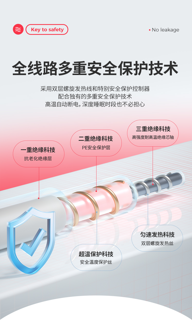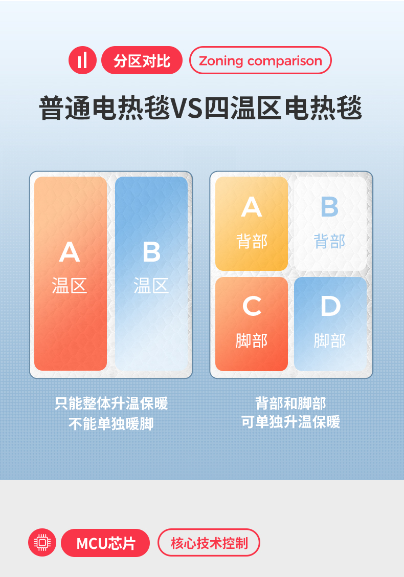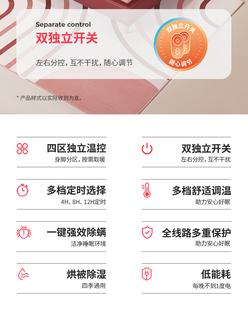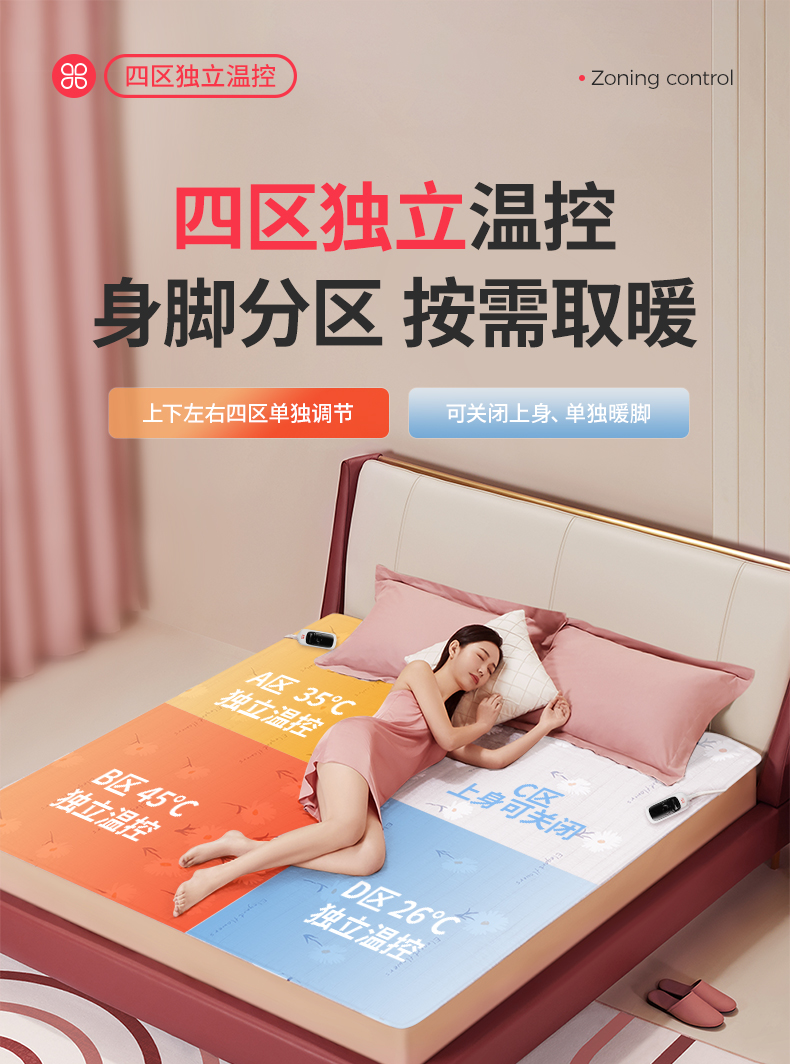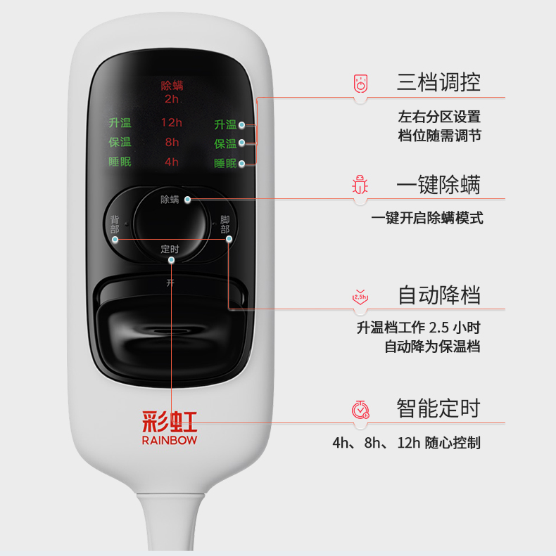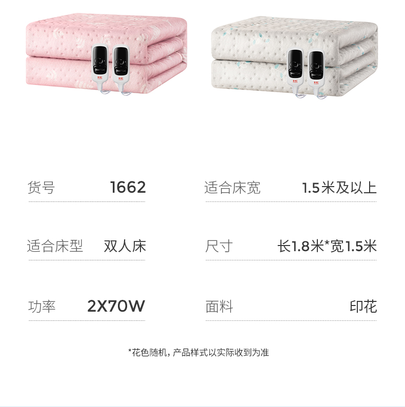 彩虹全线路安全保护双控双温电热毯(双开关四温区印花)(长1.80米*1.50米)(长2.0米*1.80米)1662 1661