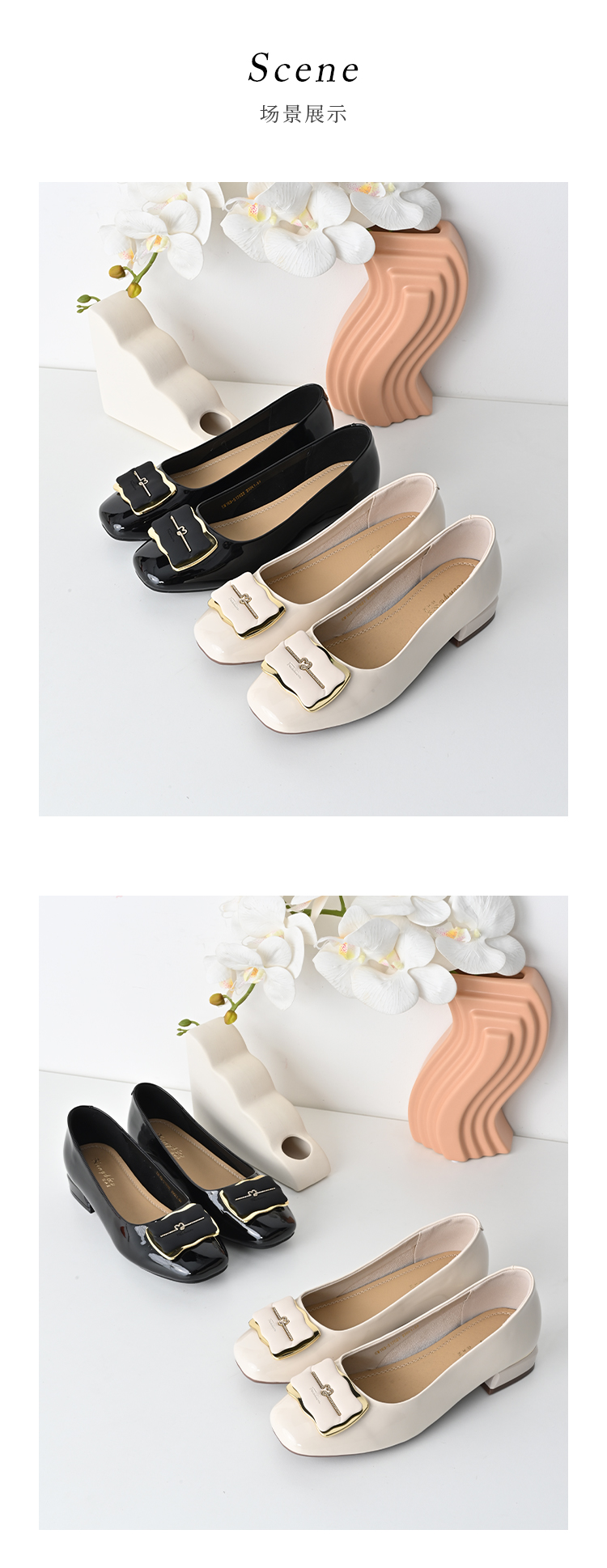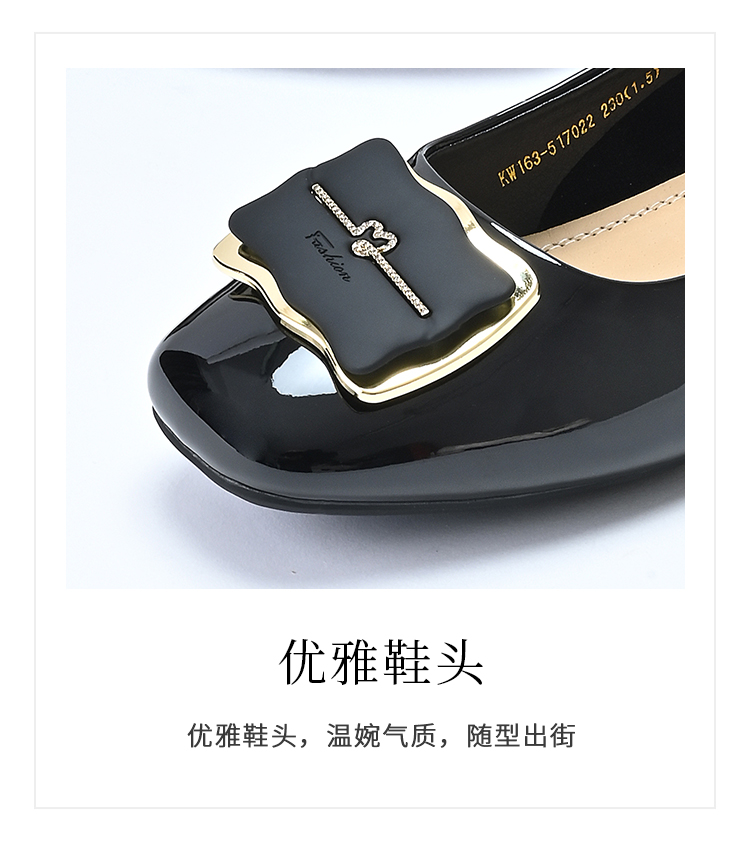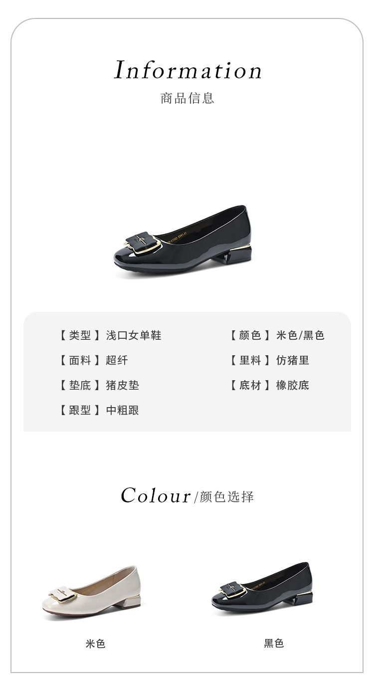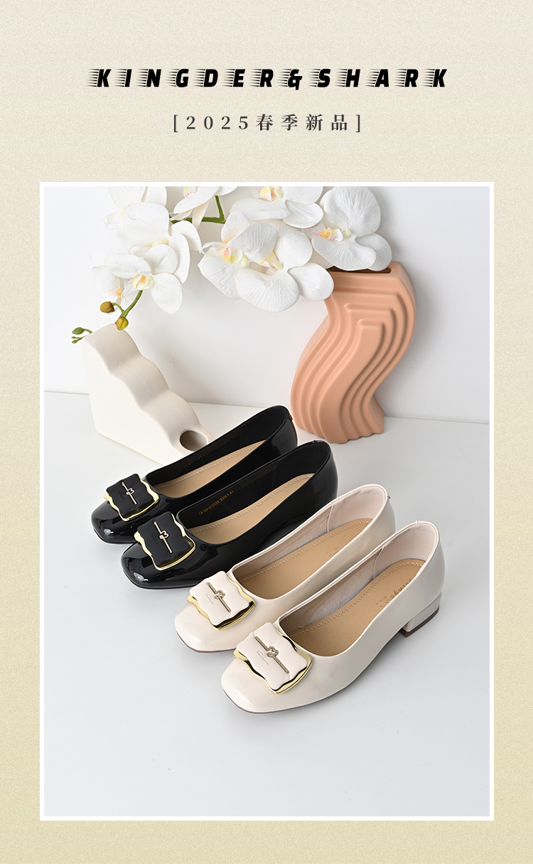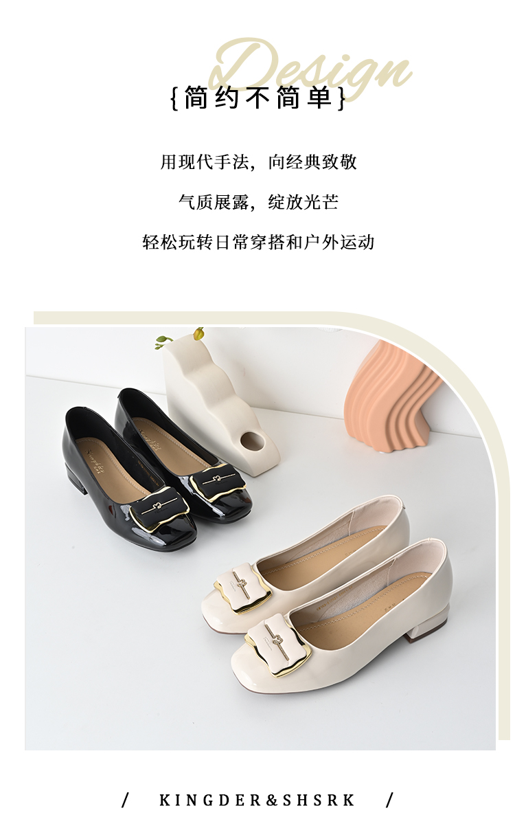 经典鲨2025年春季新品百搭纯色一脚蹬浅口中粗跟气质单鞋女KW163-517021
