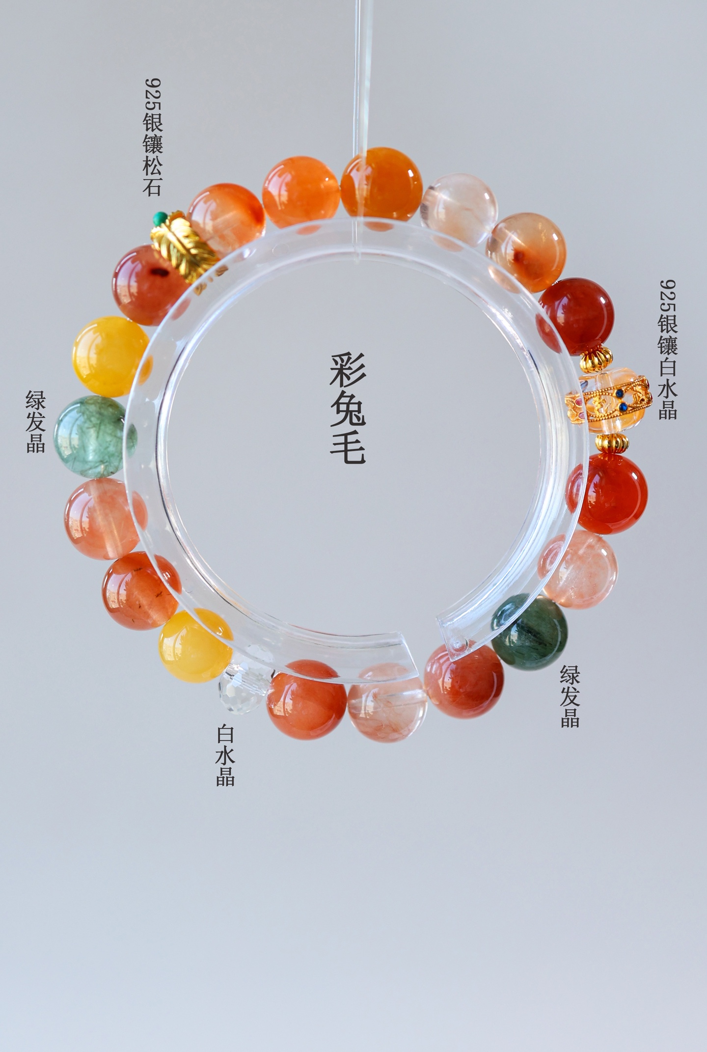 彩兔毛水晶因其特殊的内含物结构,被视为增强勇气的能量石;白水晶则象征纯净磁场,搭配通过24K厚金电镀的925银配件,既保有纯银的抗过敏特性,又具备媲美真金的色泽稳定性,日常佩戴不易氧化褪色。