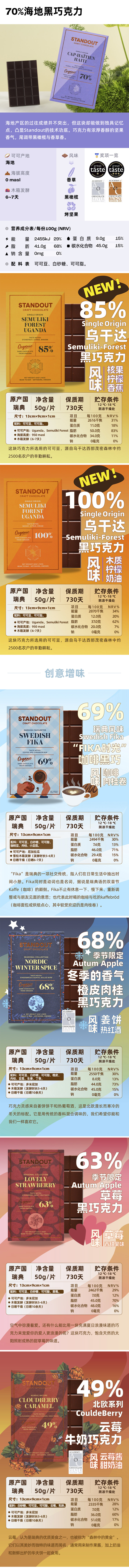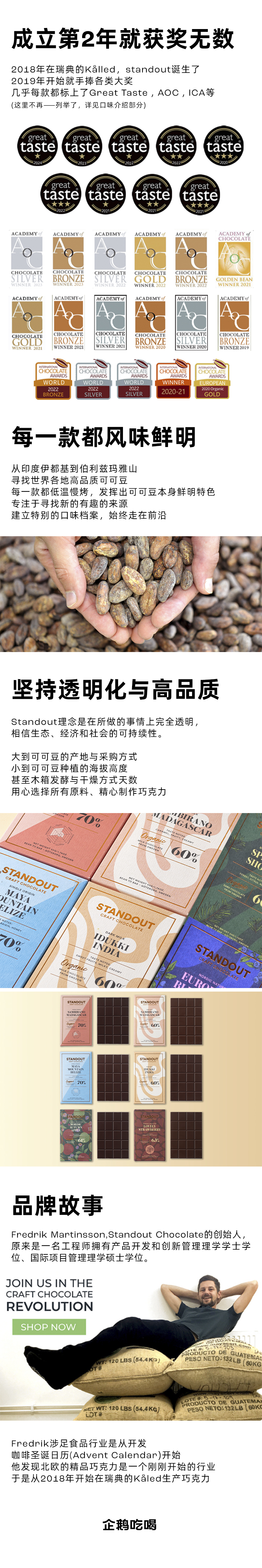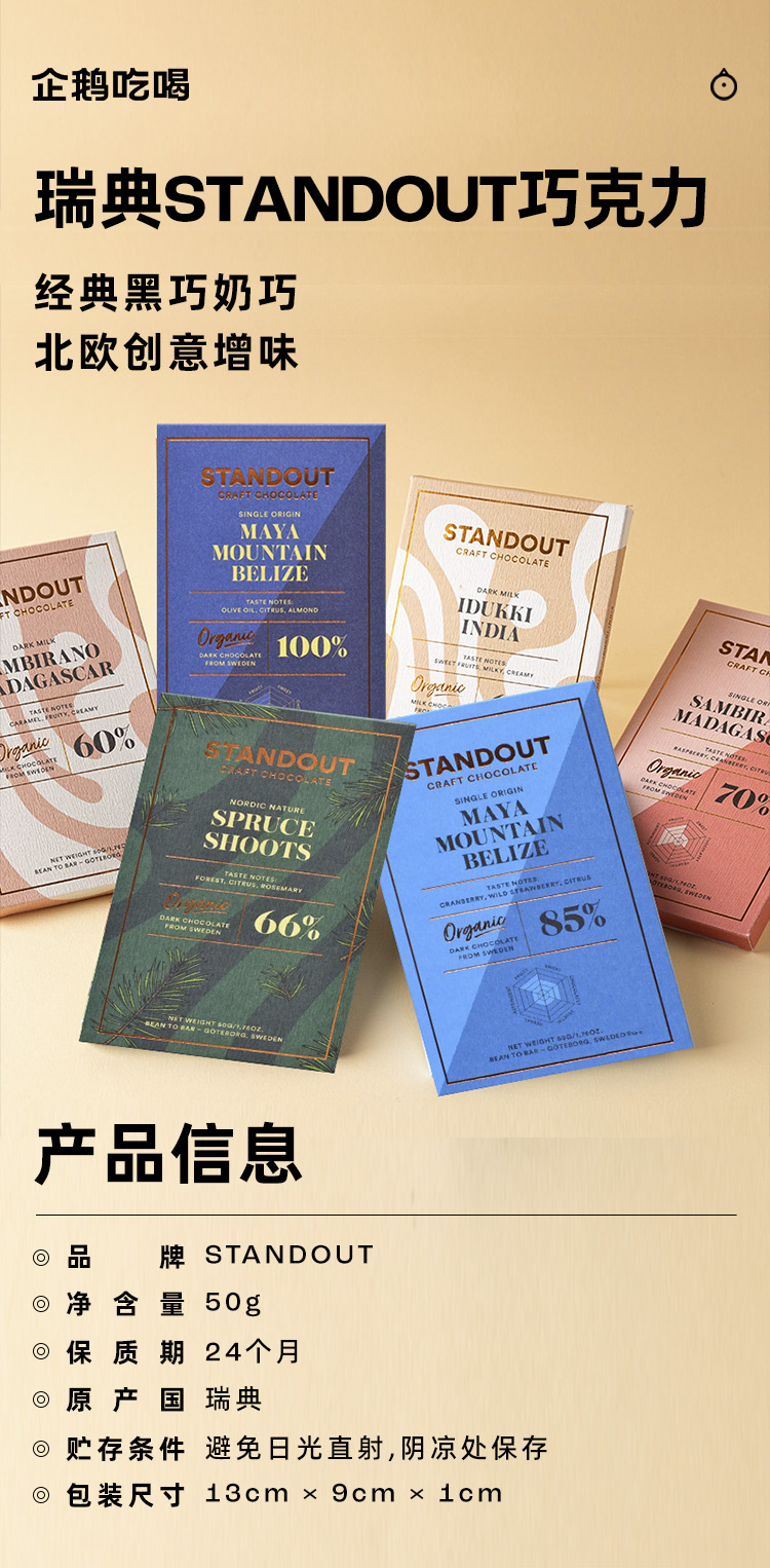 企鹅市集|瑞典Standout巧克力50g 北欧工艺 多种黑巧奶巧增味可选