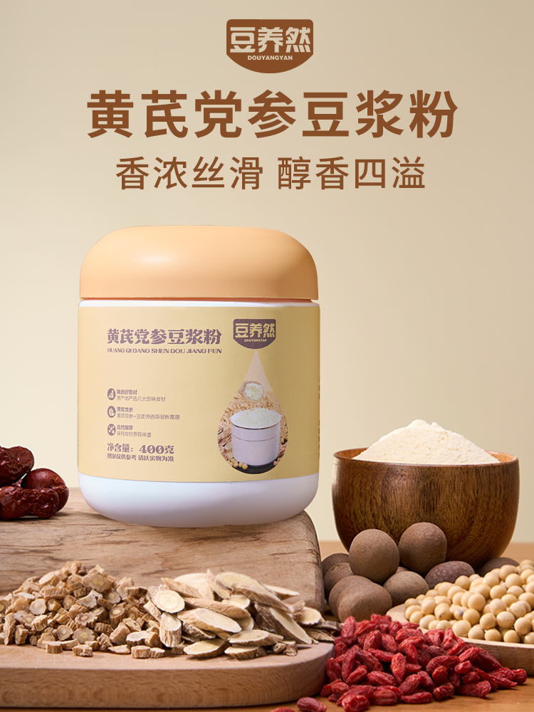 【豆养然黄芪党参豆浆粉】早餐/日常代餐 党参养红、黄芪提气 好喝又营养 配料表很干净,0蔗糖,高蛋白,高膳食纤维,健康又美味