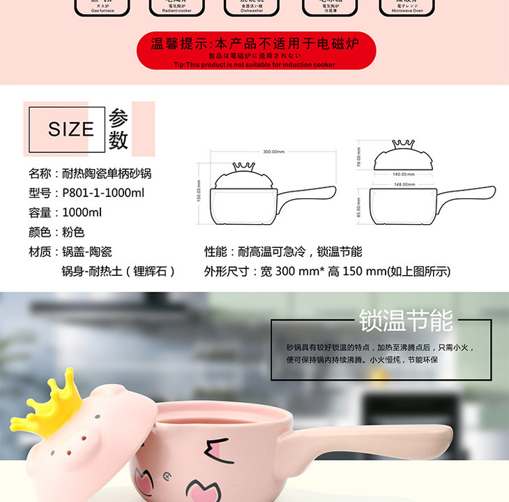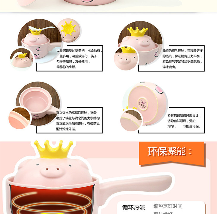 【奶锅】Hey juzu可爱粉猪卡通砂锅奶锅