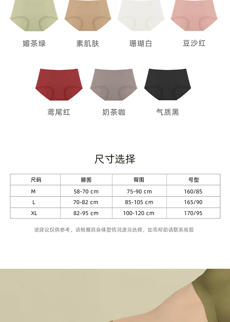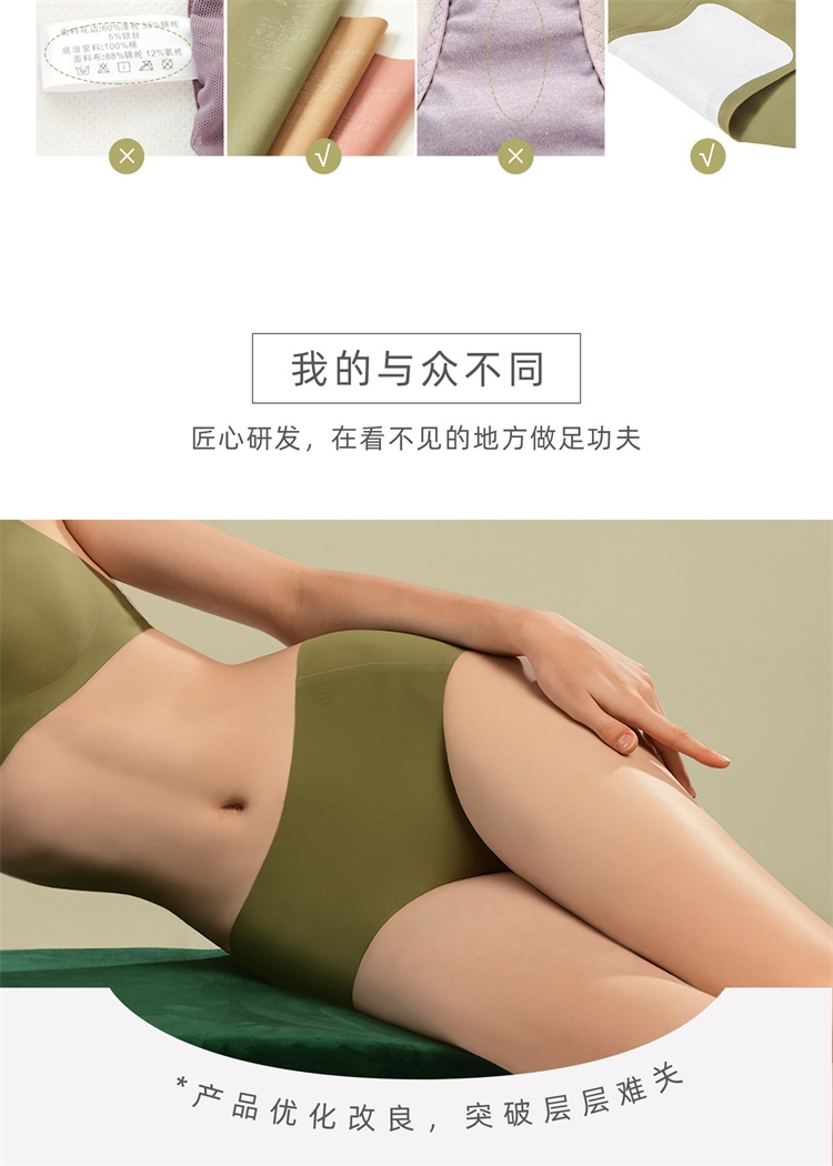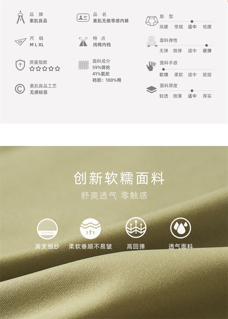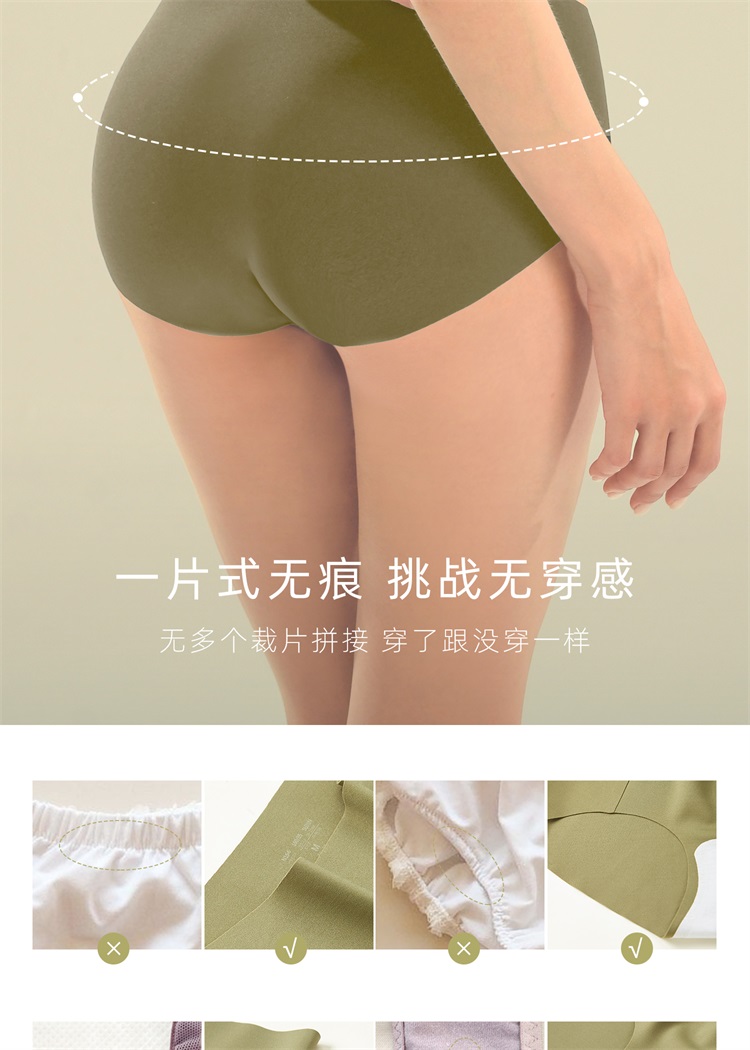 【E】素肌良品【果冻条同款】纯棉裆无痕- 中腰一片式无感女士内裤【三条装】N156