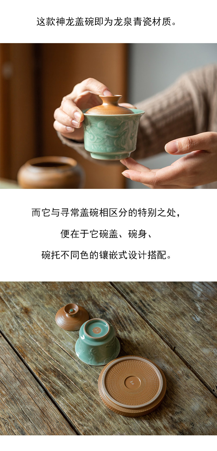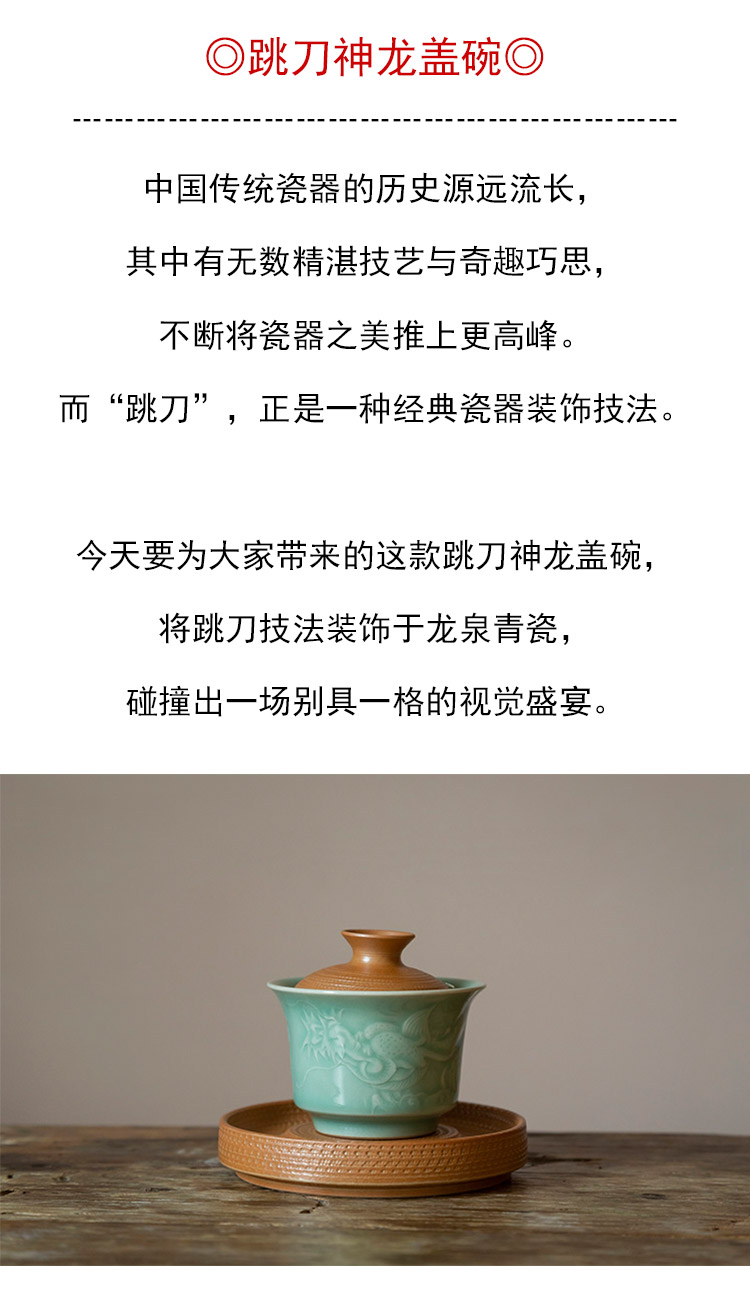 茶香记 跳刀神龙盖碗 冲泡器 功夫茶具 茶道零配 跳刀纹 华贵大气