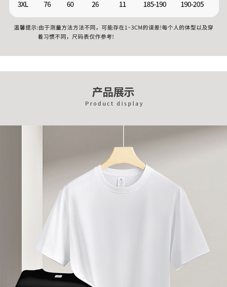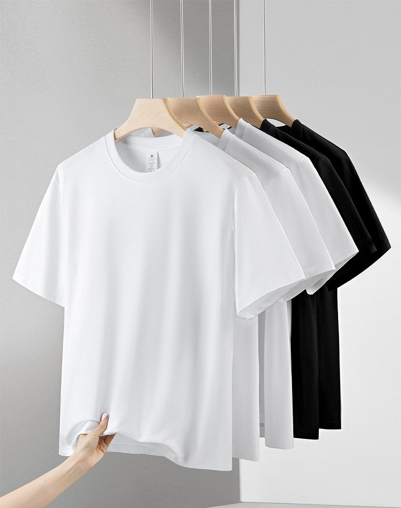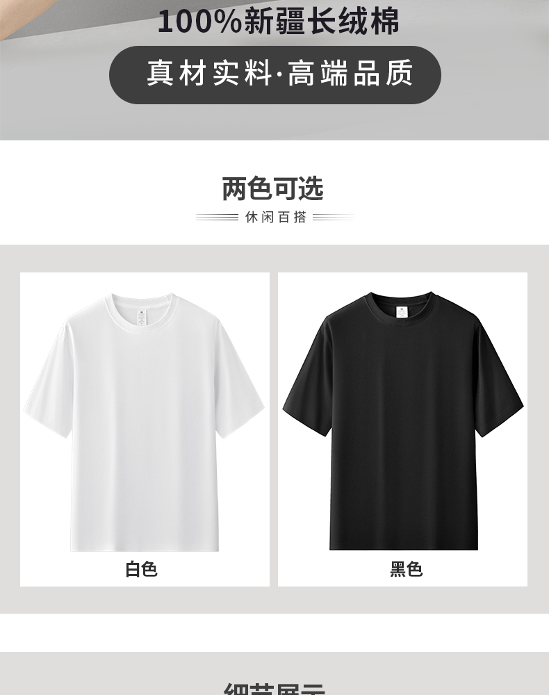 210g新疆长绒棉重磅纯棉半袖纯色圆领打底T恤短袖T恤男宽松 STD108-STD108