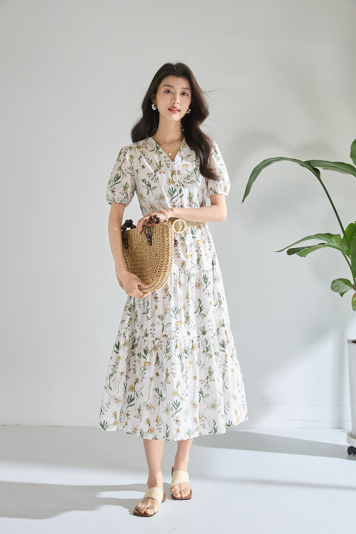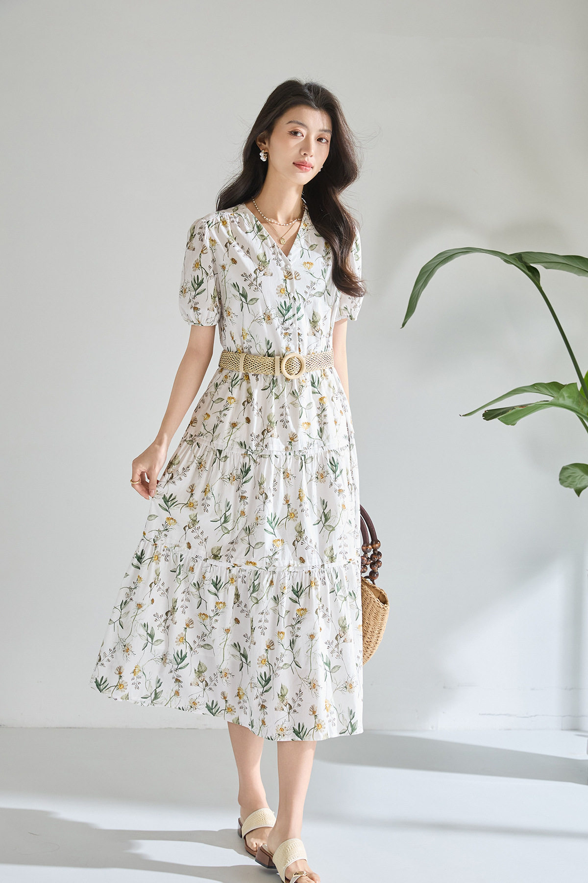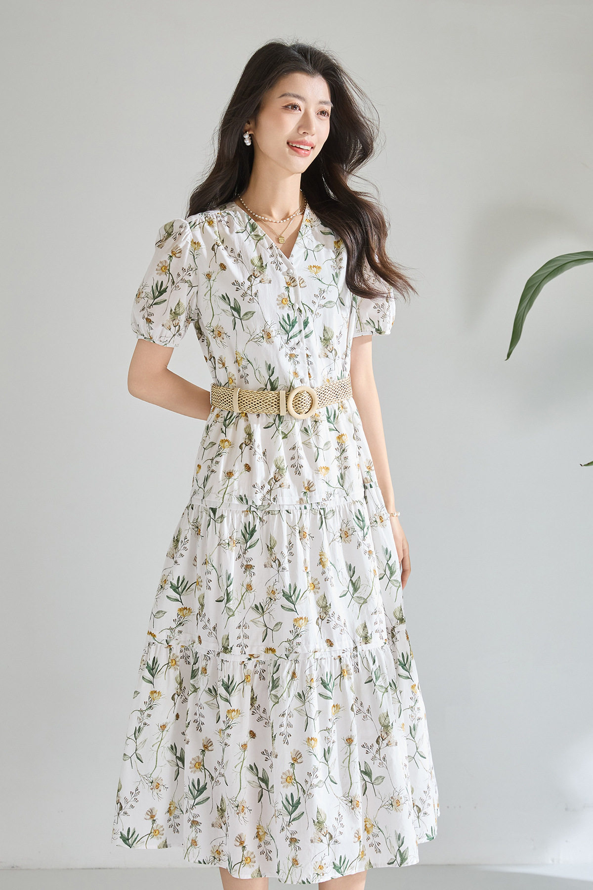 「高货sh」全新升级【铂金会员266/天猫359/差价93】(05358)洛诗琳气质泡泡袖碎花连衣裙2026新款V领收腰中长A字裙女