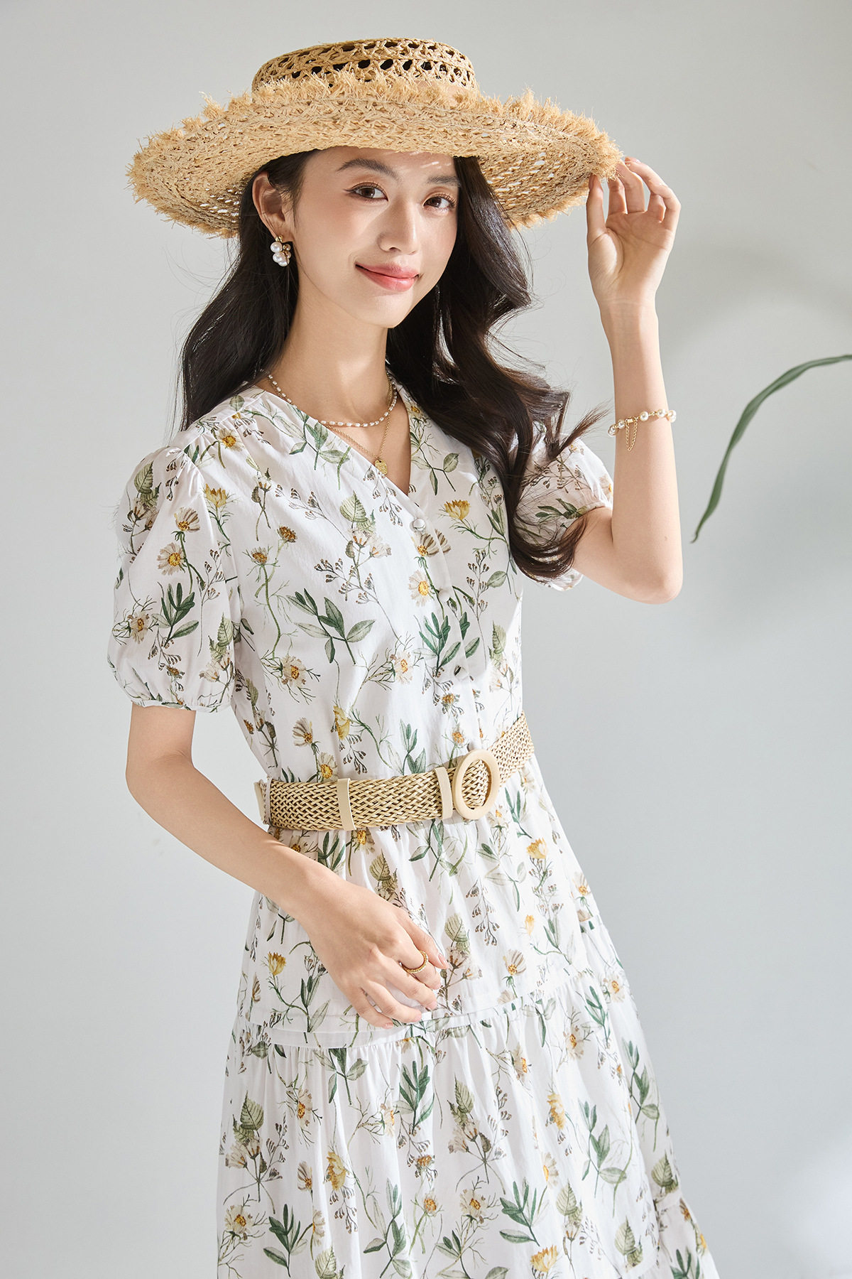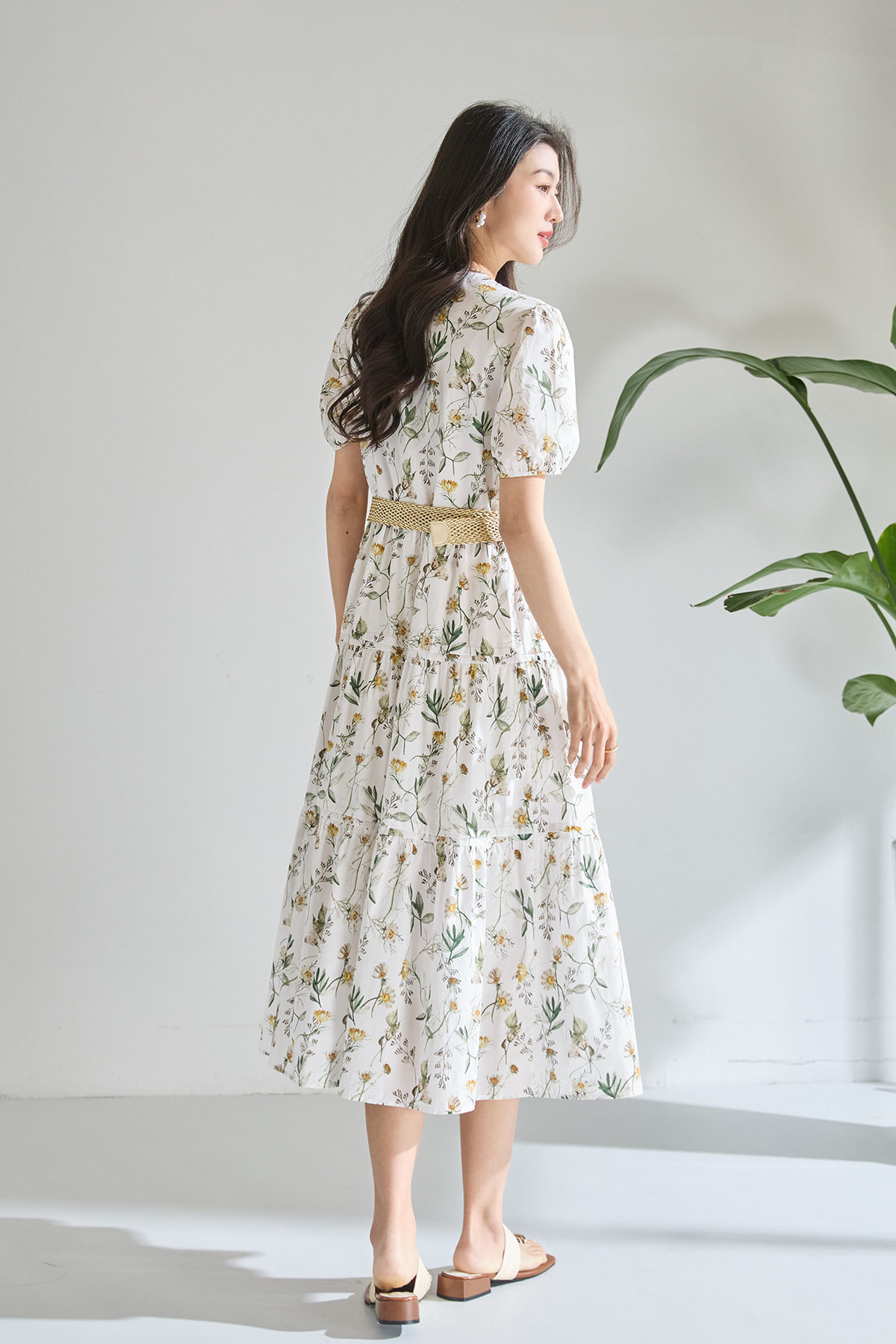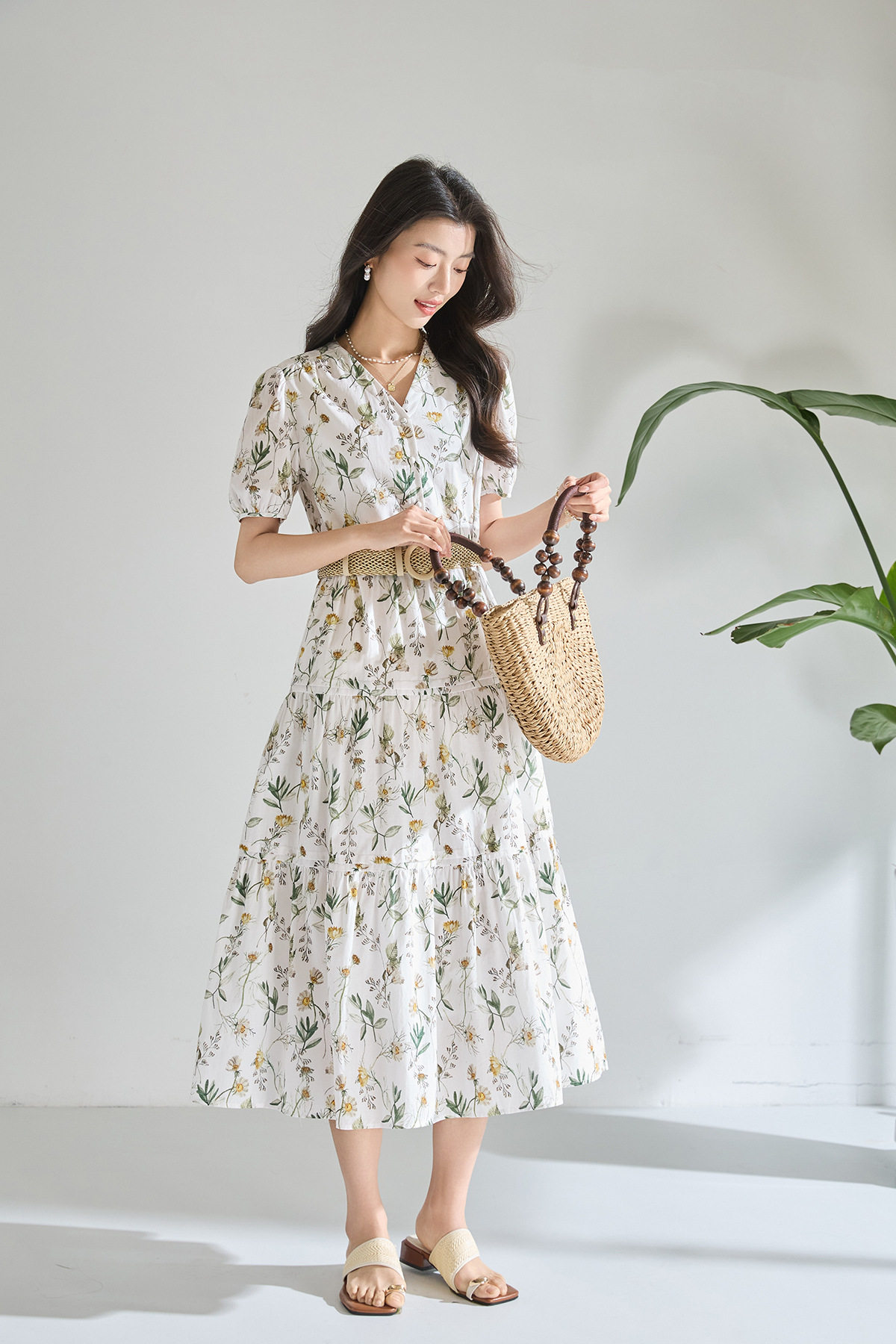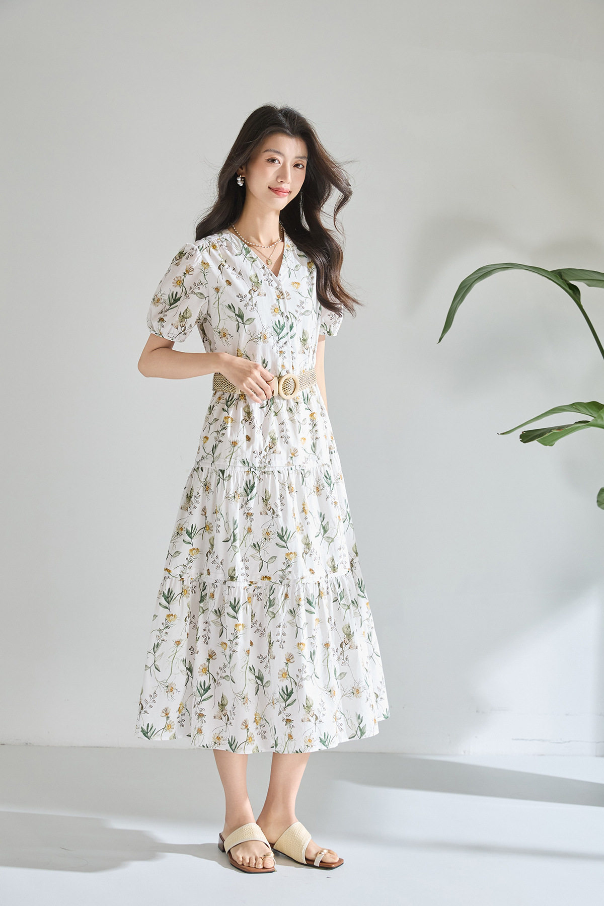 「高货sh」全新升级【铂金会员266/天猫359/差价93】(05358)洛诗琳气质泡泡袖碎花连衣裙2026新款V领收腰中长A字裙女