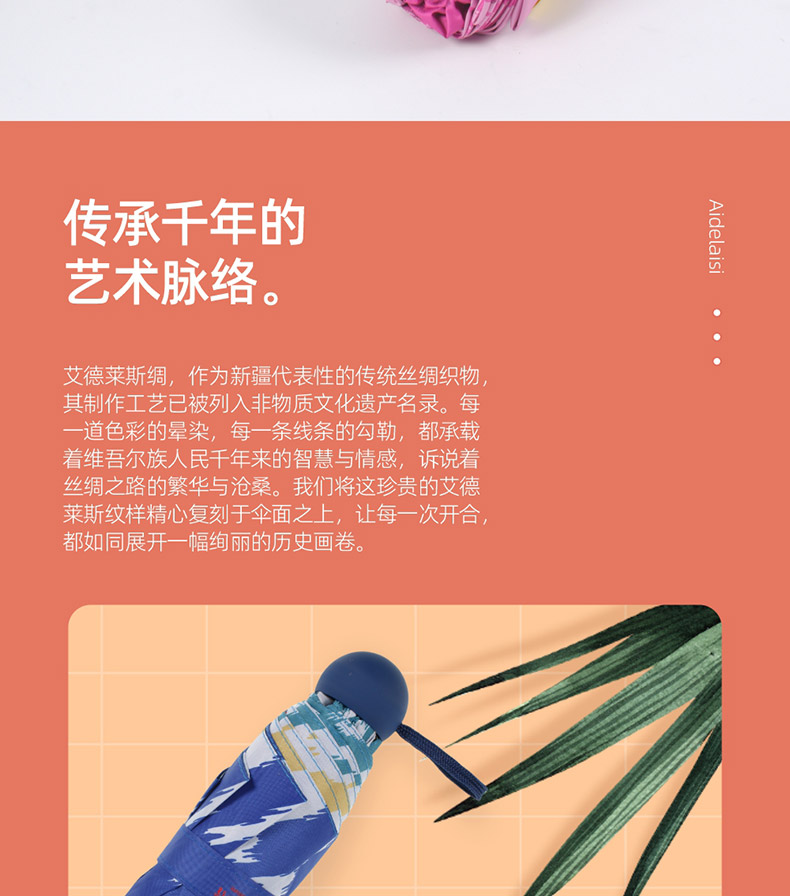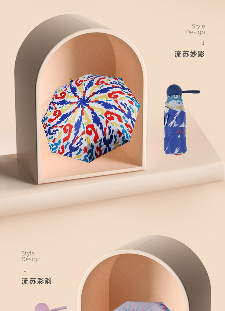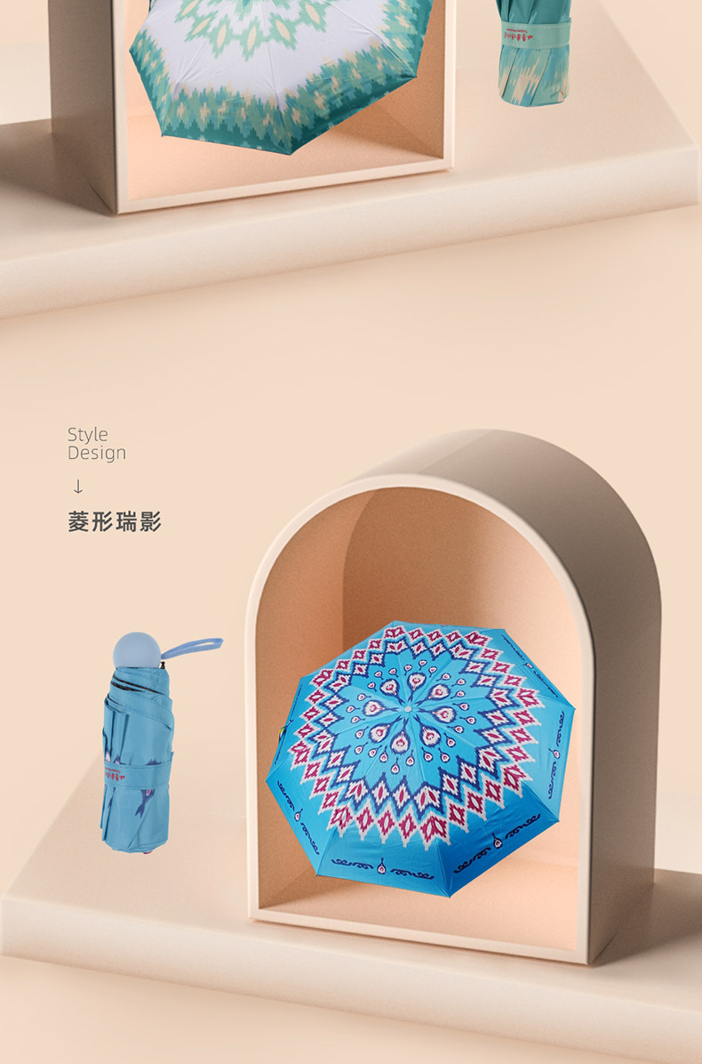 至爱疆物·艾德莱斯胶囊晴雨伞 艾德莱斯独特纹样吸睛 小巧如胶囊