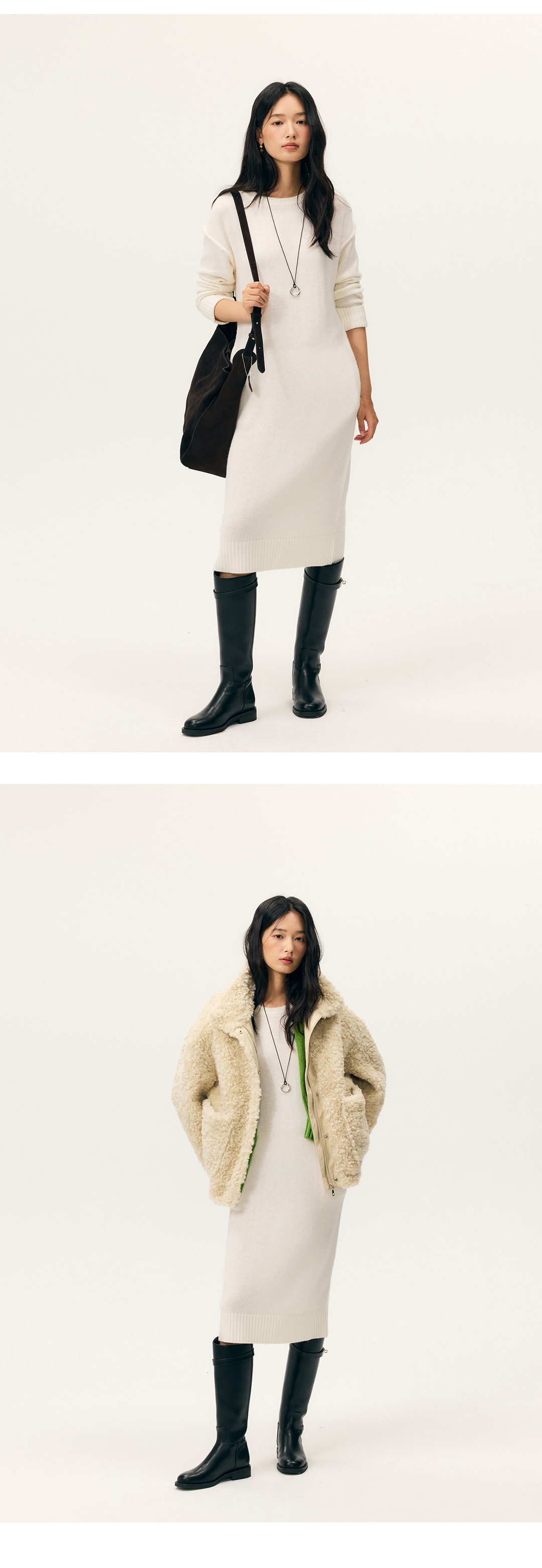 HeyDress圆领刺绣花朵毛呢马甲/塔克褶提花微A半裙