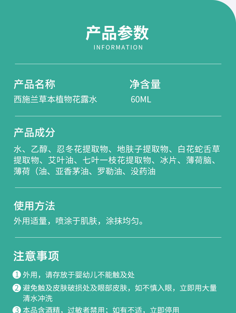 3、本品含酒精,过敏者禁用;如有不适,立即停用;