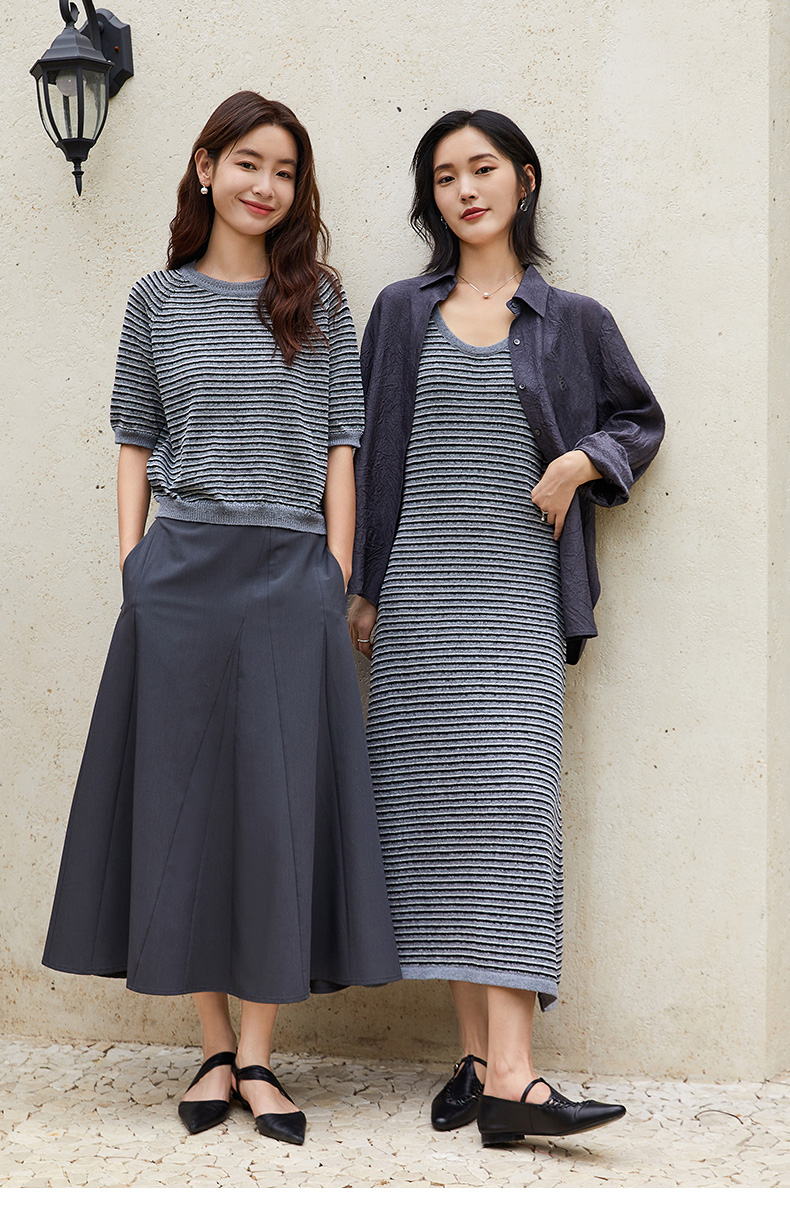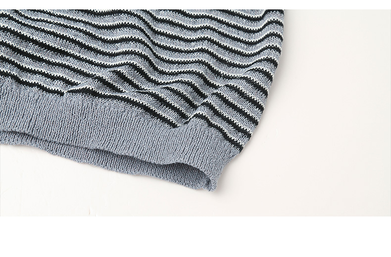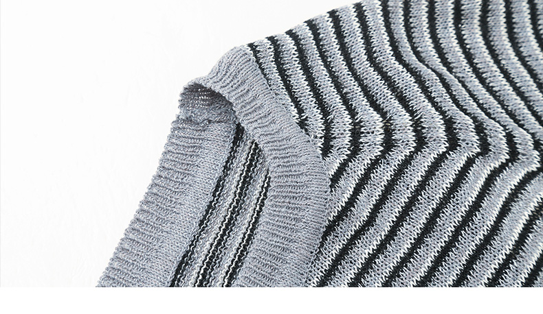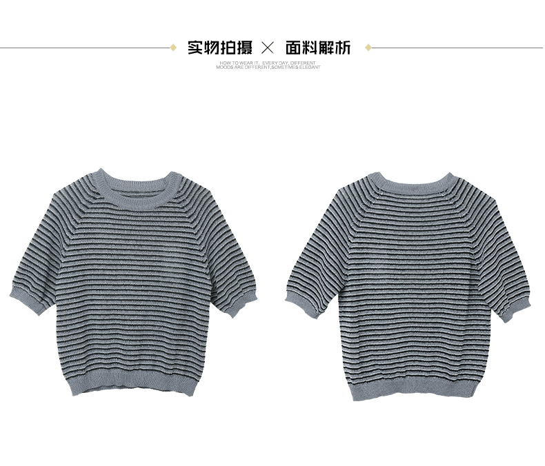 韩系简约风圆领条纹针织短袖女 宽松显瘦百搭上衣