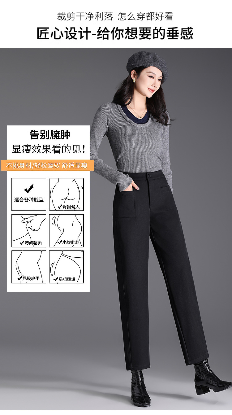 MYX-CY-8869-L简约宽松显瘦休闲直筒裤24年秋冬款通勤高腰九分裤修身遮胯锥形裤