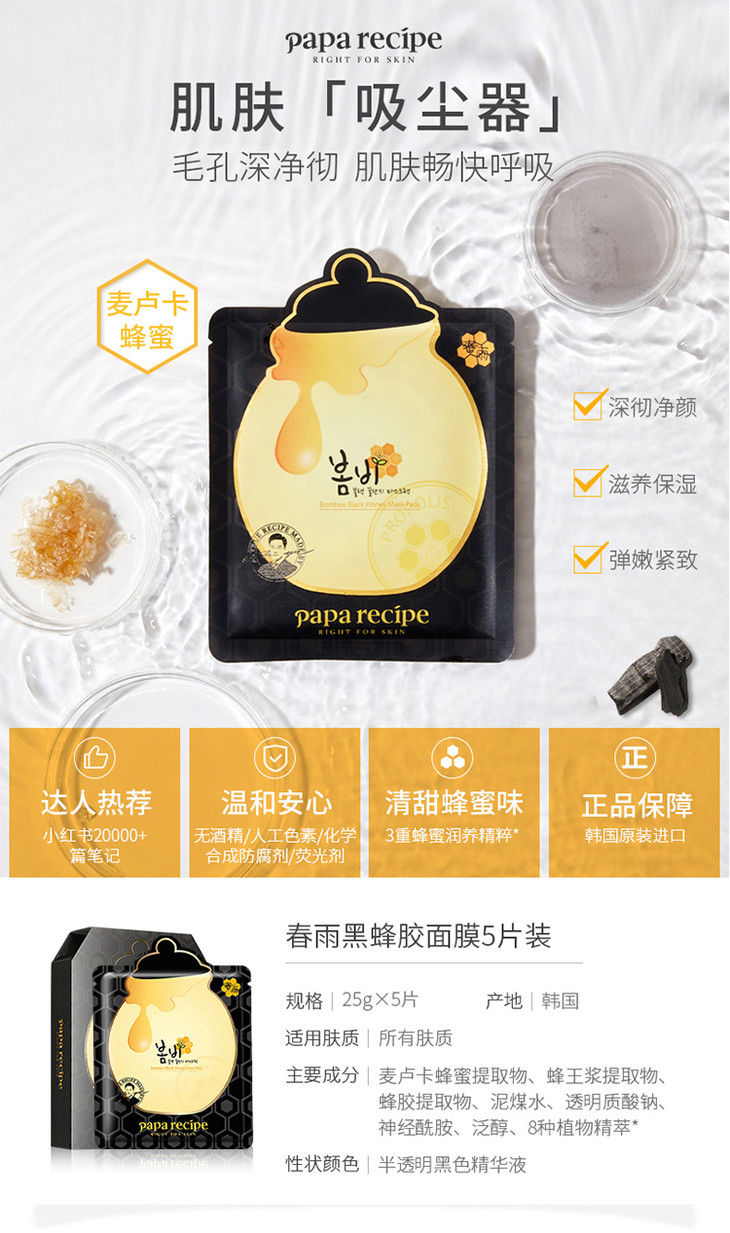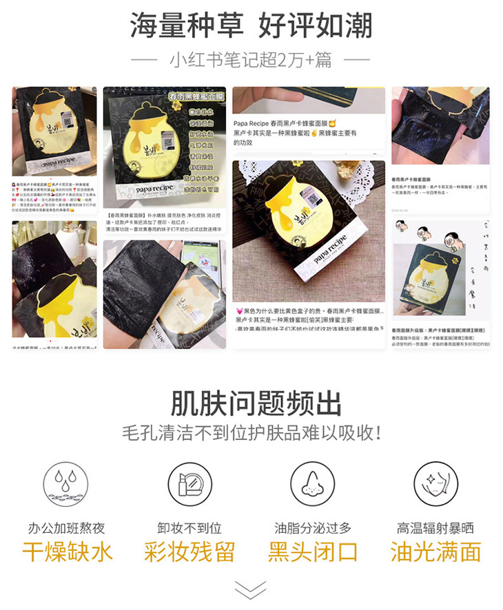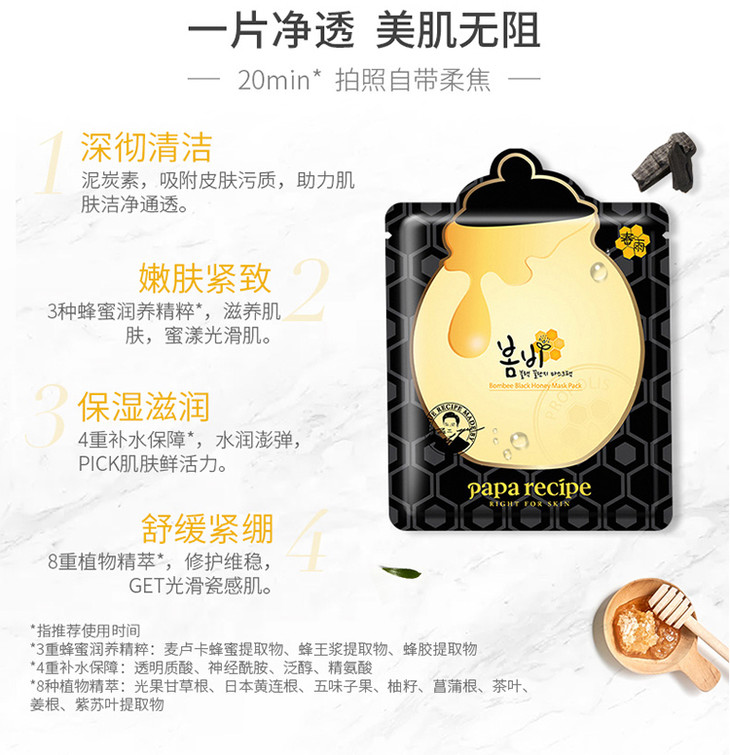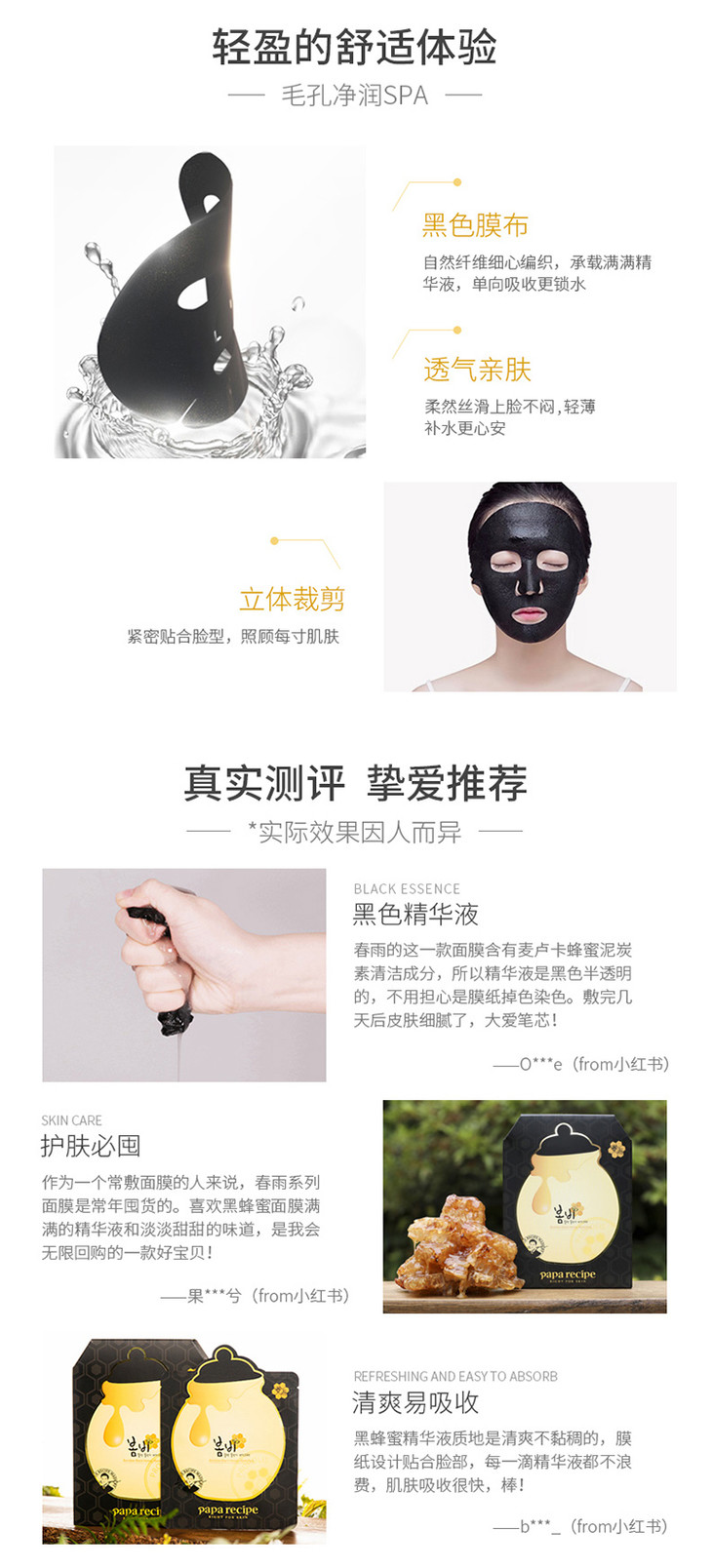 BX👑韩国✨最新版✨paparecide黑春雨淡斑面膜10片装超级🔥,敏感皮膚的福音[强][强]~黑春雨在經典款的基礎上添加了來自加拿大的黑盧卡純天然成分🚩,另含有竹炭成分,🏵有吸附灰塵與污垢的作用,所以這款面膜有效吸附臉上毛孔🌼中的灰塵粉刺🍀,祛痘、祛紅疹、皮膚調節及毛孔修復、補水美白等綜合功效。🎁