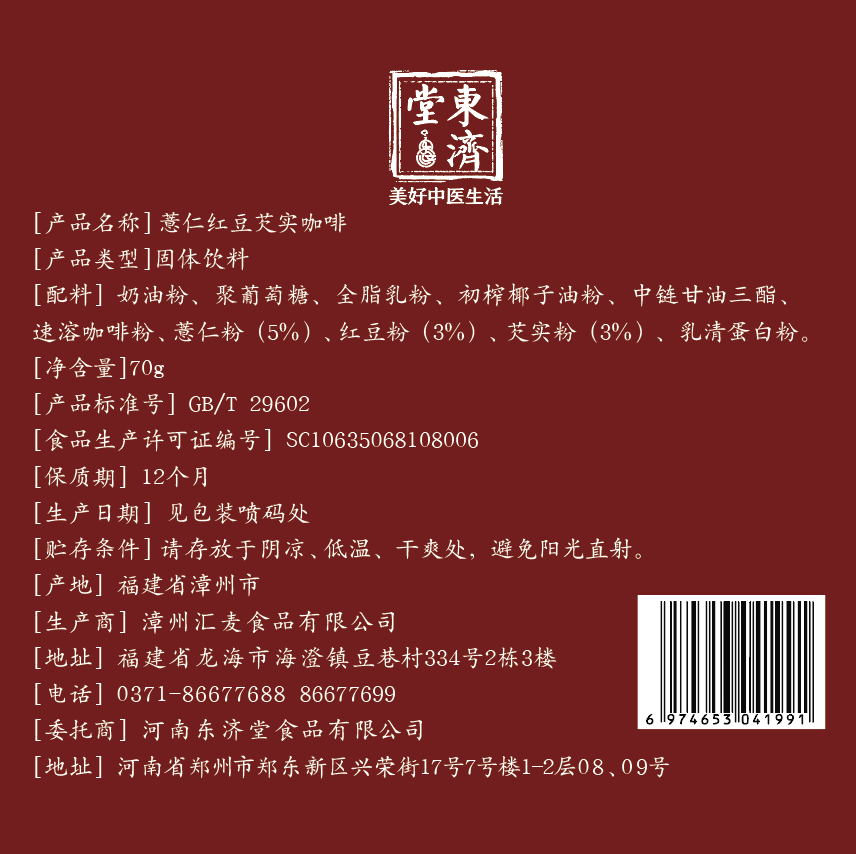 东济堂薏仁红豆芡实咖啡 7包/盒
