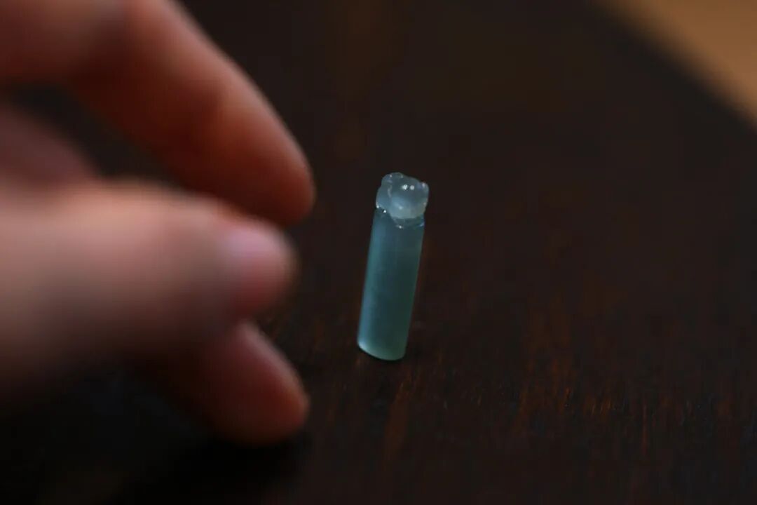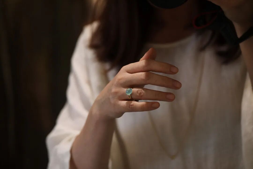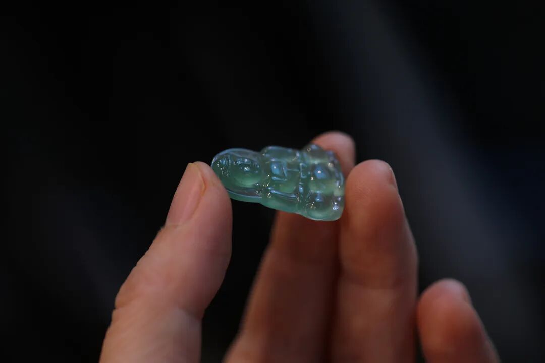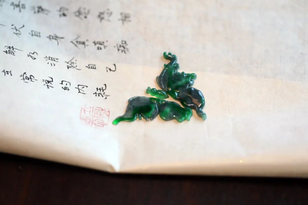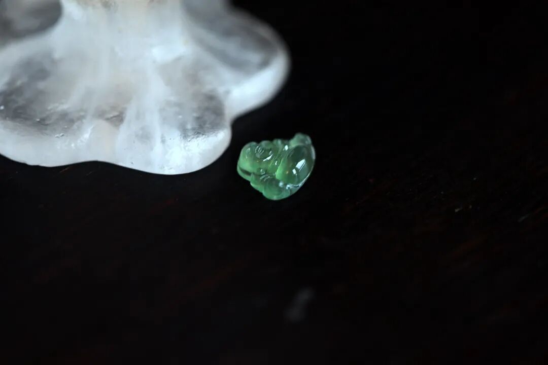 所以,即便我是个珠宝设计师,却也跳不过素料子这一关。 1)价格不包含镶嵌费,镶嵌费实报实销+200元的镶嵌管理费。 2)定制款,不退不换,请大家慎拍;完美主义者勿拍。拍下后请联系我们,确定镶嵌款式,如果是戒指,请把手寸告诉我们。乌鸡飘冰正阳绿,配了一个小虫子身体,只要素金镶嵌就很雅致的一枚。太胖了,水灵灵一枚,纯料老坑,极地冰川一样的精灵通透莹润