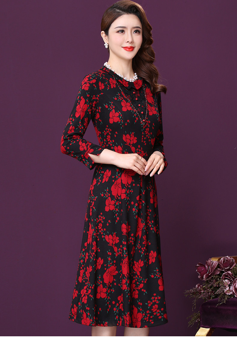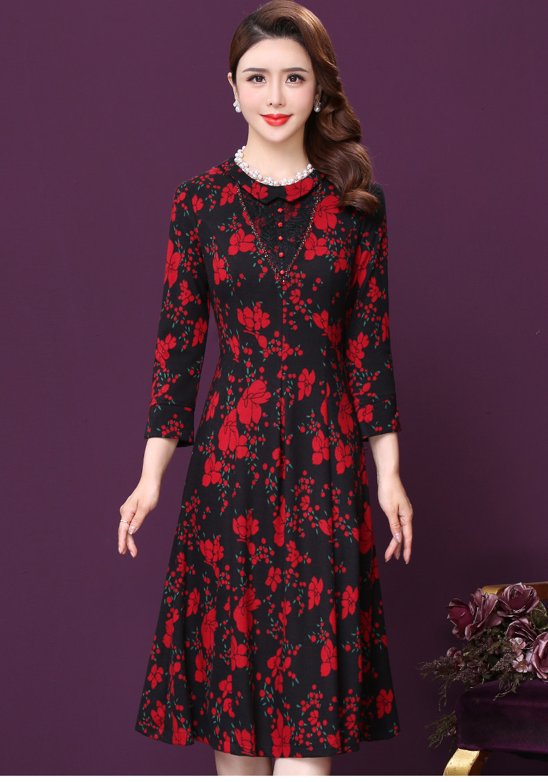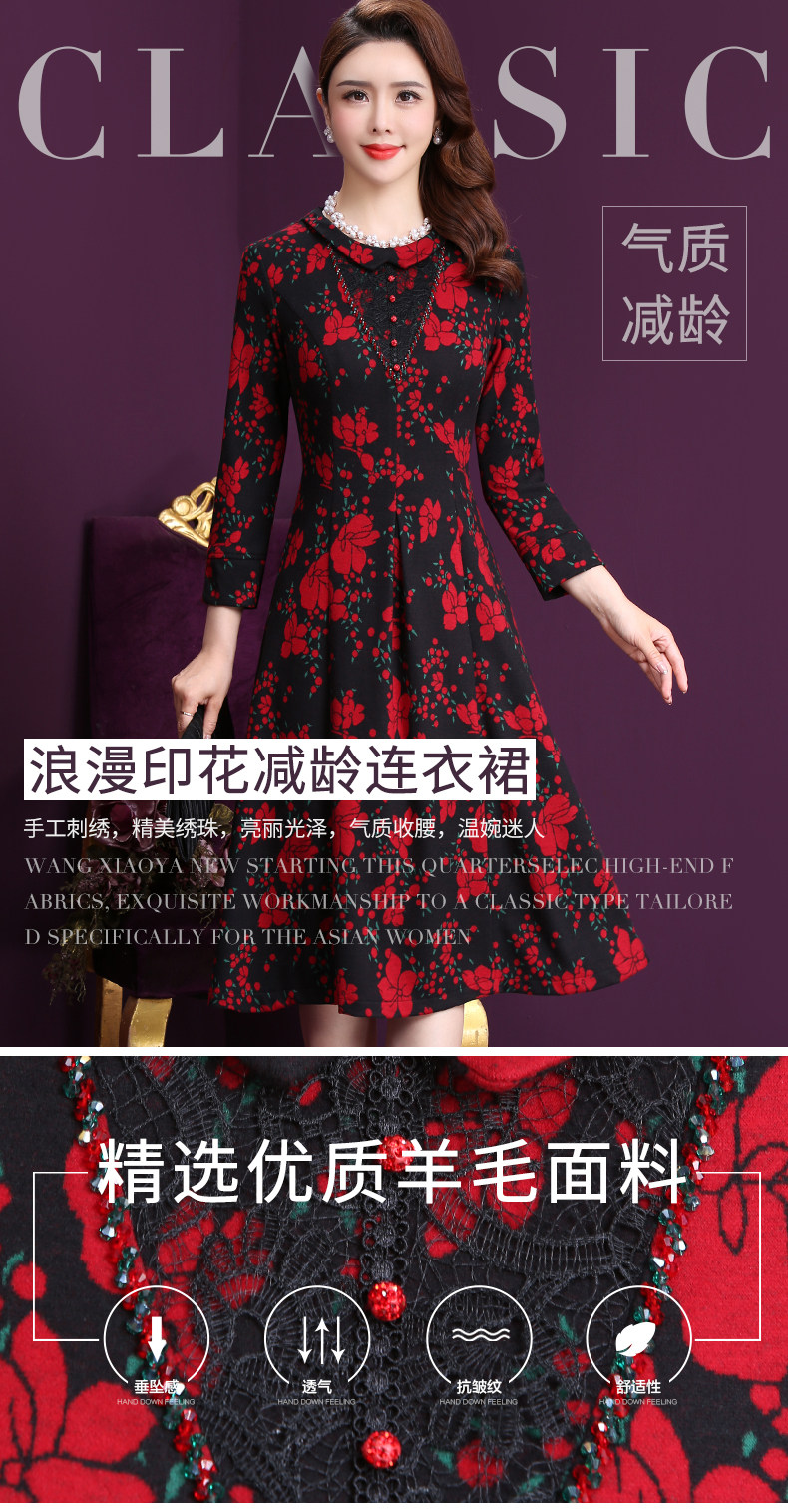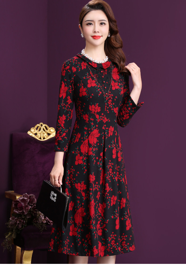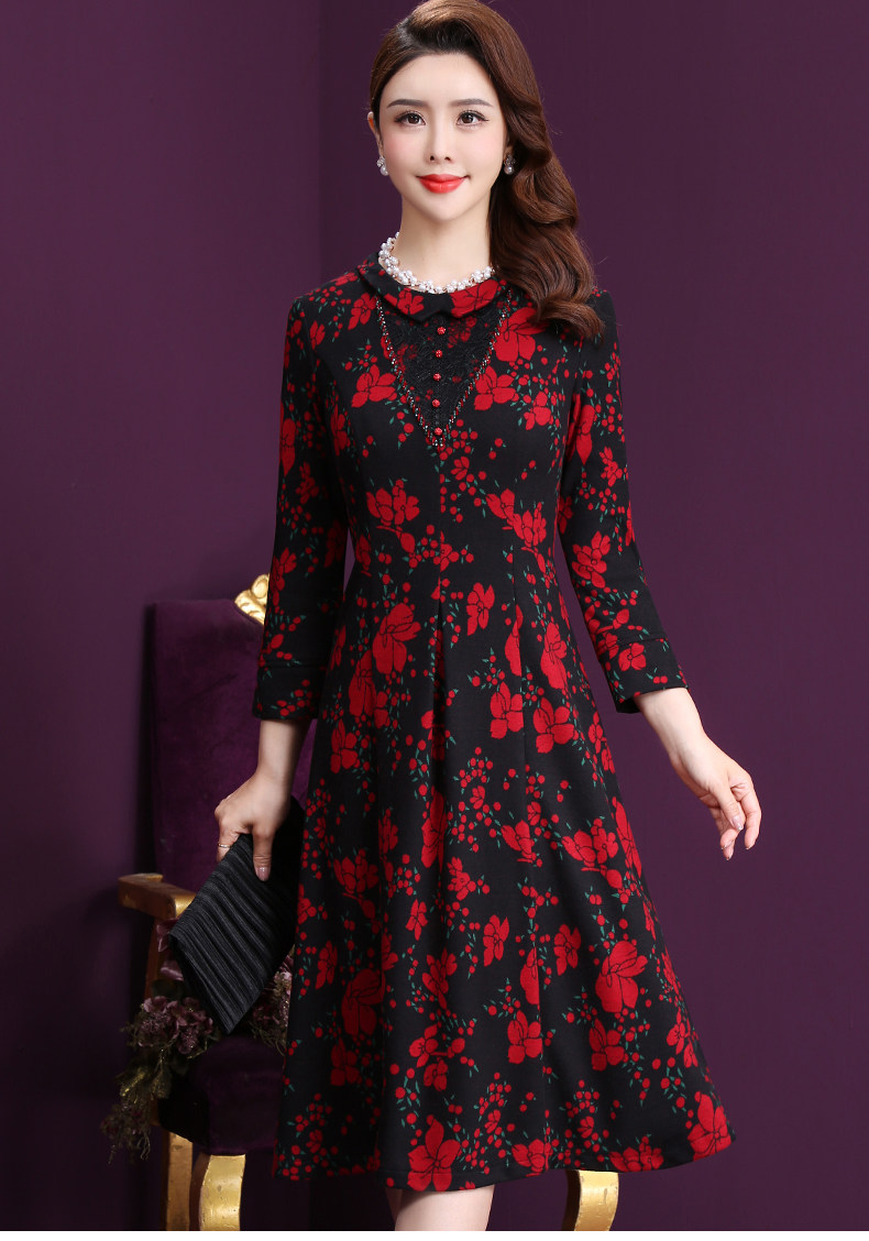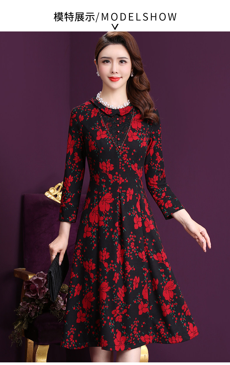 WXY-W-M1-6502妈妈洋气碎花新款女长袖法式休闲中长裙子