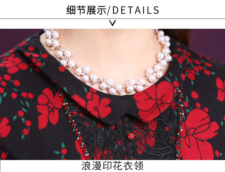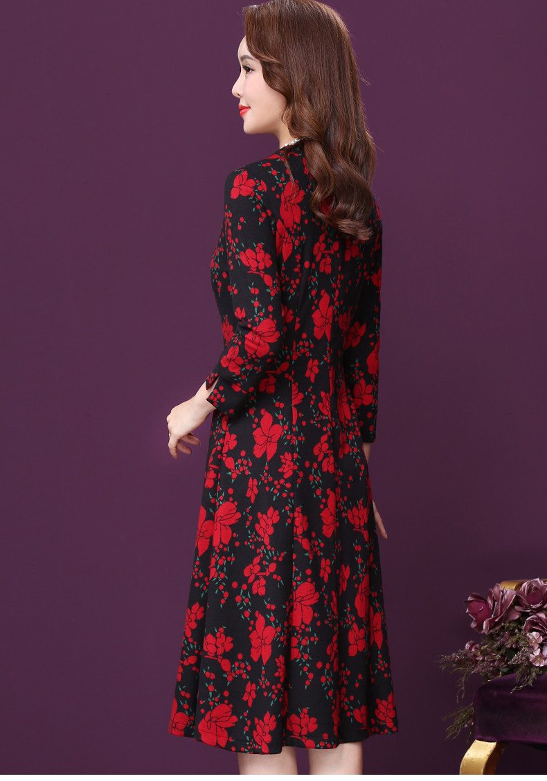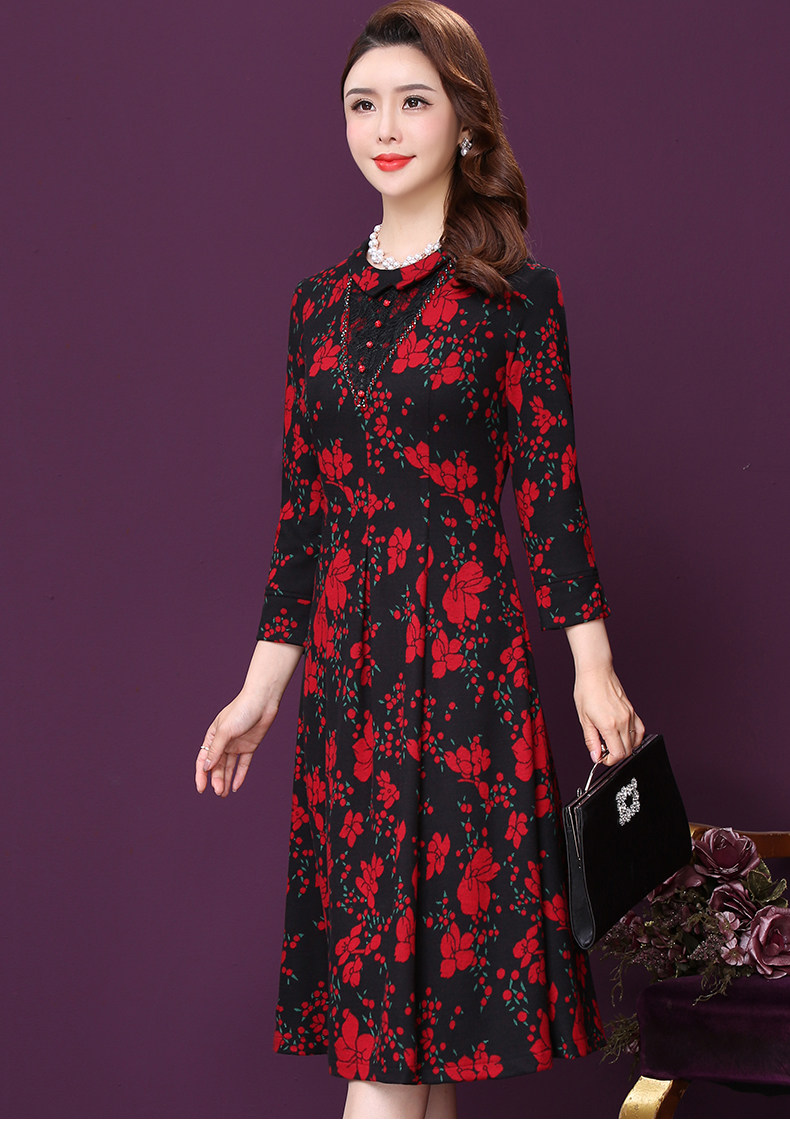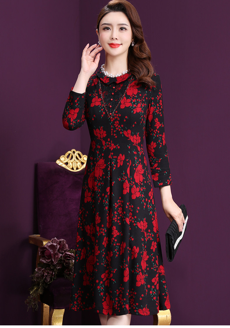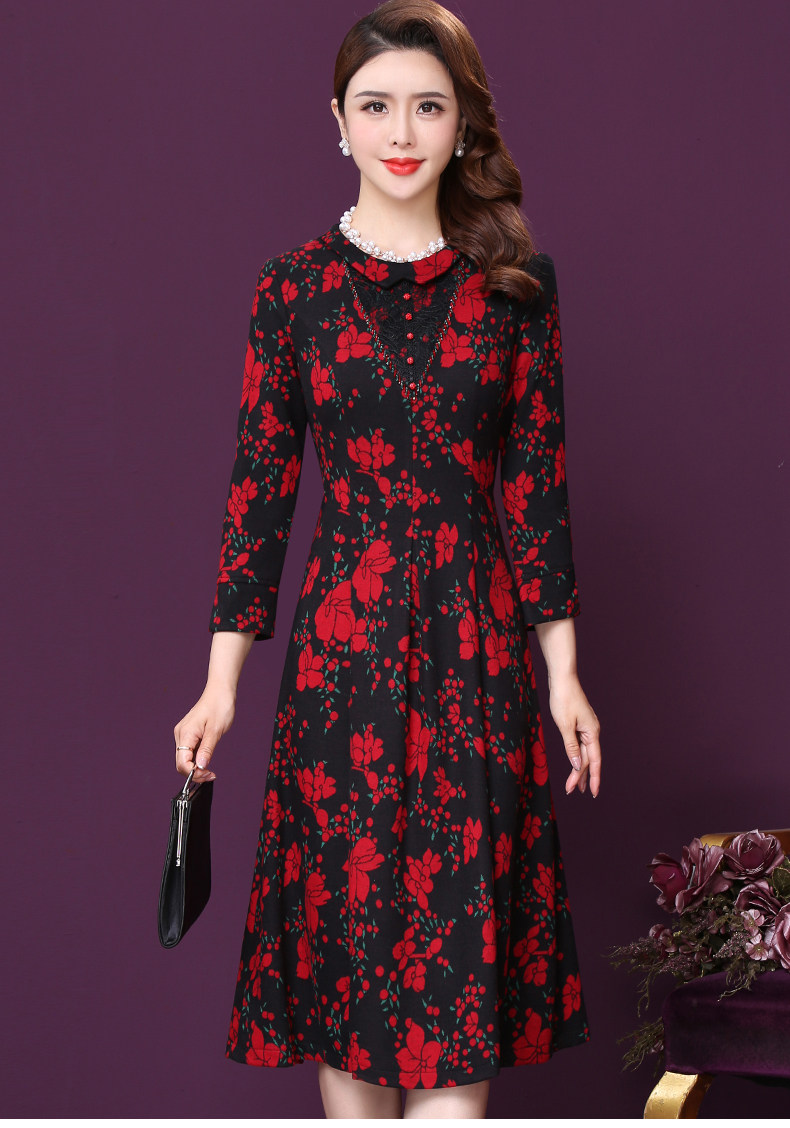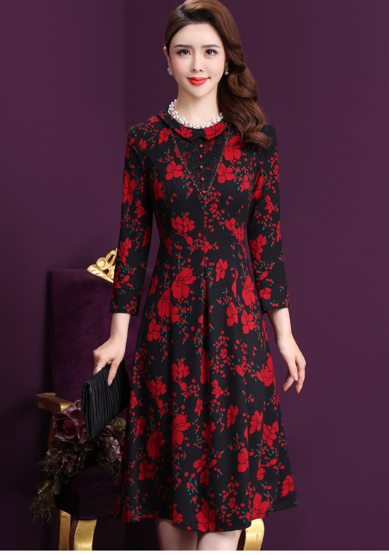 WXY-W-M1-6502妈妈洋气碎花新款女长袖法式休闲中长裙子