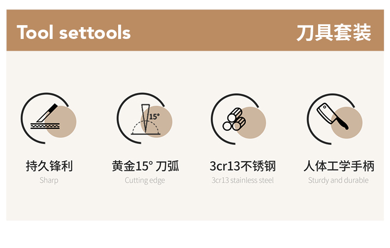 摩登主妇刀具厨房套装组合切片刀家用全套辅食厨具菜刀菜板二合一