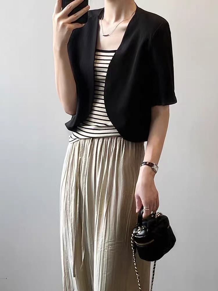 7.7清货,能接受不退拍(套装)330条纹吊带➕黑色外搭两件套-喜出