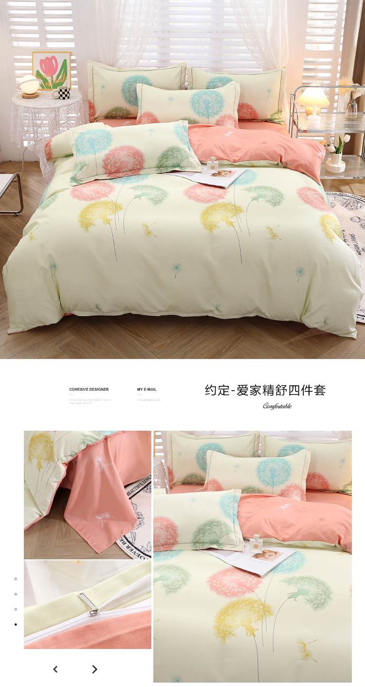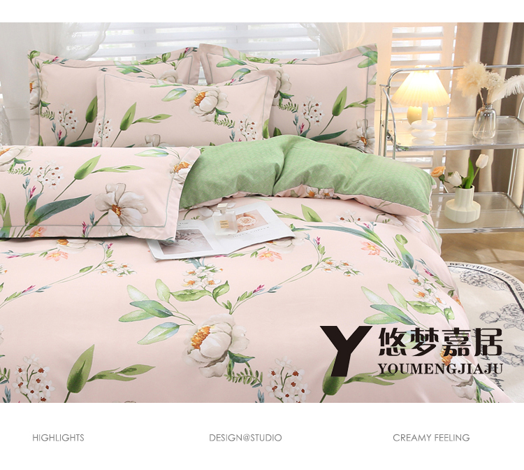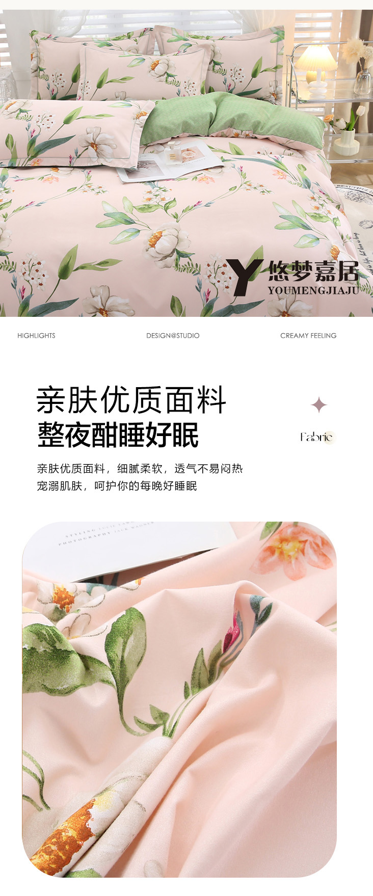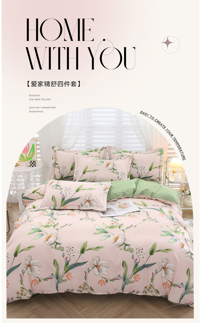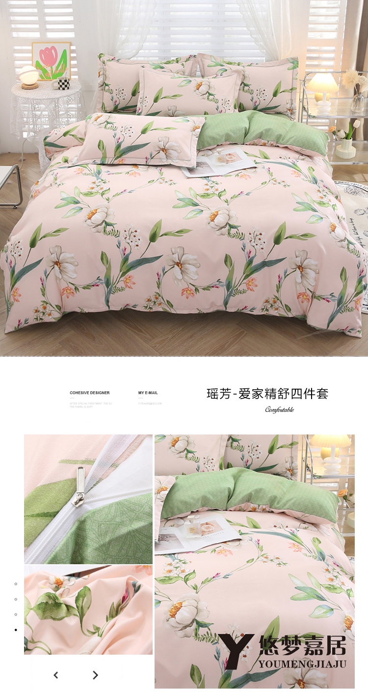 悠梦嘉居 爱家精舒四件套【爱家精舒四件套床上用品印花套件双人200*230四件套1.5/1.8床通用时尚爆款磨毛活性印染,约定/瑶芳】