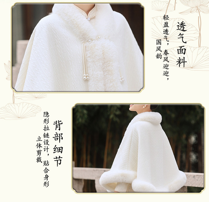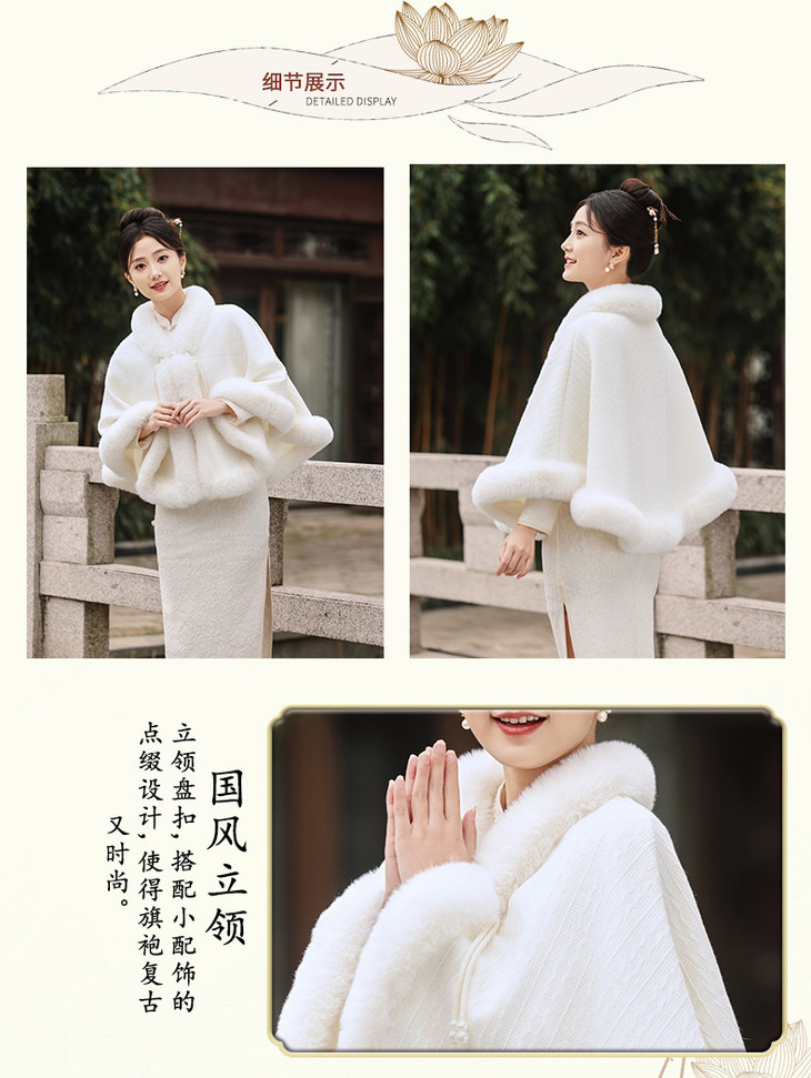 冬款加绒加厚披肩斗篷 复合蕾丝加绒气质女旗袍SJT411