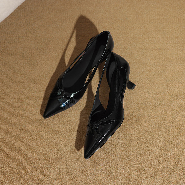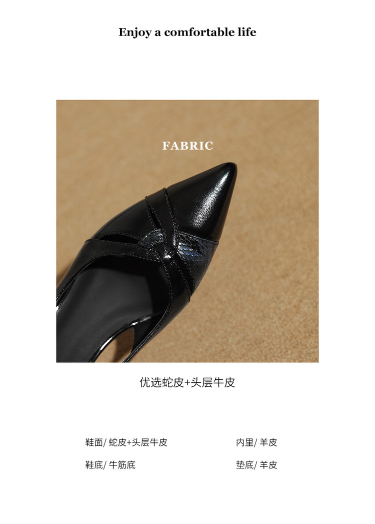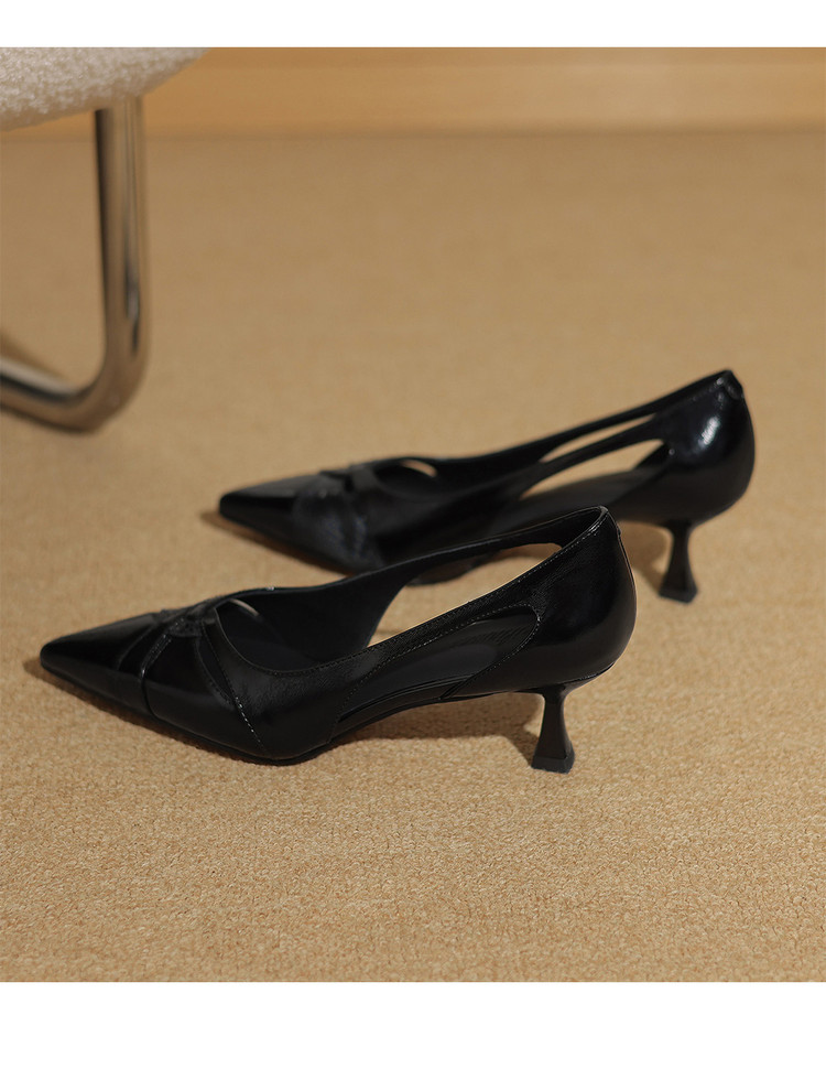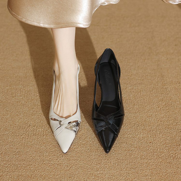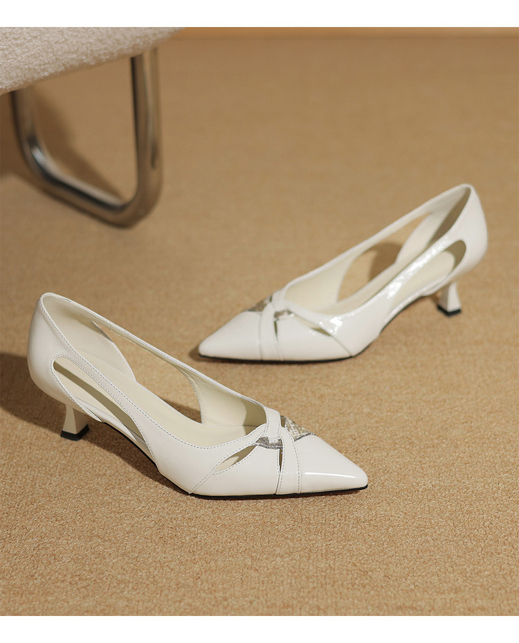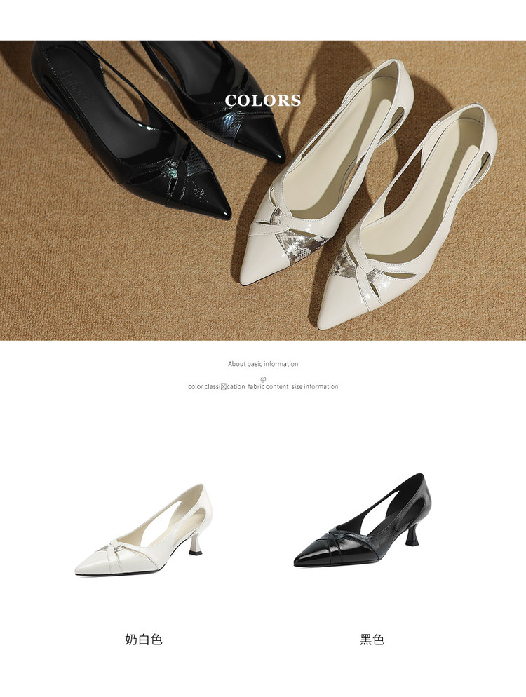 【预售5天】头层牛皮!镂空高跟鞋,尖头细跟单鞋女奶白真皮中跟气质ZF&25087