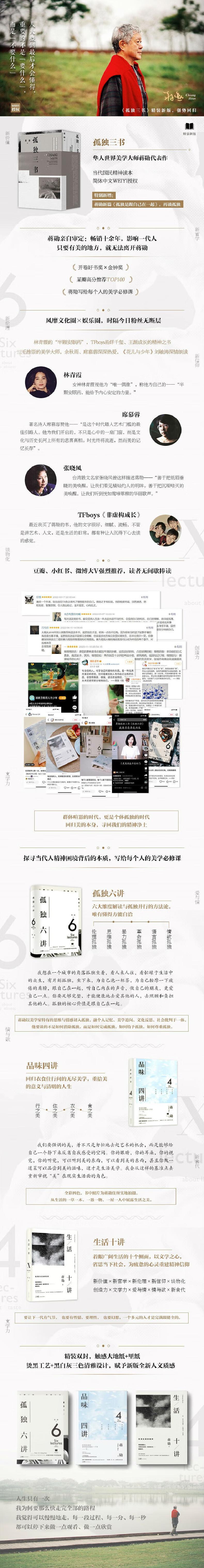 蒋勋文笔清丽流畅,说理明白无碍,兼具感性与理性之美,有小说、散文、艺术史、美学论述作品数十种,并多次举办画展,深获各界好评。代表作有《孤独六讲》《生活十讲》《品味四讲》《美的沉思》《传说》等。