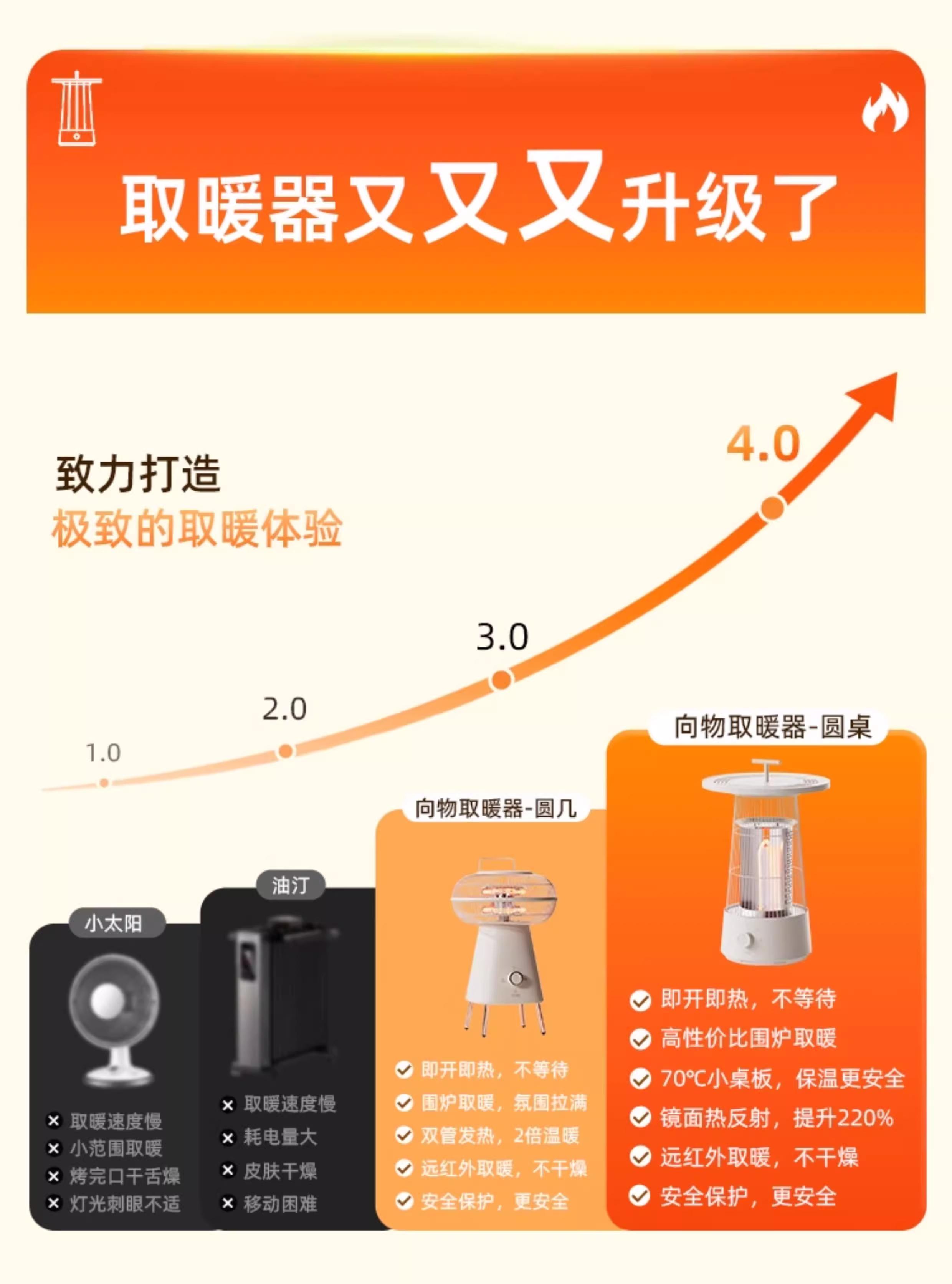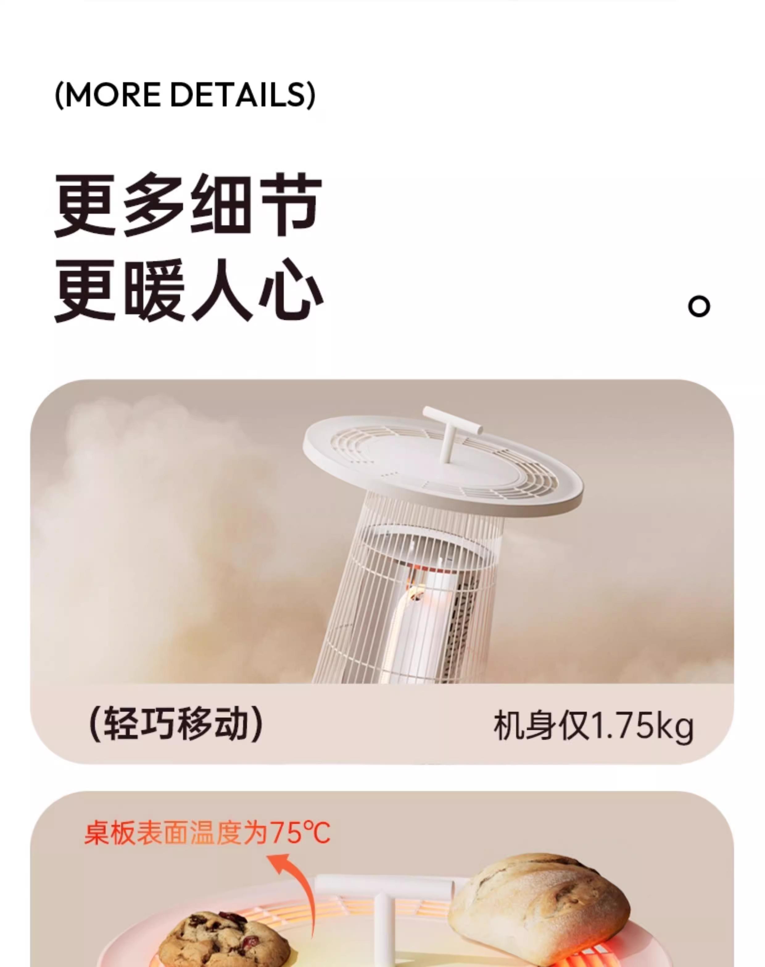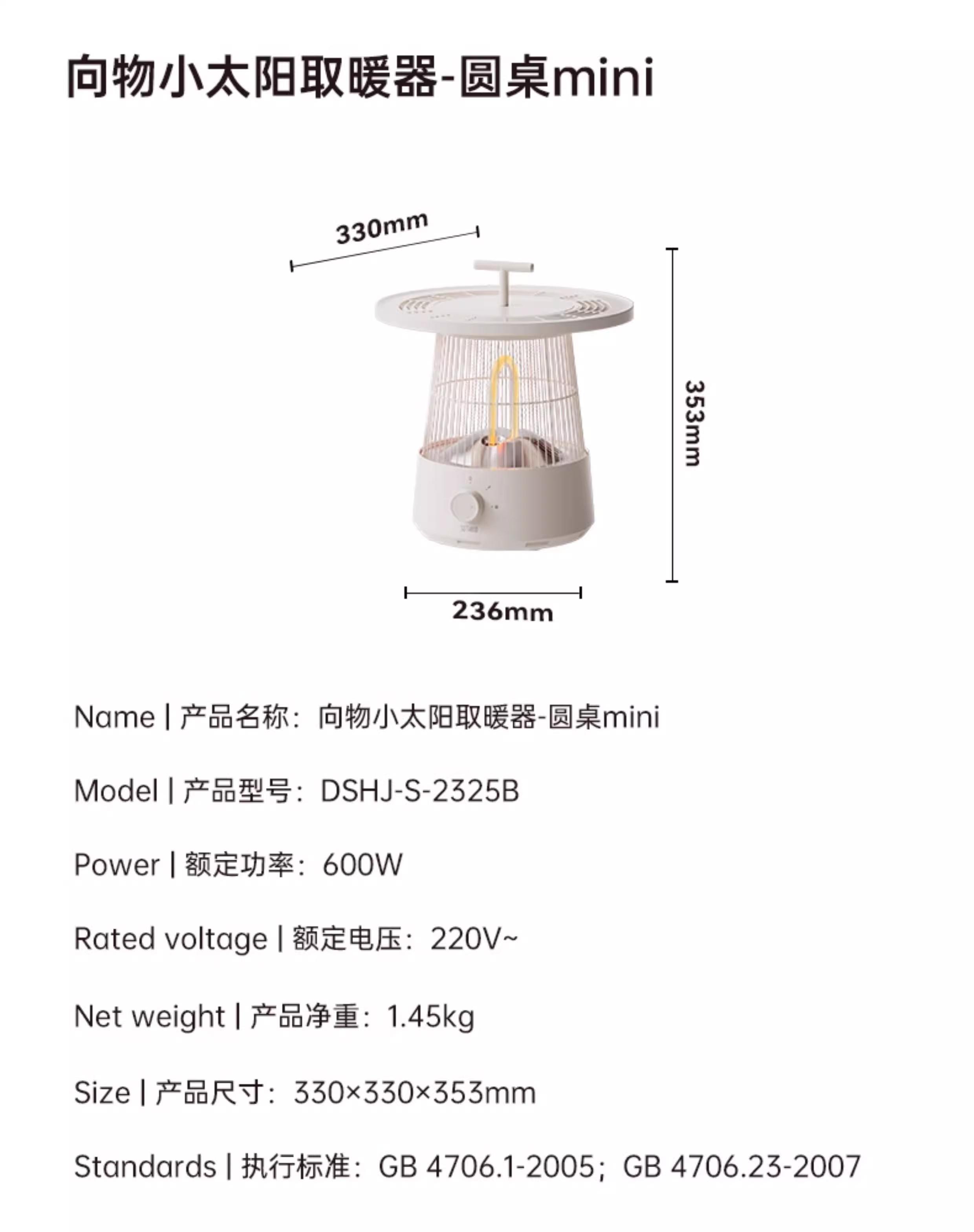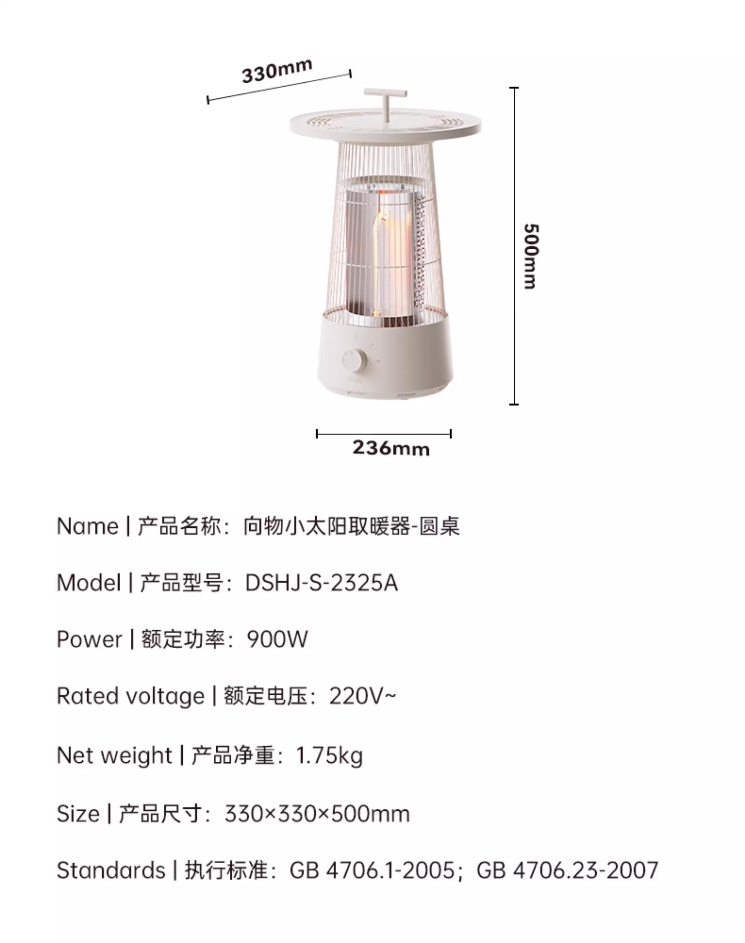 向物圆桌MINI石墨烯取暖器DSHJ-S-2325A/B家用小太阳节能电暖气小型烤火炉鸟笼暖风机暖炉
