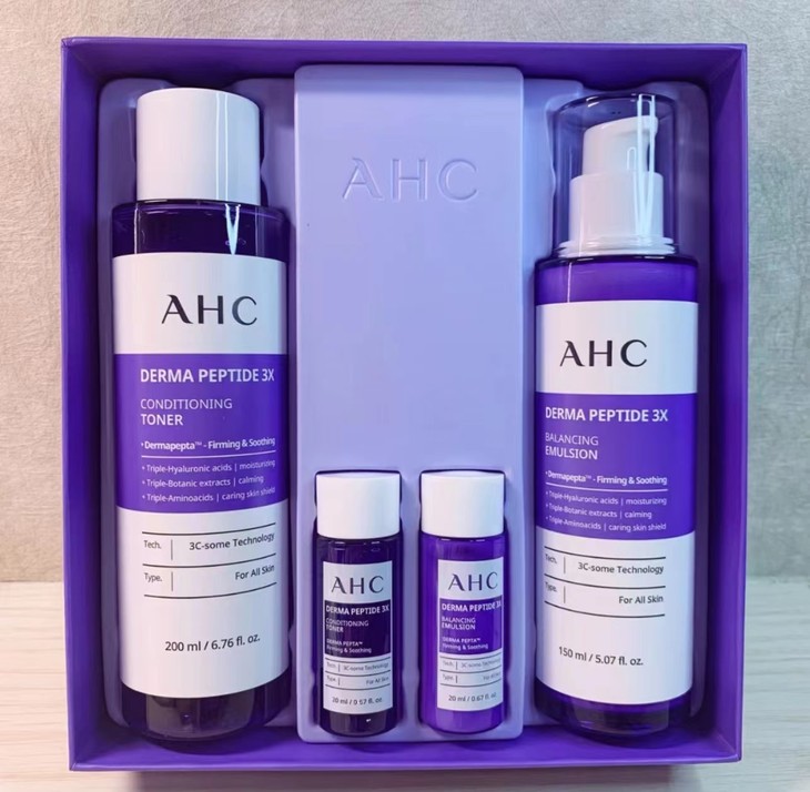 👑AHC 紫苏套装 👍这套盒的颜值就很戳人👈,光看就想入手 🌟首创镇静胜肽,有效舒缓肌肤🍃,促进胶原蛋白🥚 😍简直是敏感性肌肤的救星 ⚡️能够深层补水防止水分流失、改善肌肤泛红发炎,修护肌肤屏障。 💦质地很清爽,温和不刺激, ☀️适合夏天,也是油皮都爱的质地呀, 💖价格非常学生党哦~ 【套装包括】:爽肤水200ml+乳液150ml+爽肤水20ml+乳液20ml