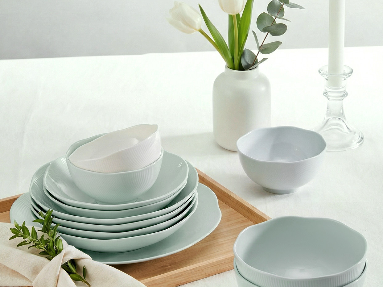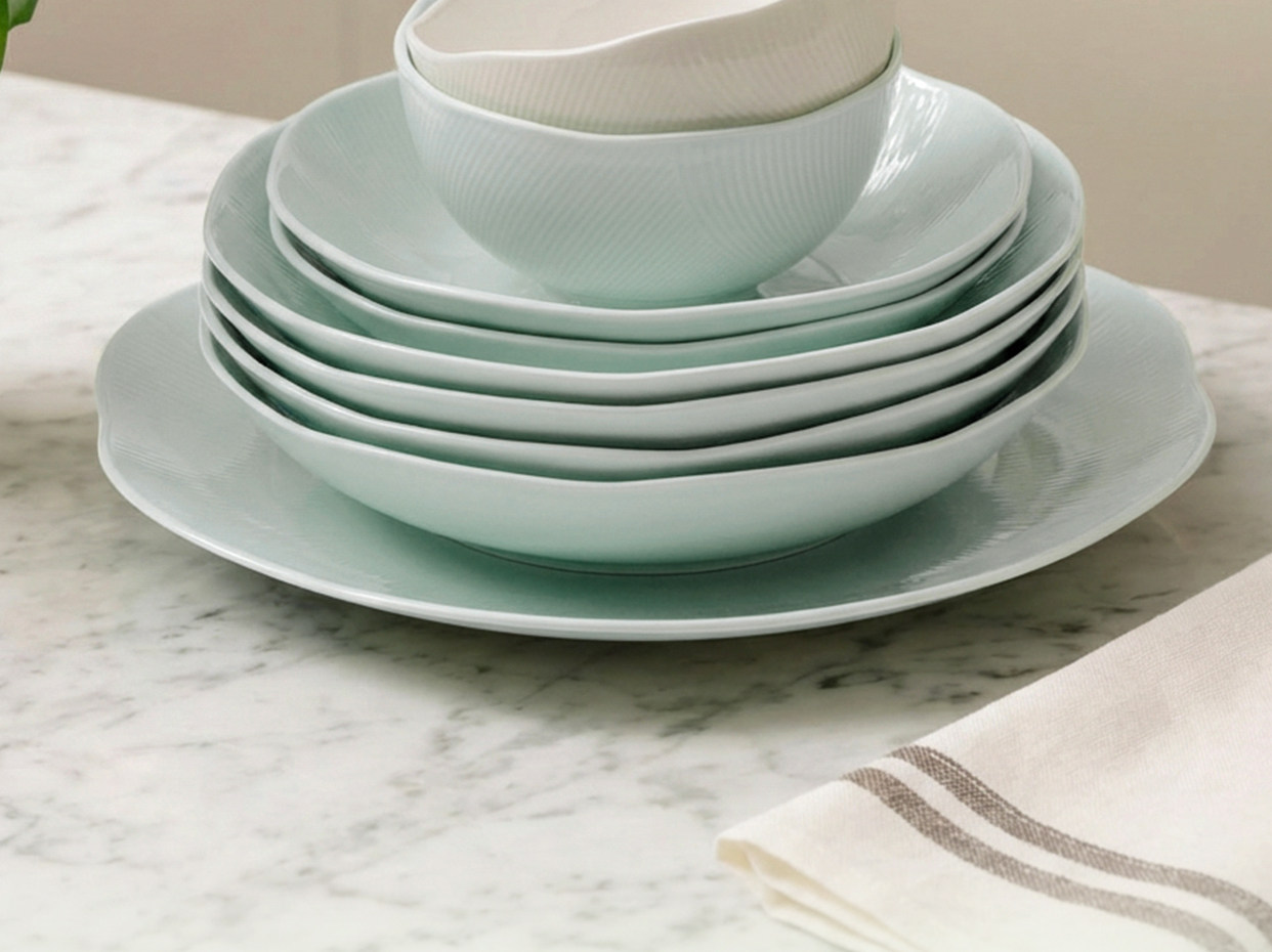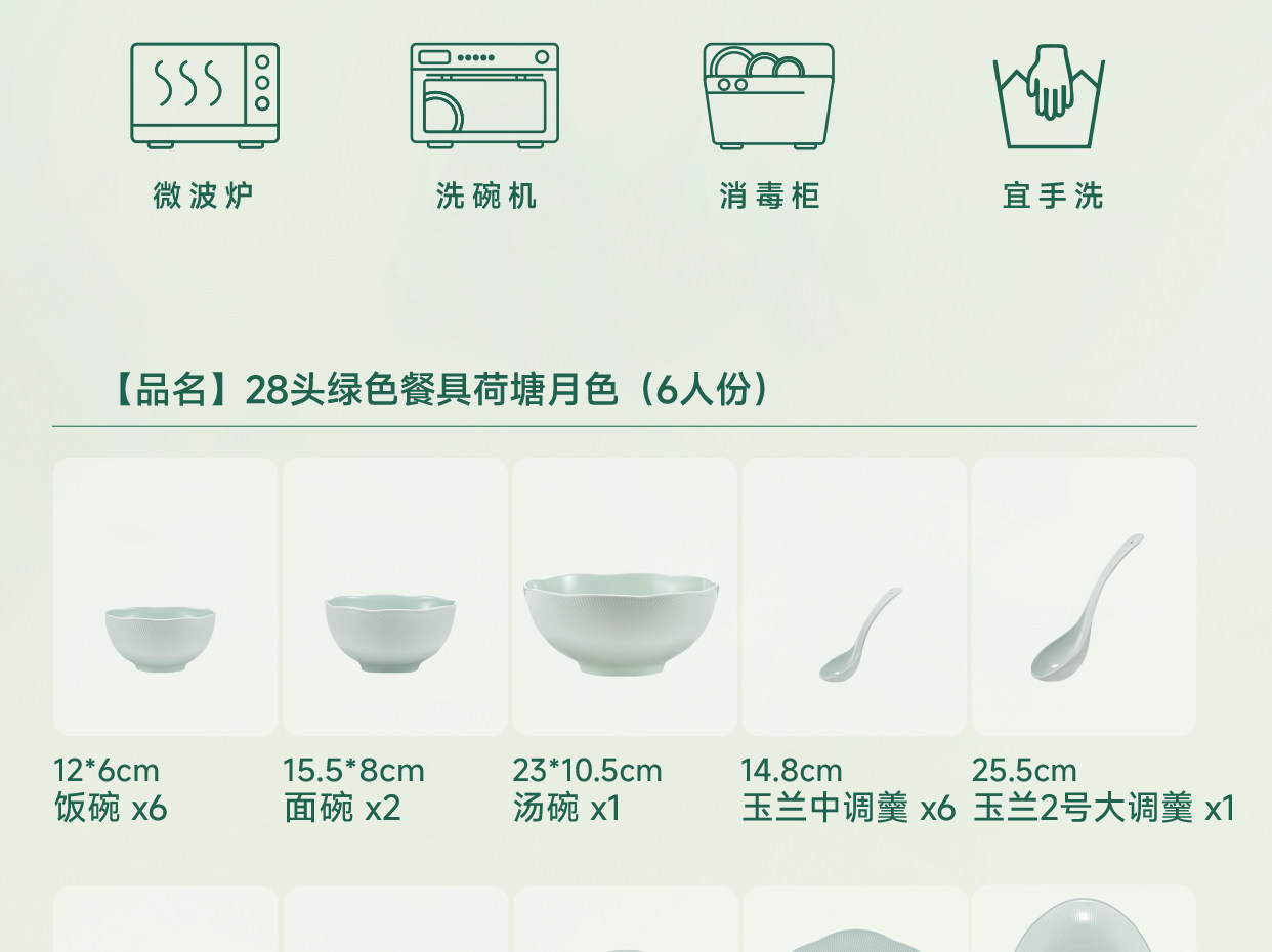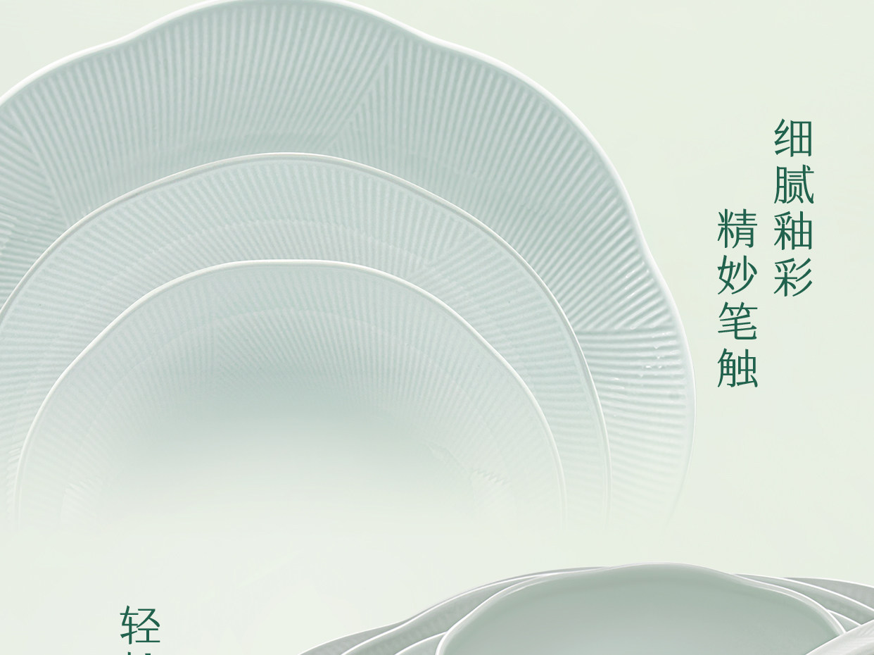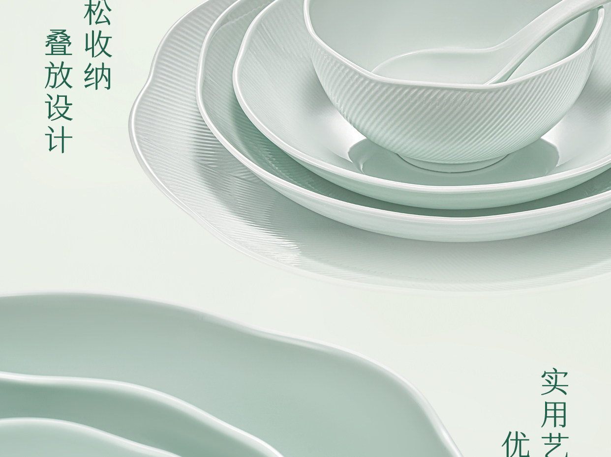 【玛戈隆特】荷塘月色餐具套装家用高端骨瓷简约盘碗碟高颜值中式绿色