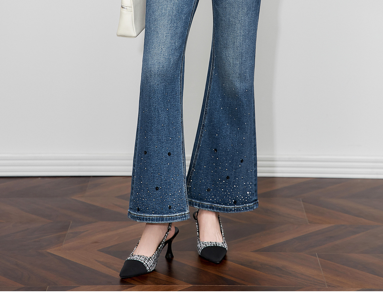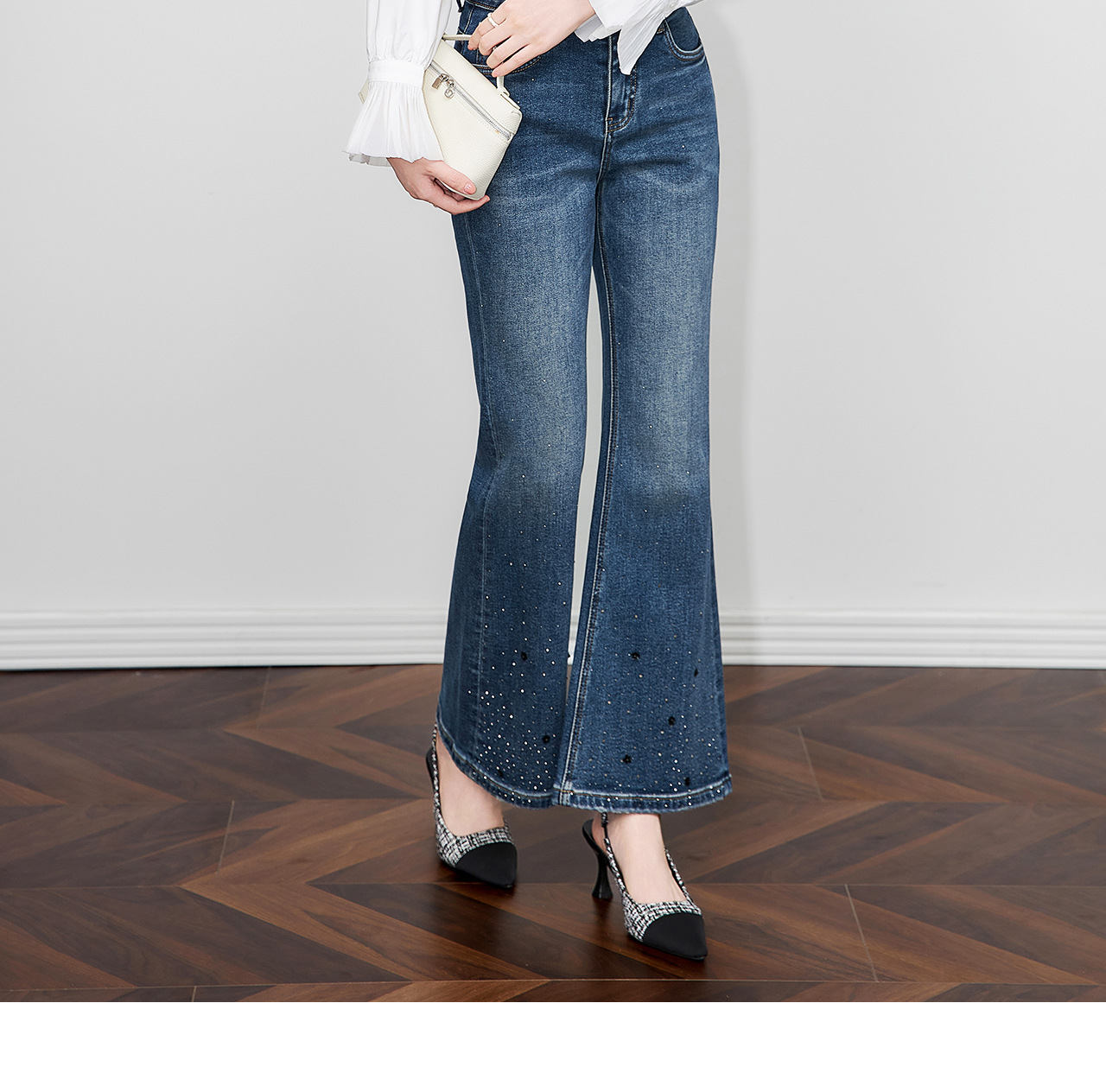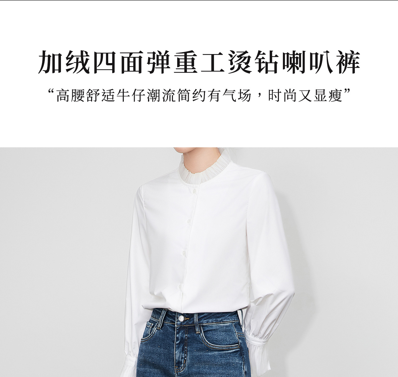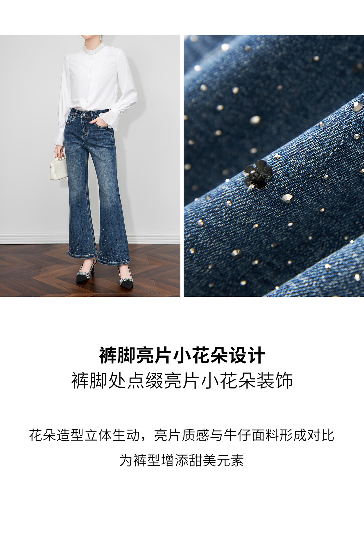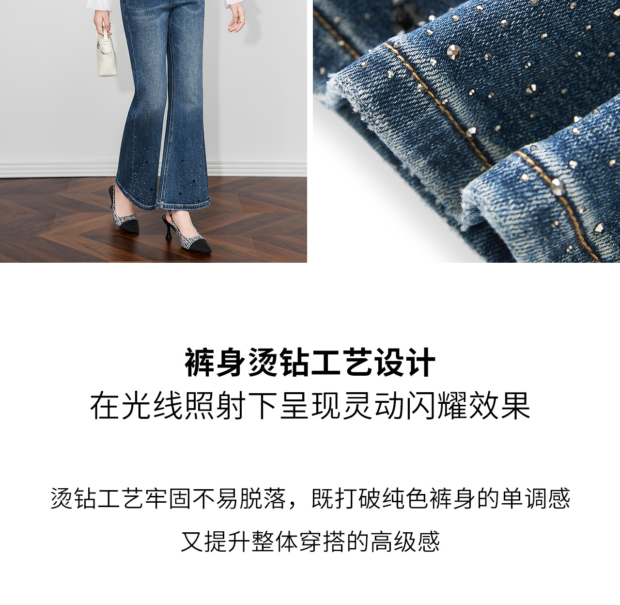 「高货wl」全新升级【铂金会员257/天猫349/差价92】(04109)洛诗琳重工烫钻亮片加绒牛仔裤2025秋冬高腰显瘦微喇裤