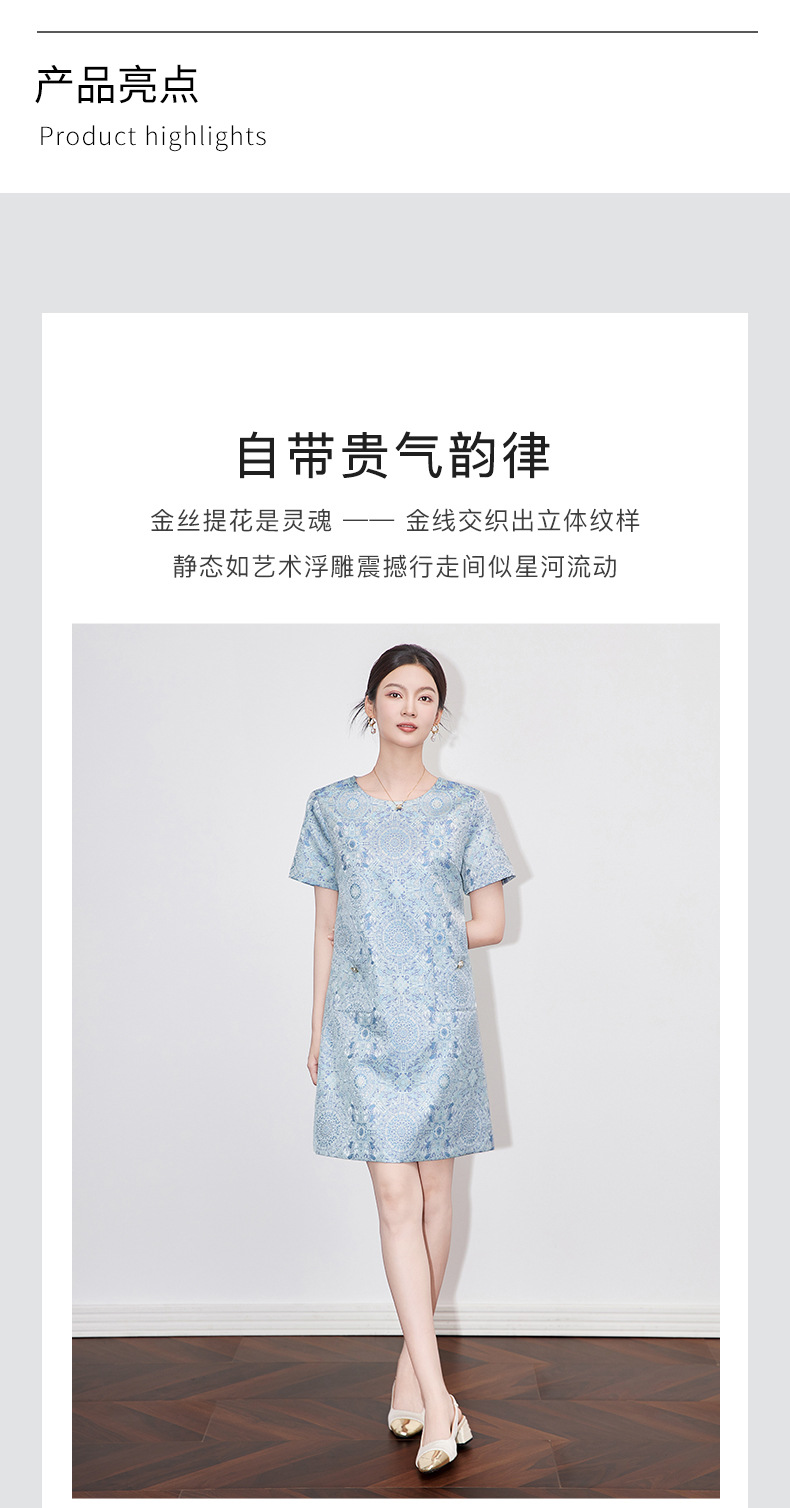 「高货wl」全新升级【铂金会员330/天猫439/差价109】(02007)洛诗琳国风金丝提花A字裙2025夏季气质修身显瘦连衣裙
