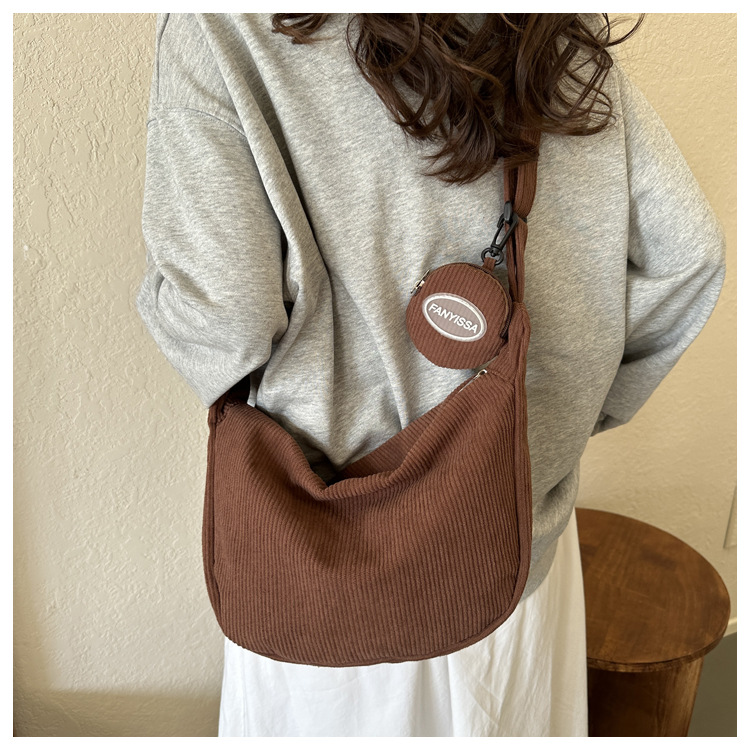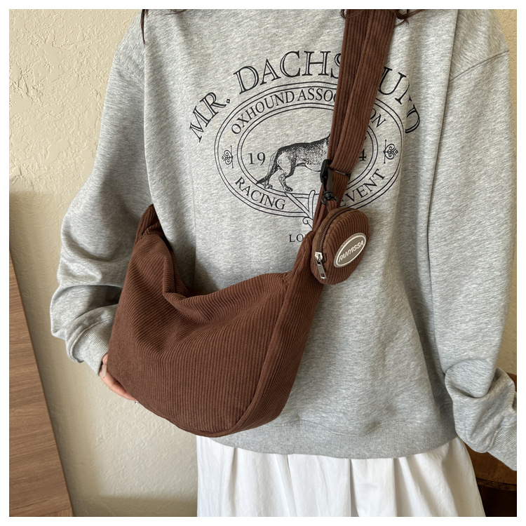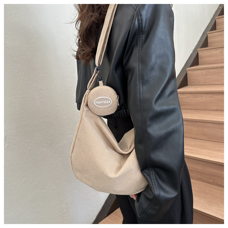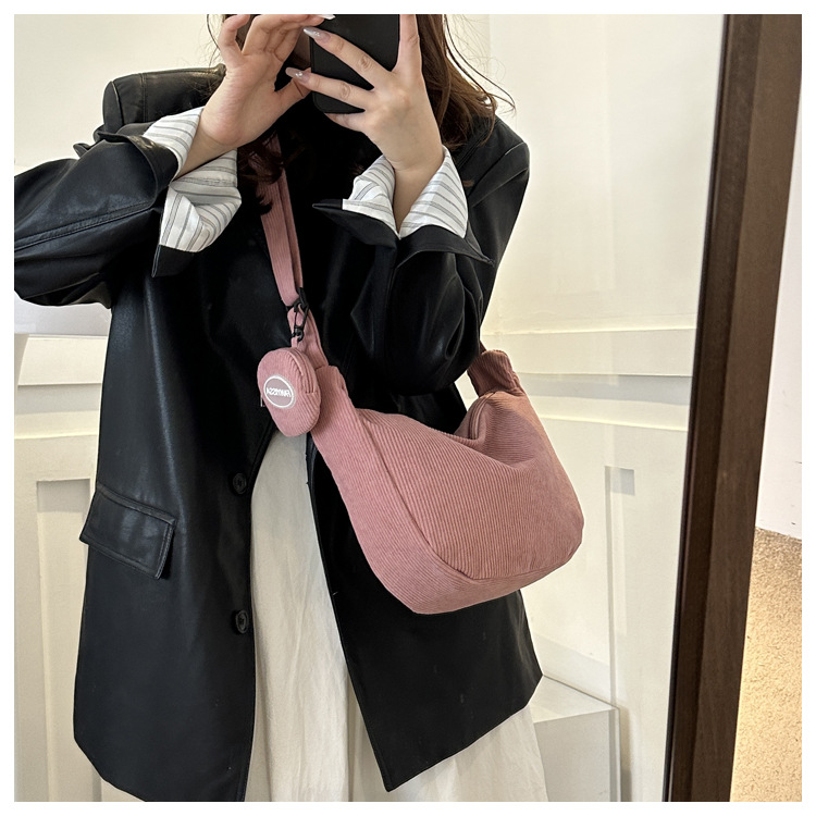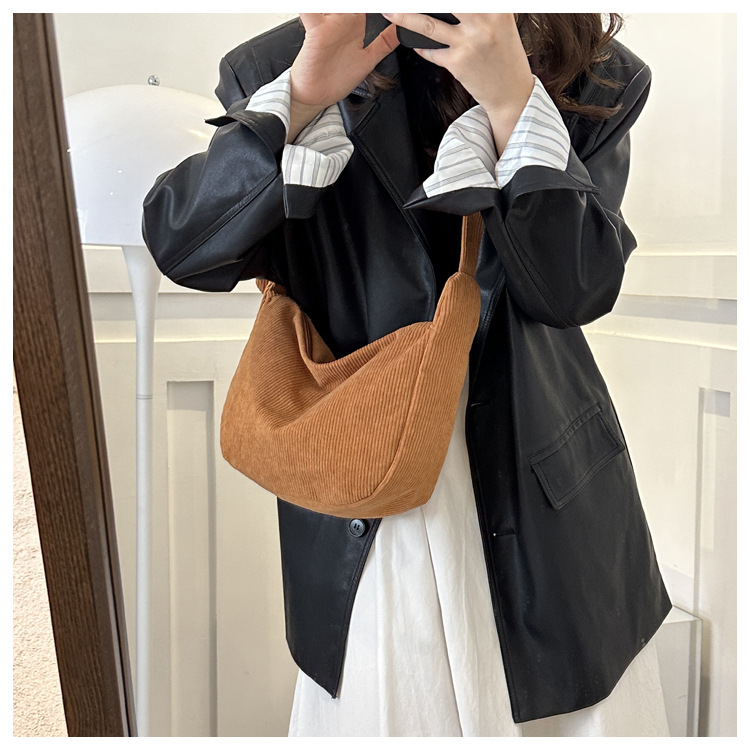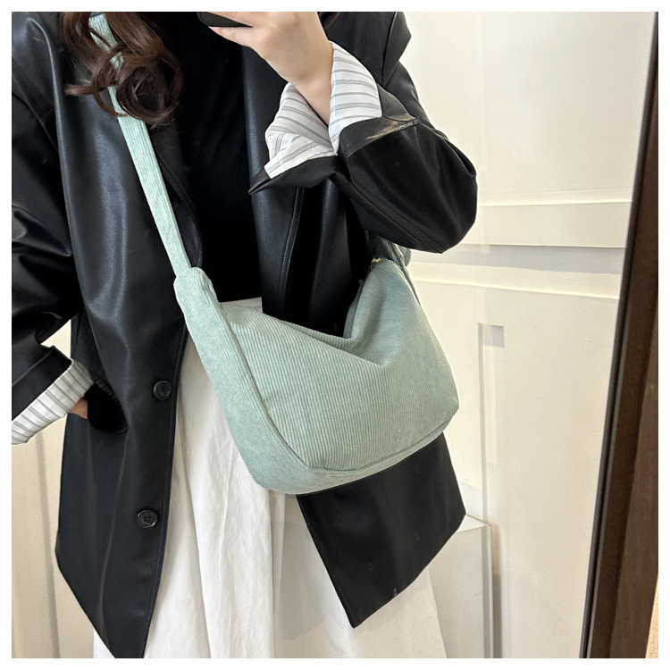 【新款韩版斜挎包,容量大,便携式】纯色简约大容量 秋冬季新款 韩版简约单肩 斜挎包饺子包-QQ